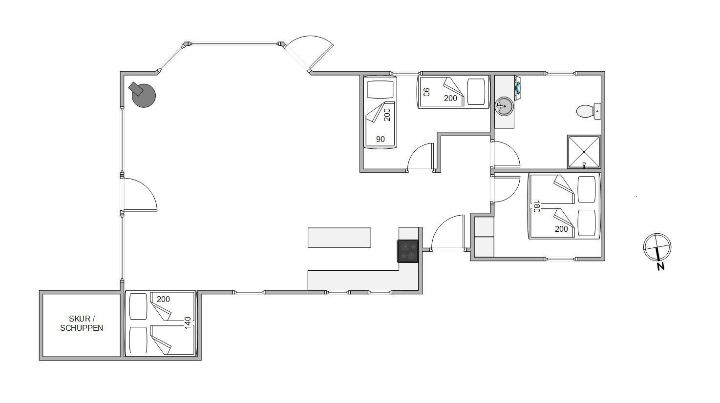 I køkkenet kan I lave dagens frokost på sommerhusets komfur, mens I stadig kan høre latteren fra jeres børn i stuen. Stuen har en fladskærm med Chromecast, så I kan streame alle jeres yndlings film og serier, op samtidig nyde en hyggelig aften med hele familien samlet.