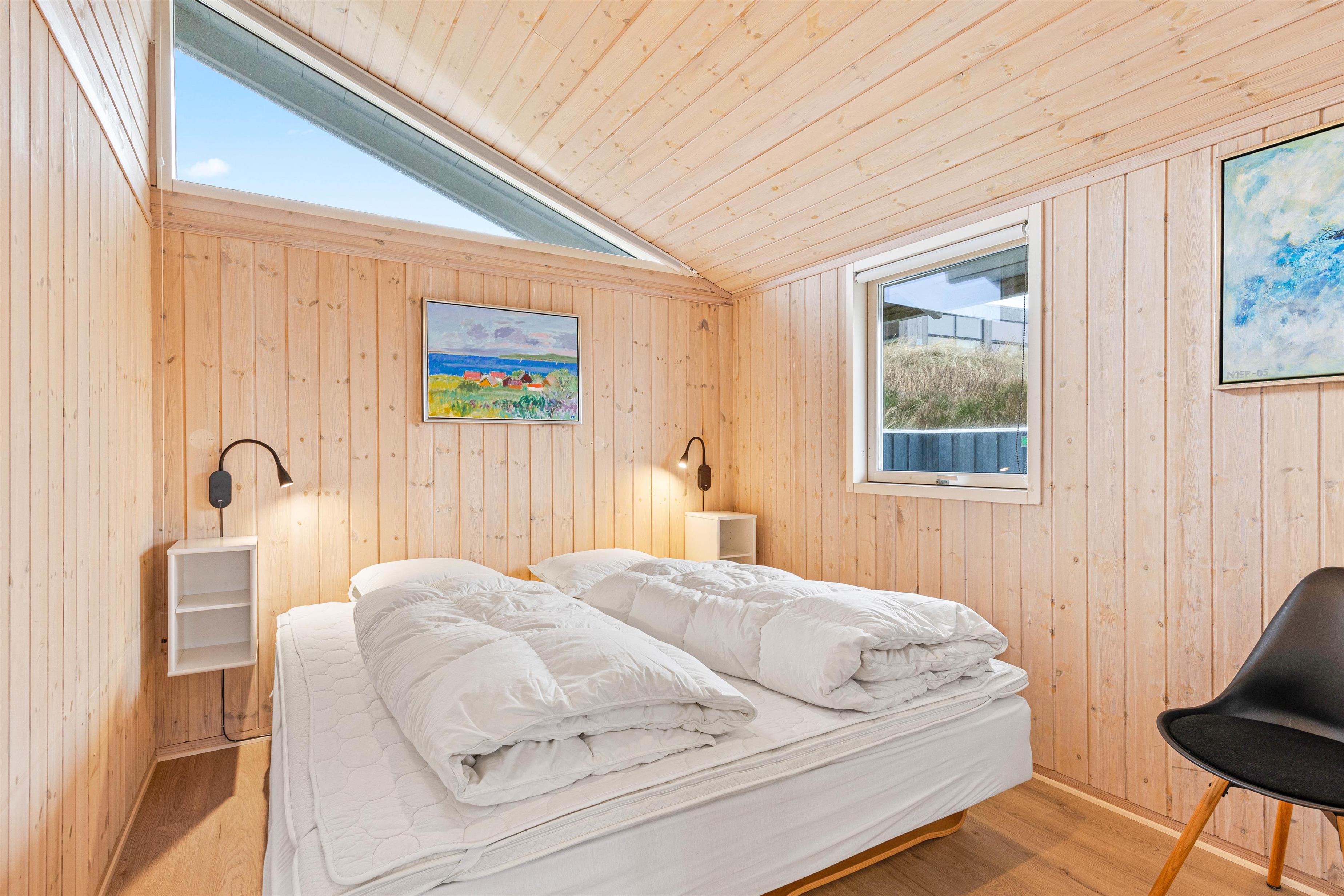 Sommerhuset har 3 skønne soverum – det ene med en dobbeltseng og de andre med 2 enkelt senge.