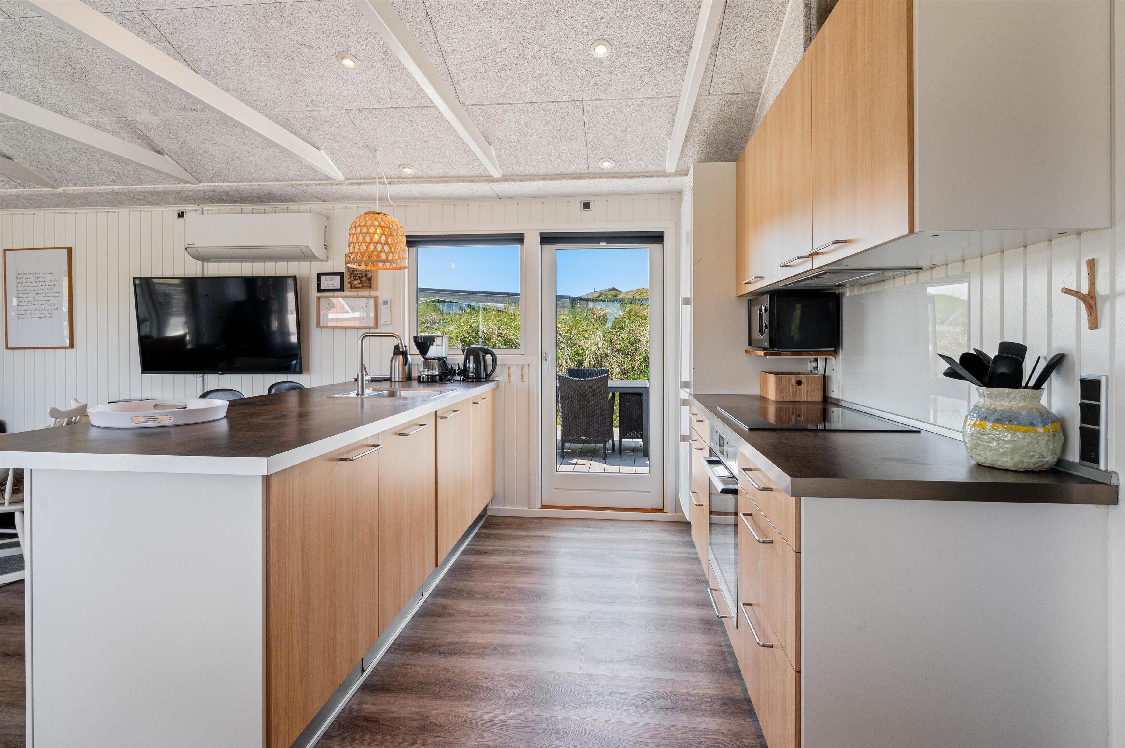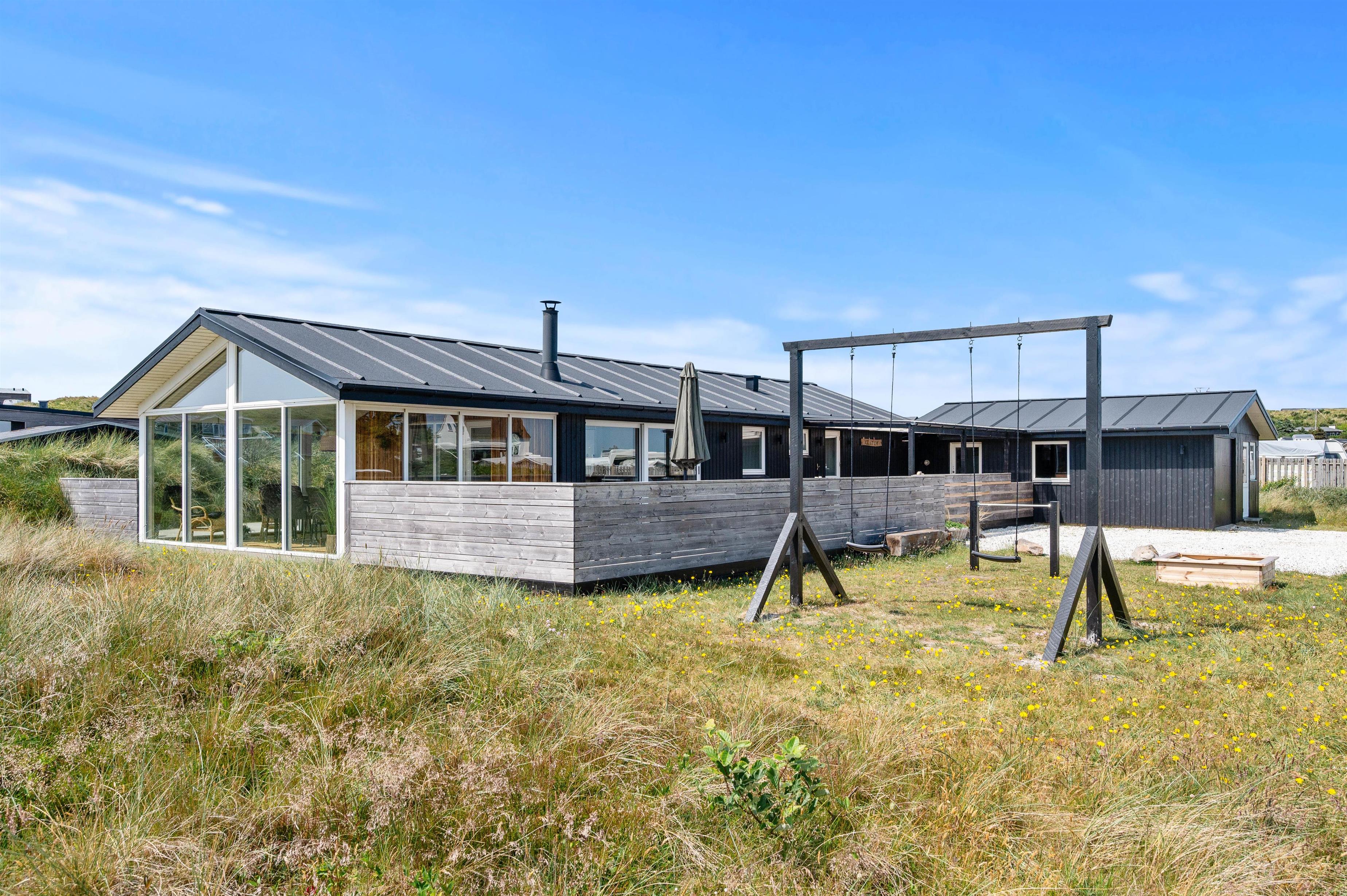 Sommerhuset ligger kun 250 meter fra stranden, hvor der kan bygges sandslotte, samles muslinger eller I kan gå en tur med hunden. På en varm sommerdag kan I også dyppe fødderne i Vesterhavet. Det skønne sommerhus ligger på en naturgrund, hvor I efter en lang dag ved stranden kan slutte dagen med en tur i det varme vildmarksbad.
