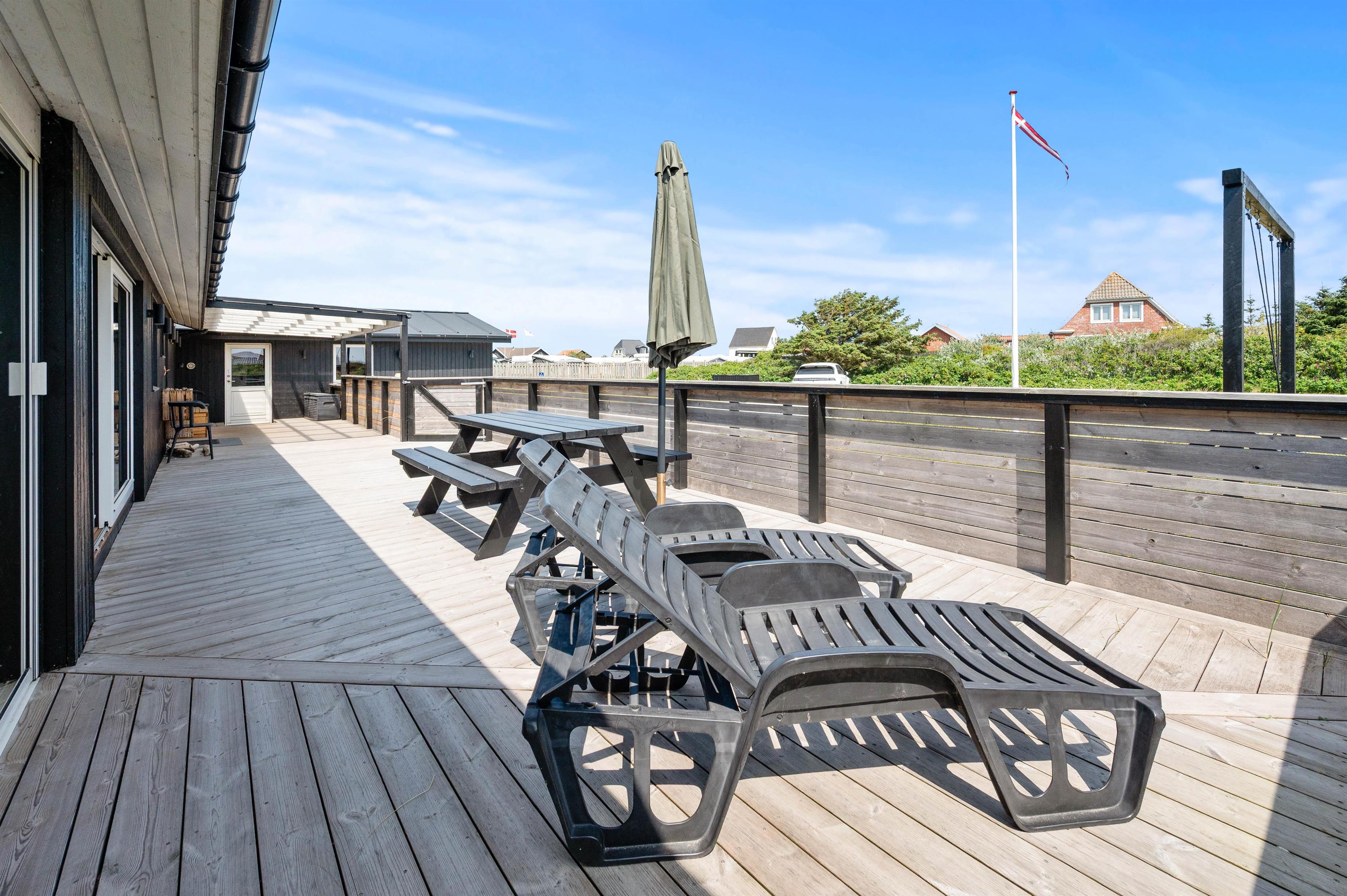 Sommerhuset har en dejlig lukket og overdækket træterrasse, hvor hunden kan boltre sig uden at være i snor.