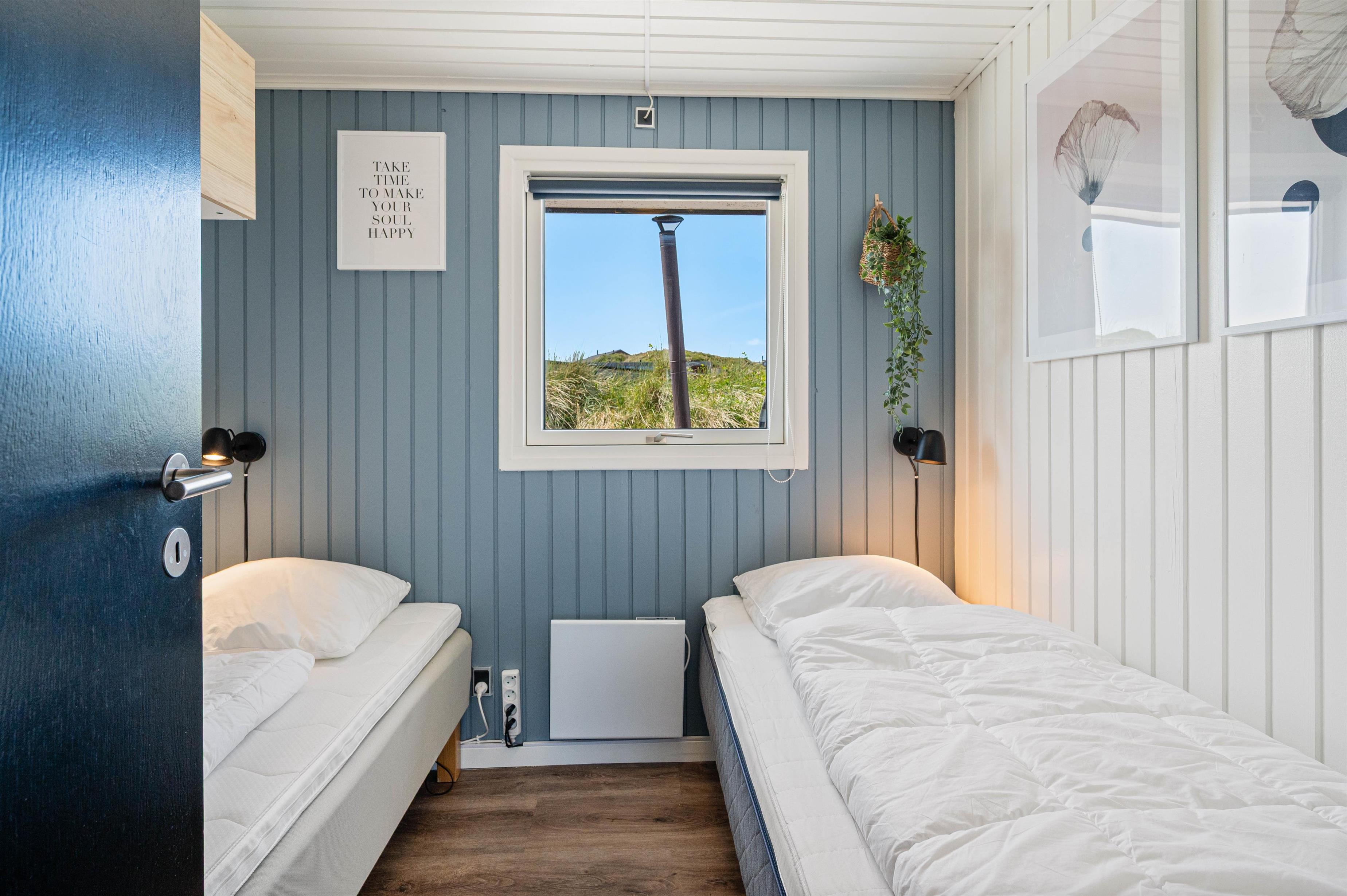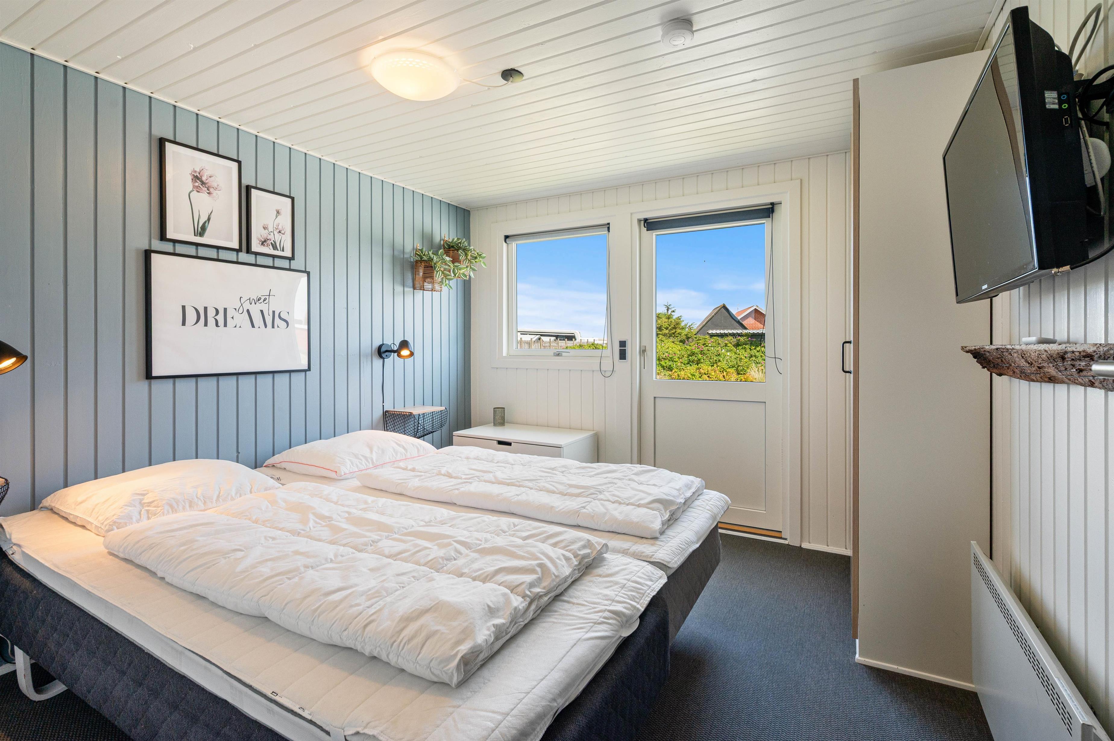 I sommerhuset er der 3 værelser, som er indrettet med dobbeltseng på det ene og enkeltsenge på de andre værelser. Det sidste værelse finder I i annekset, hvor der også er et ekstra badeværelse. I alt er der plads til 8 feriegæster og 1 hund.