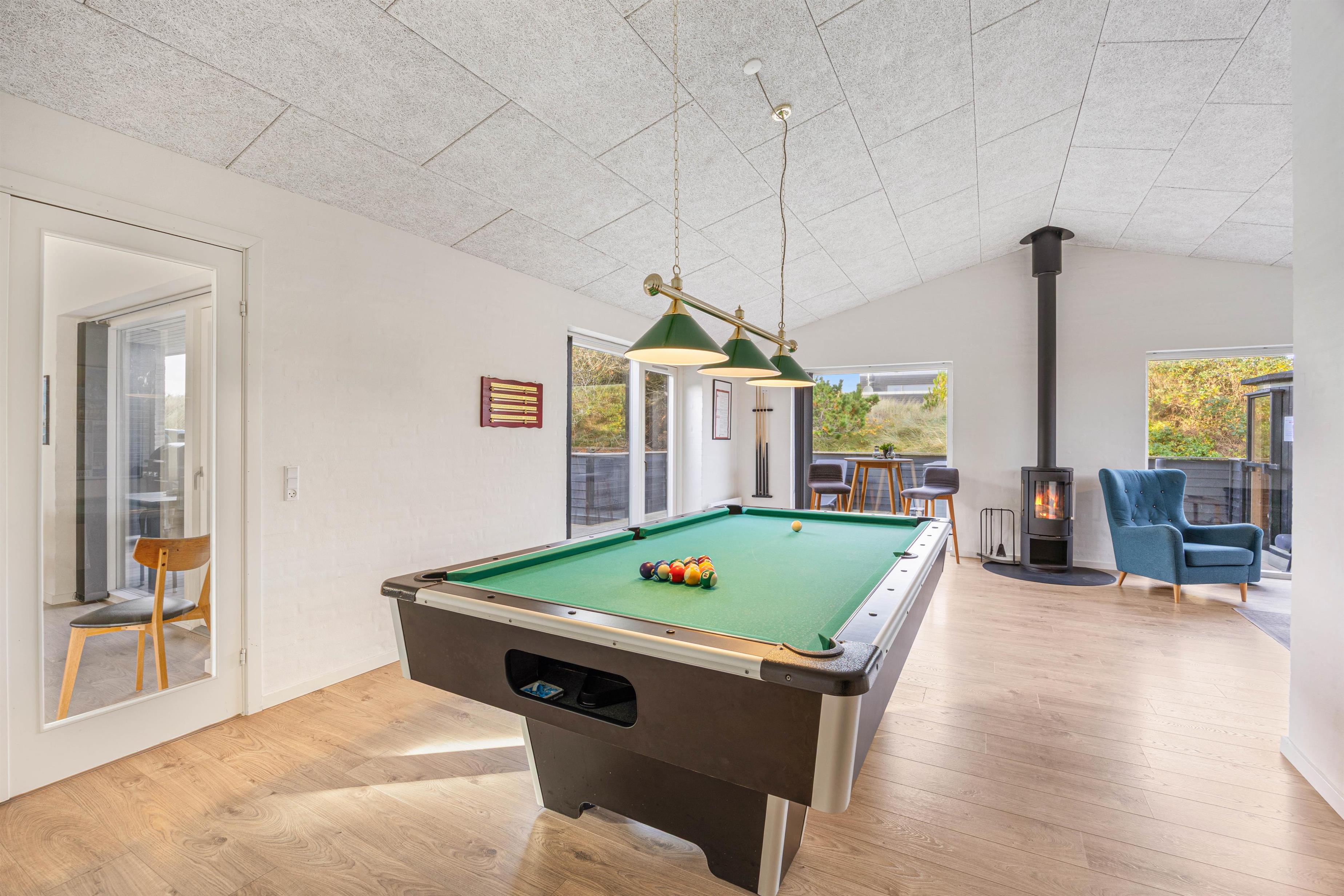 Det store aktivitetsrum indbyder til masser af familiehygge – både med spil og sofahygge foran brændeovnen. Rundt om det store billardbord kan I tage en lille dyst om opvasken.