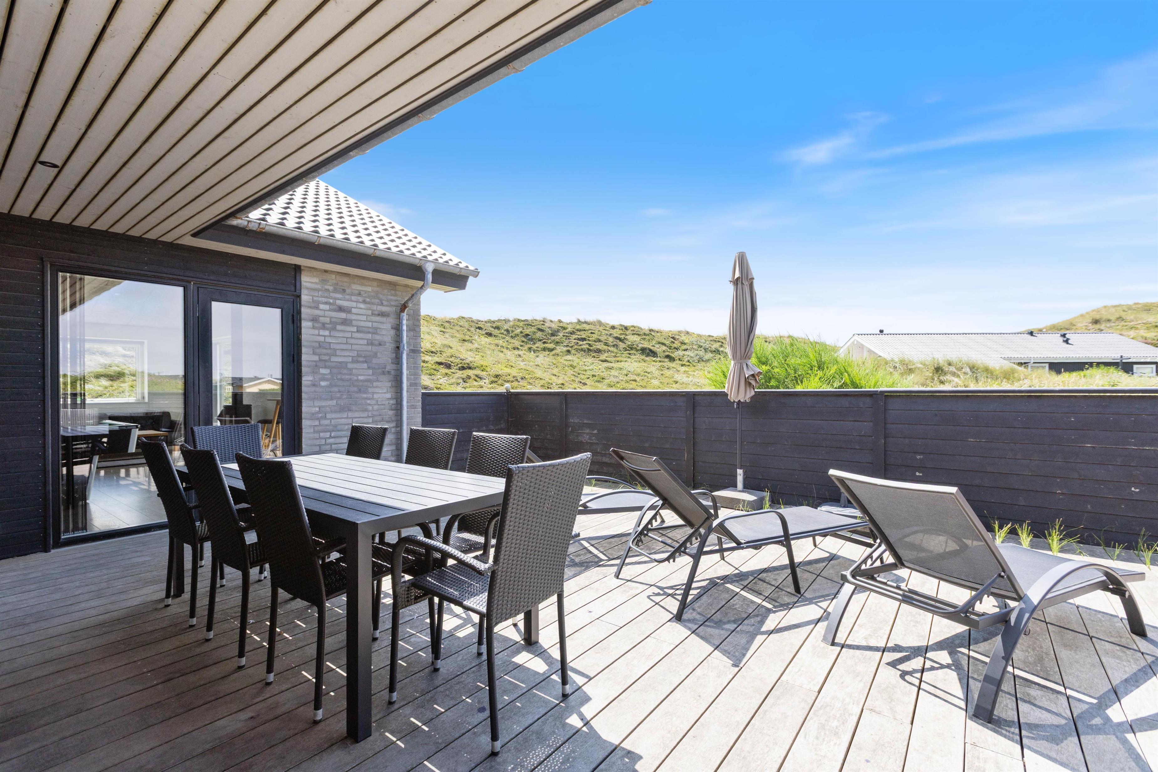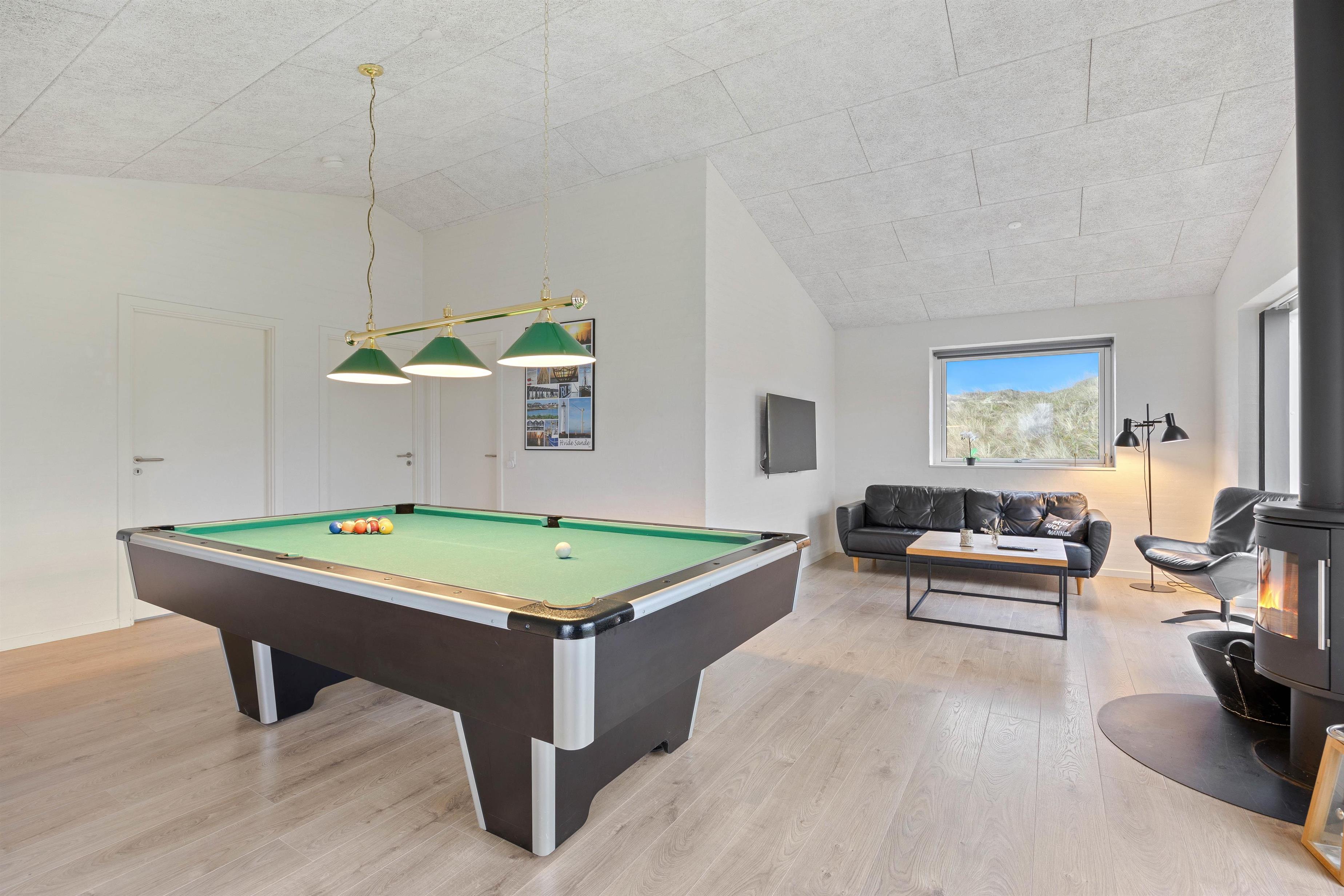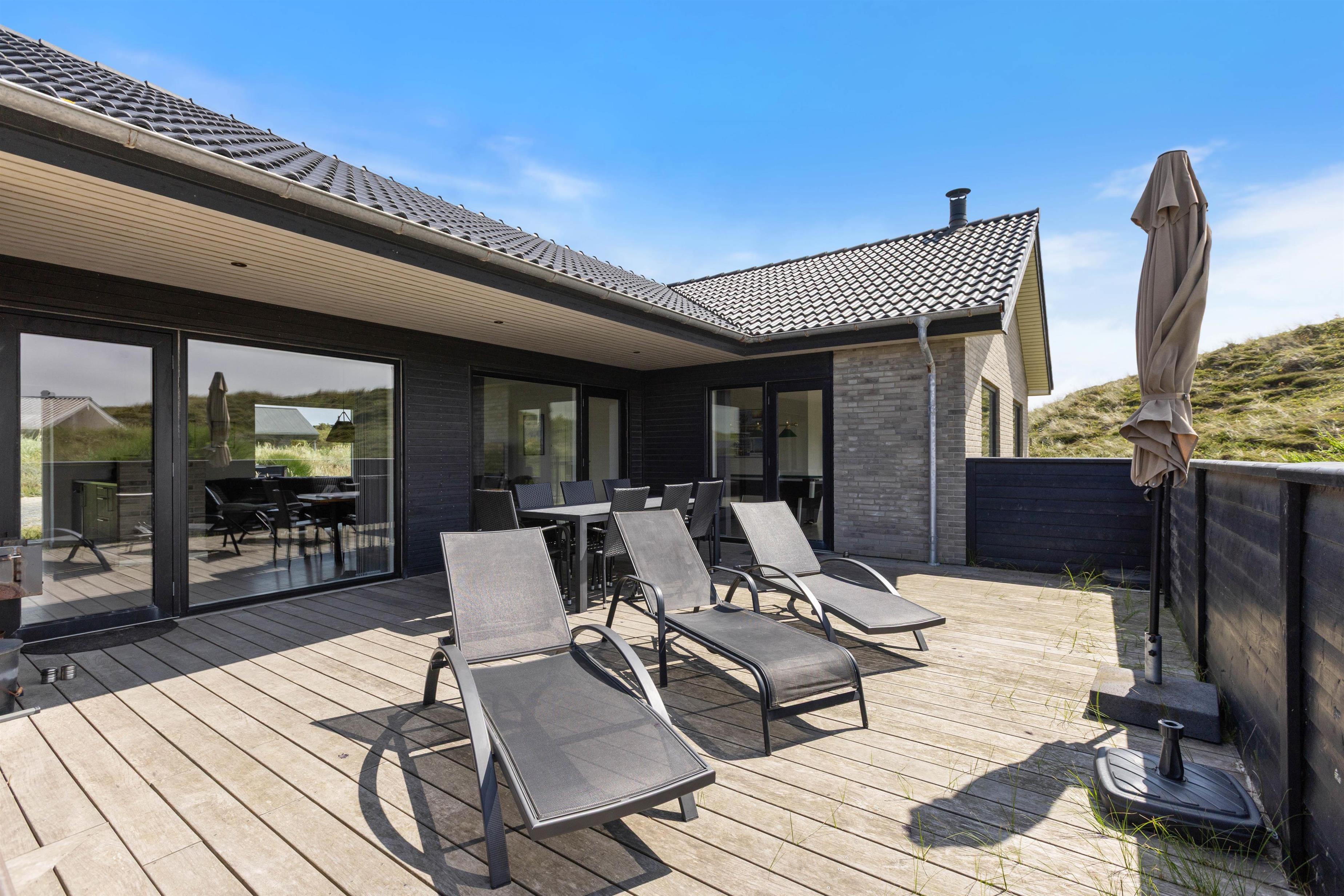 Midt i det vestjyske klitlandskab, blot 250 meter væk fra den hvide sandstrand, ligger dette nybyggede luksushus og venter på jer. Her er I garanteret underholdning i alle afskygninger; med både sauna, udendørs spabad og jeres helt eget aktivitetsrum!