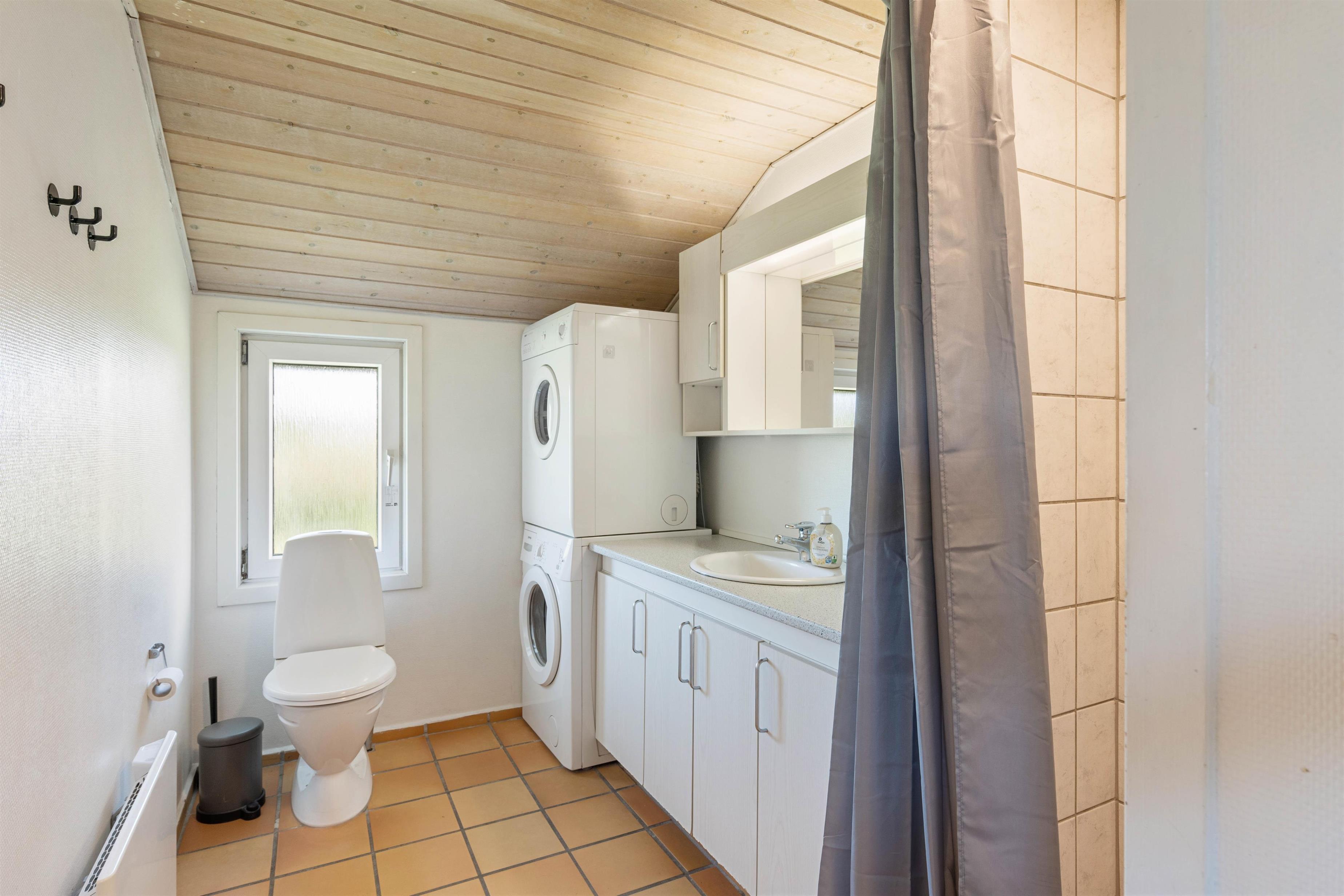 Det strandnære og bekvemt beliggende sommerhus tilbyder alle moderne bekvemmeligheder, som opvaskemaskine, mikroovn, separat fryser, vaskemaskine og tørretumbler samt gulvvarme og energibesparende varmepumpe.
