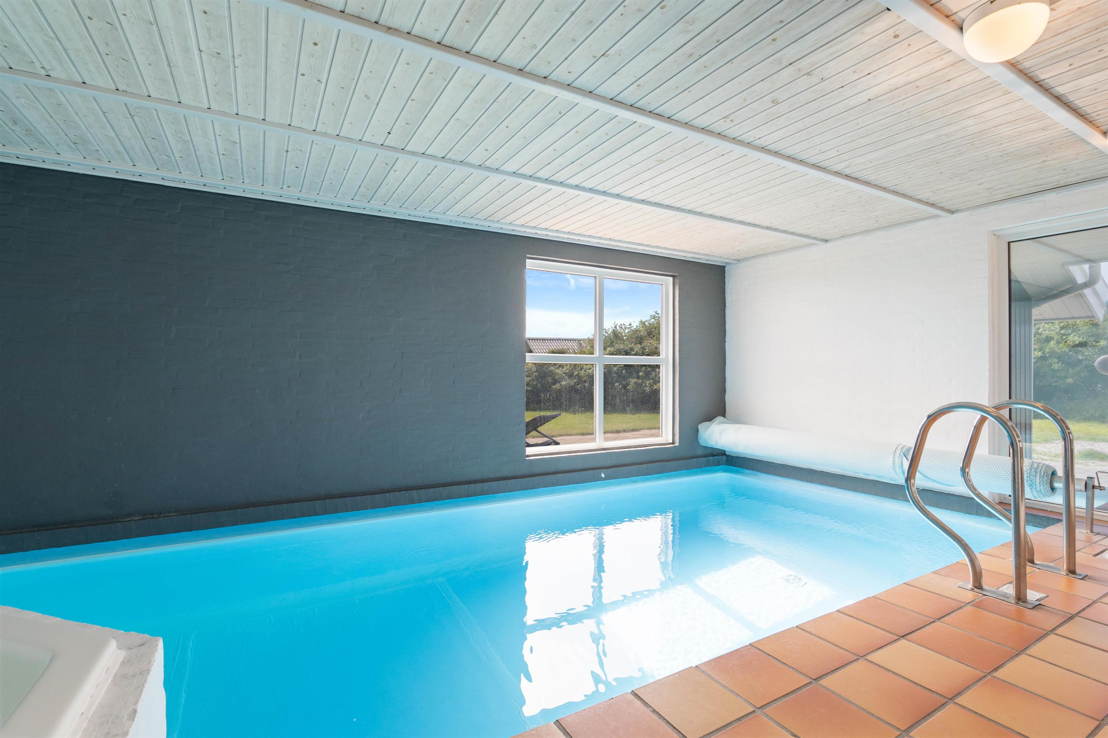Tag familie eller venner med i dette hyggelige poolhus på 170 kvadratmeter. Her er pool, spa og sauna i jeres eget wellnessområde, rummeligt køkken-alrum, 2 badeværelser og 5 dobbeltværelser. Udendørs er der delvist afskærmede terrasser og en dejlig stor plæne, hvor børnene kan boltre sig. Og med kun 350 meter til havet, kan man komme til stranden mange gange om dagen.