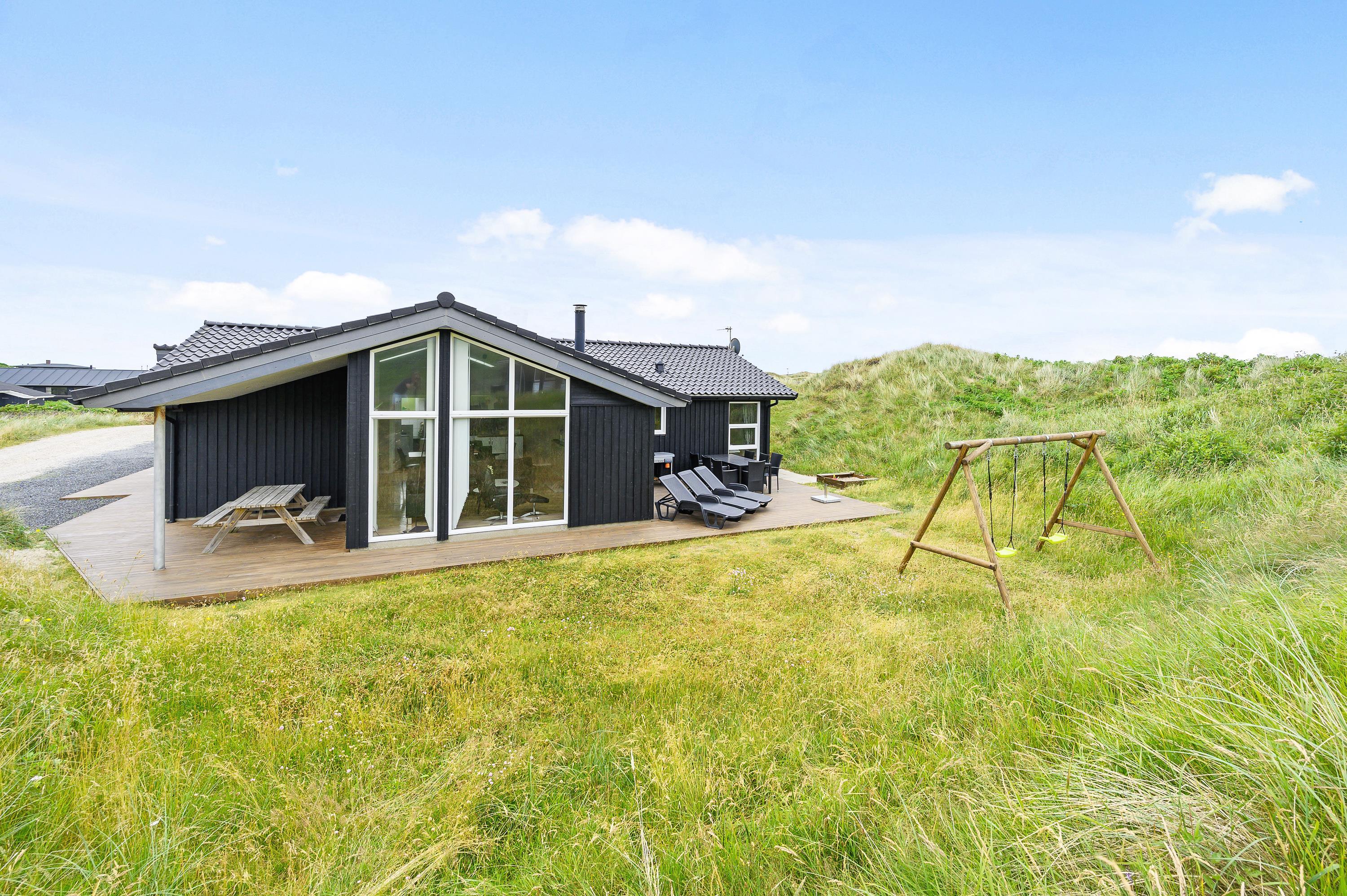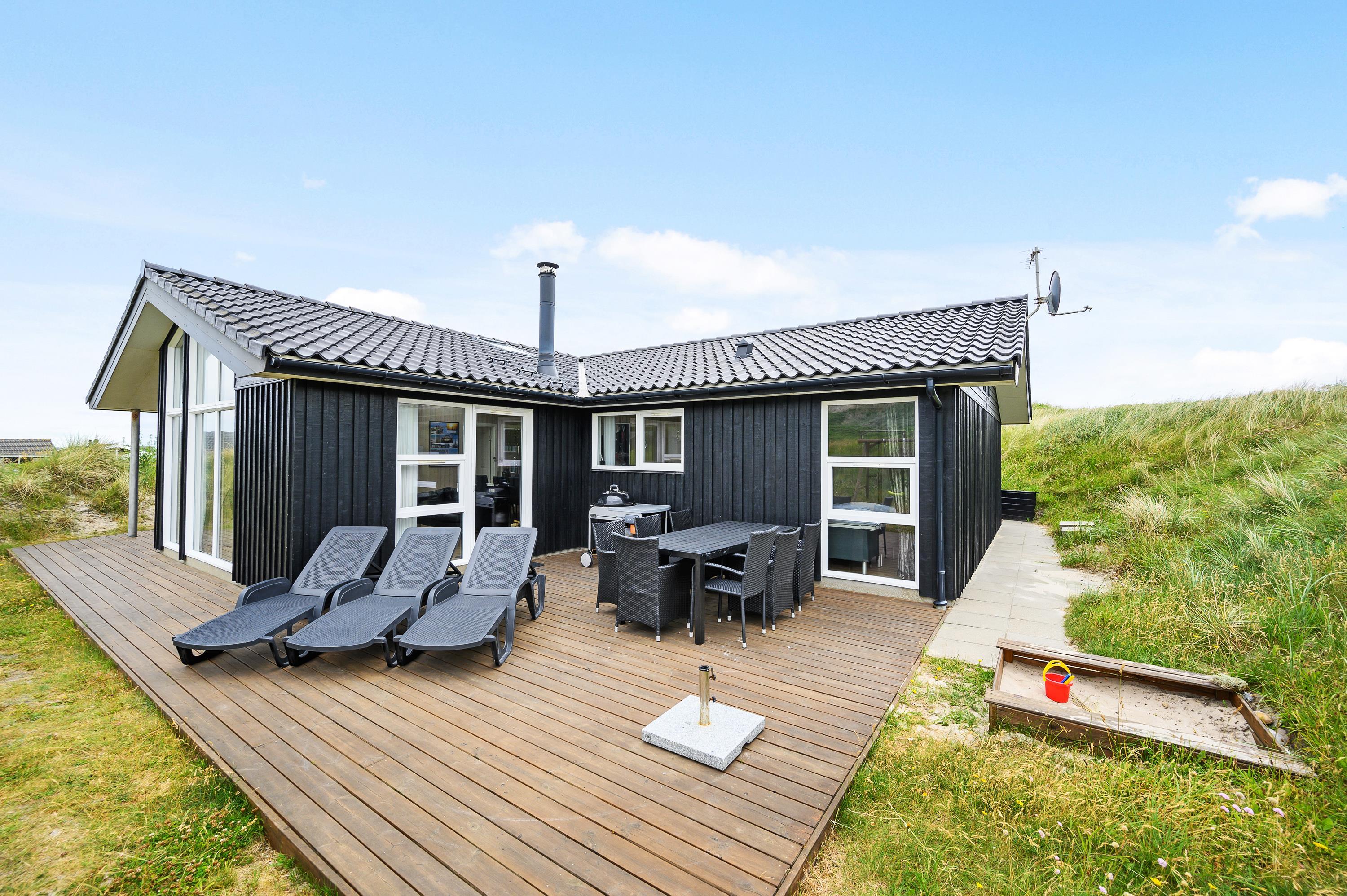 Kun et stenkast fra den nærmeste strandopgang ligger dette flotte feriehus. Her er rammerne sat for en luksuriøs ferie med alt, hvad feriehjertet begærer; Det indebærer både en lækker indretning med sauna og spabad, og ikke mindst, en fantastisk beliggenhed kun 150 meter fra det brusende Vesterhav. Op til 2 hunde tilladt!