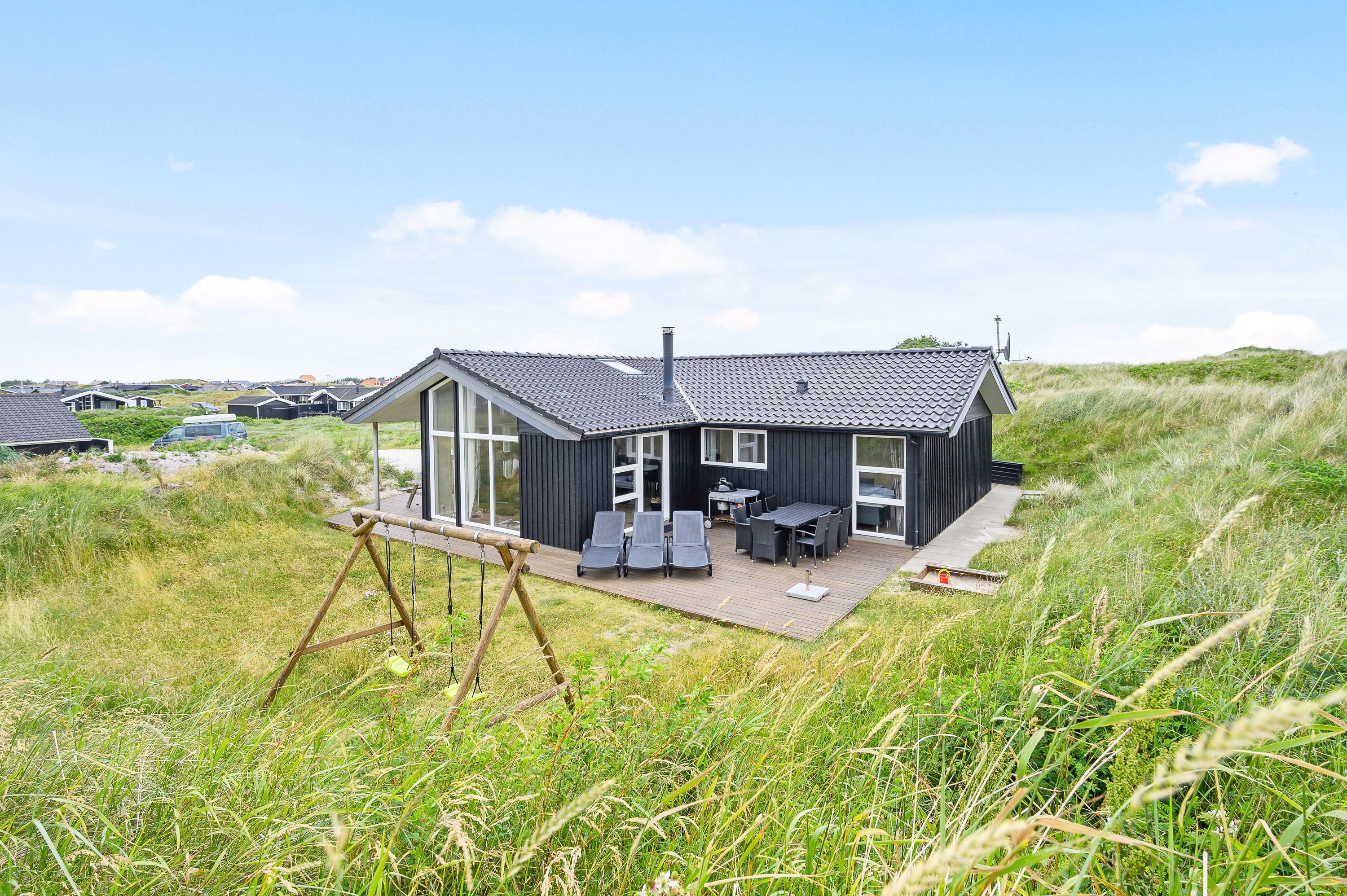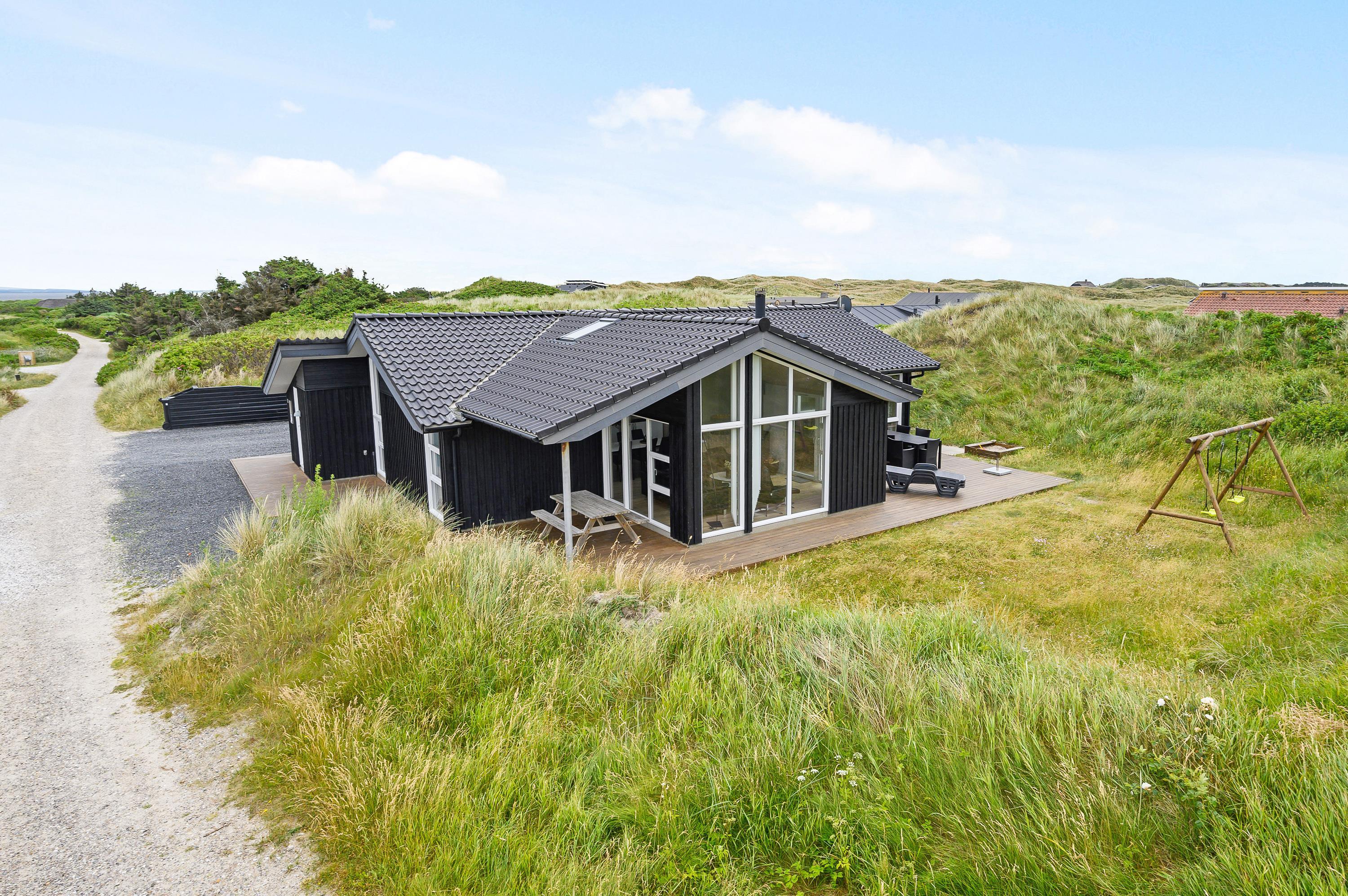 Prikken over i'et ved dette lækre feriehus er den fantastiske beliggenhed. Her bor I midt i det smukke klitlandskab, blot 150 meter fra vandet og den endeløse sandstrand. Tag børnene og hundene med på en udflugt i det gode vejr - og husk badetøjet i sommertiden!