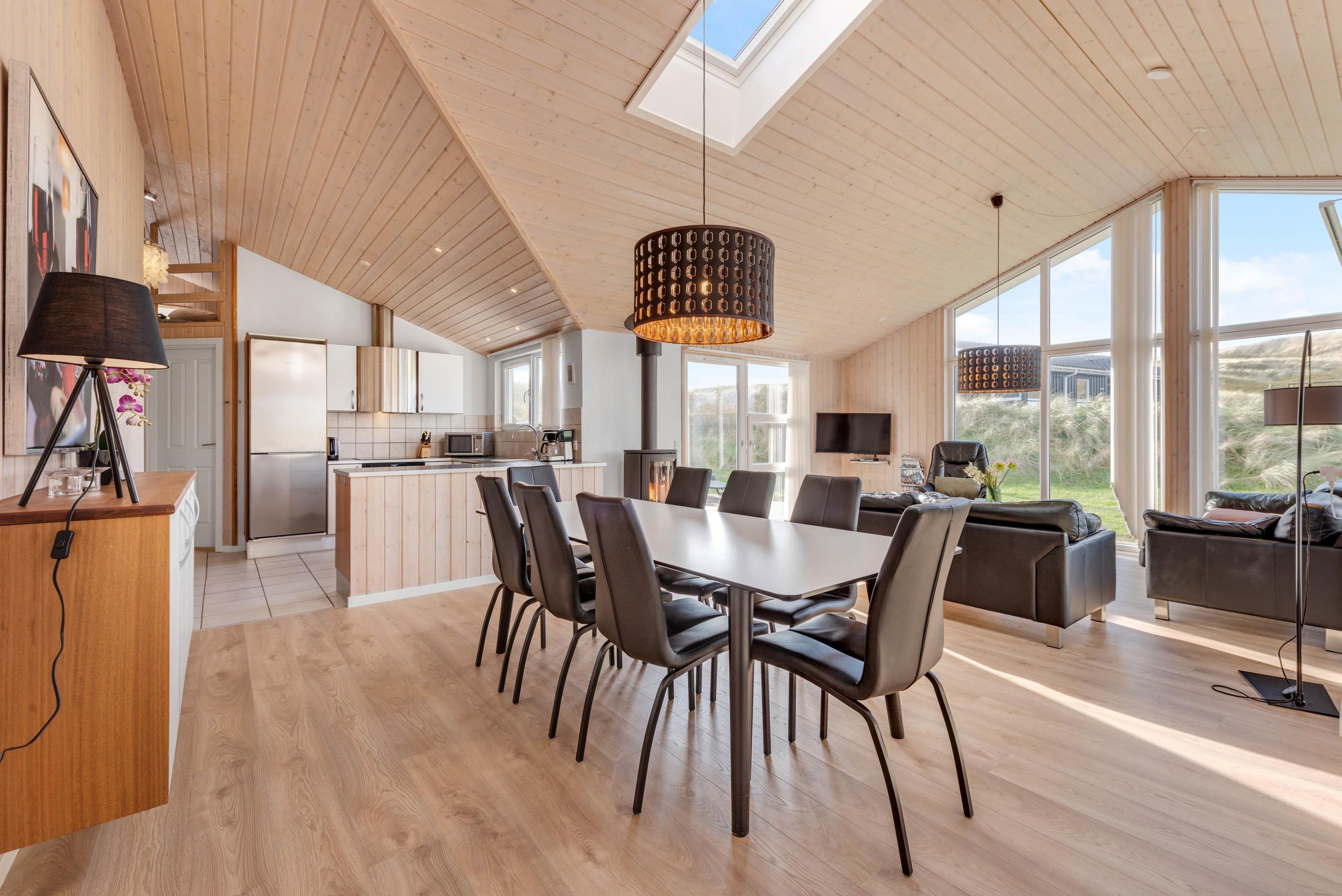 Der er dømt afslapning og familiehygge i stor stil, og især den store stue med integreret køkken og spiseafdeling kommer til at danne rammerne for en masse skønne feriestunder med alt fra kortspil til filmhygge og lækker mad rundt om spisebordet.