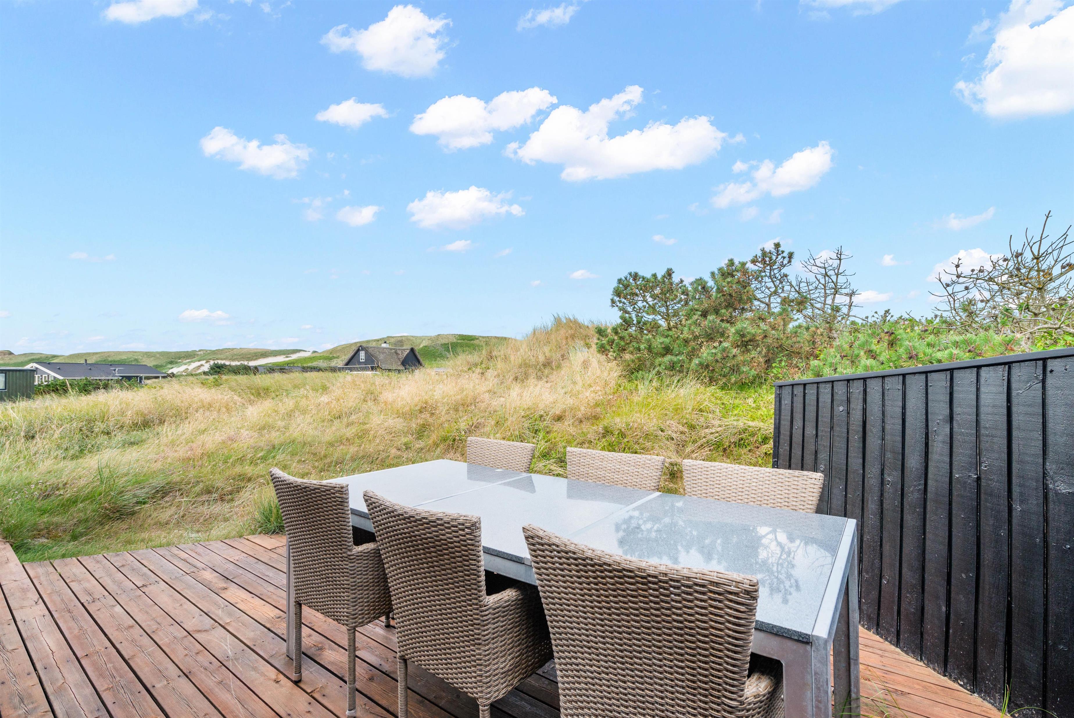 Sommerhuset ligger på en velvoksen naturgrund på 3000 m2. Med kun 250 meter til Vesterhavet vil du her mærke den friske brise og høre havet, når vindretningen er gunstig. Ved sommerhuset er der en stor og afskærmet terrasse med både spiseplads og lækroge. Her kan du finde læ og sol, og endda tørre badetøjet under halvtaget, så det er klar til næste dag.