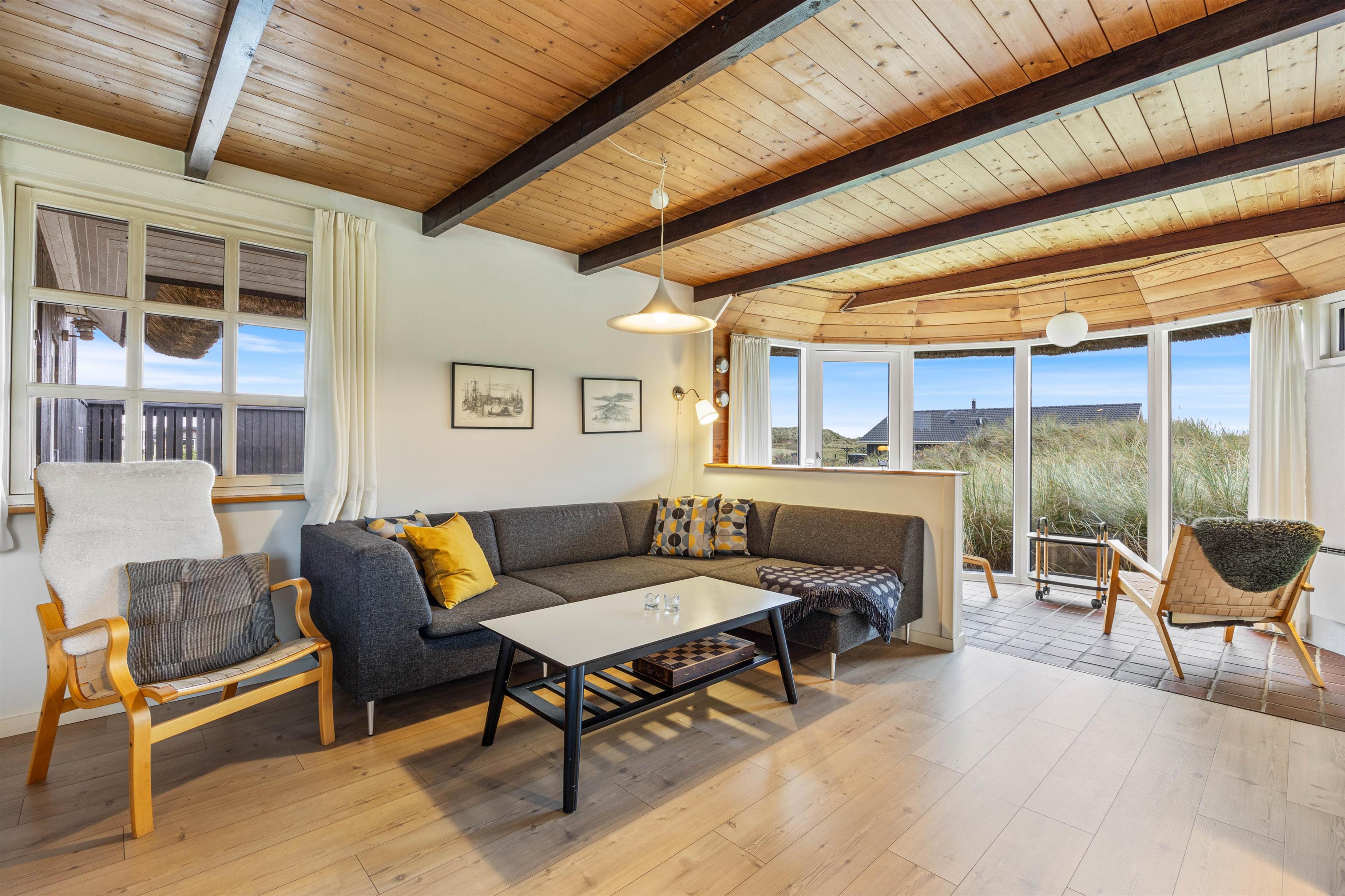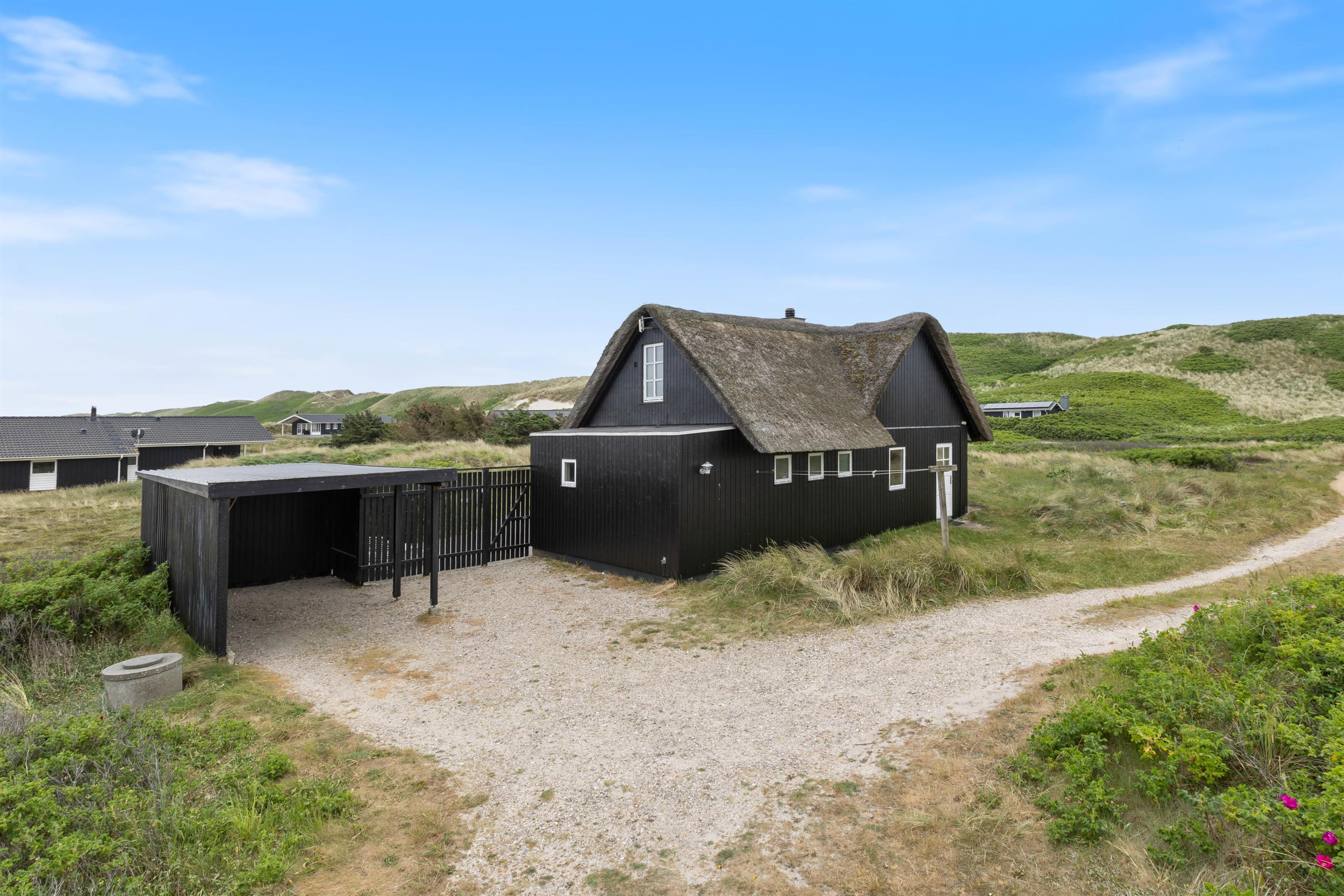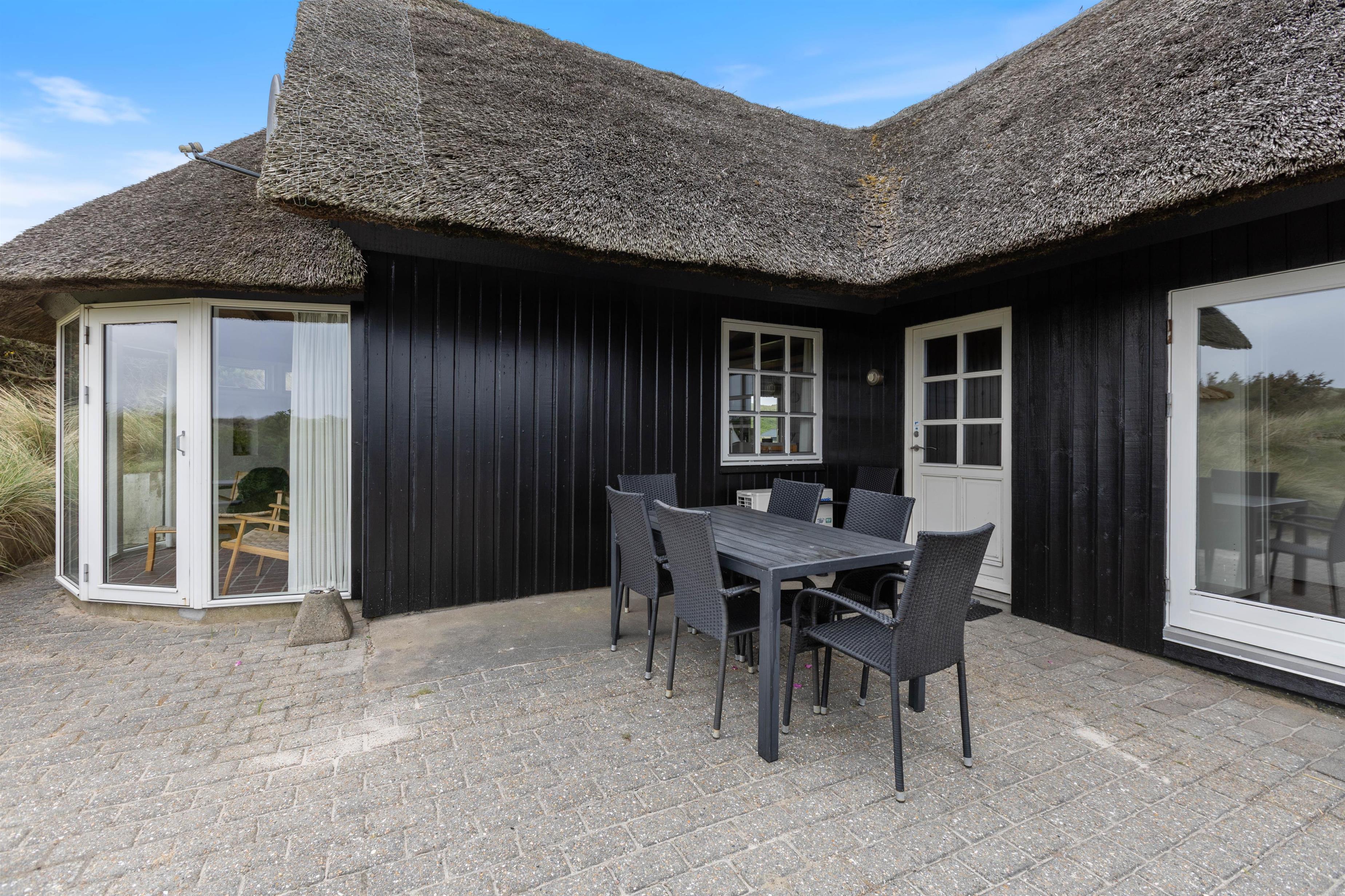 Tilhørende sommerhuset ligger der en skøn åben terrasse, som er afskærmet fra de andre gæster i området. Her er I nemlig omkring af det skønne klitlandskab, som sørger for I kan nyde jeres ferie i fred og ro. På terrassen har I nemlig mulighed for at nyde en skøn sommer med godt vejr og hyggeligt selskab.