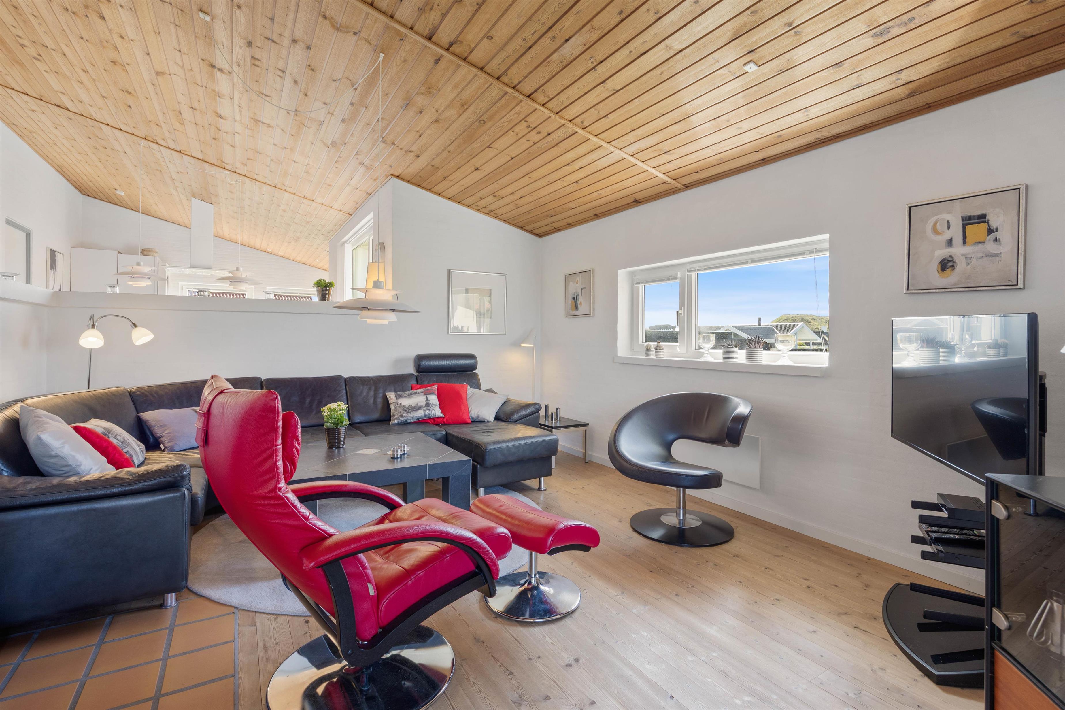 Spændende indrettet og velholdt feriehus, der har en skøn beliggenhed på en naturgrund i et roligt område, hvor du også kan nyde udsigten til fjorden og og gåture til Vesterhavet, der ikke ligger langt derfra.