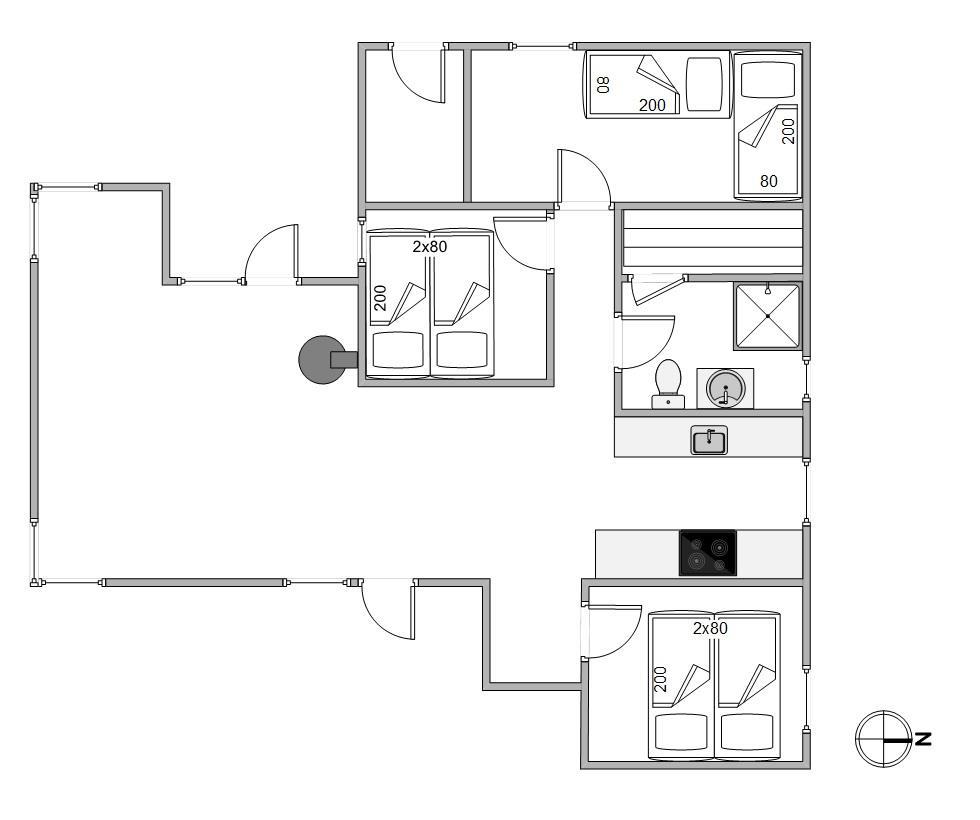 Den hyggelige stue har store vinduespartier, som inviterer både solen og naturen indenfor, så I hele tiden fornemmer den flotte natur og sommerhusområdet omkring jer. På de lidt køligere dage kan I derfor betragte den betagende natur, selv om I tager en afslapningsdag med sofahygge, familiespil og varm kakao foran den knitrende ild i brændeovnen.