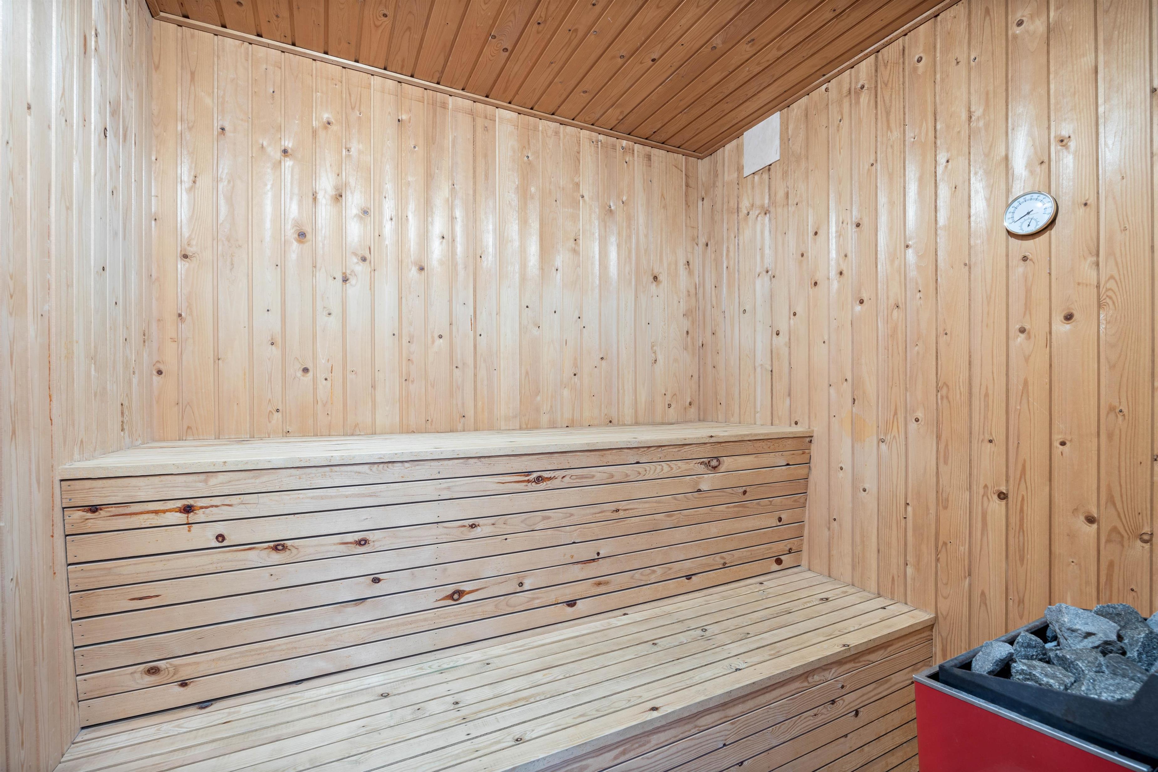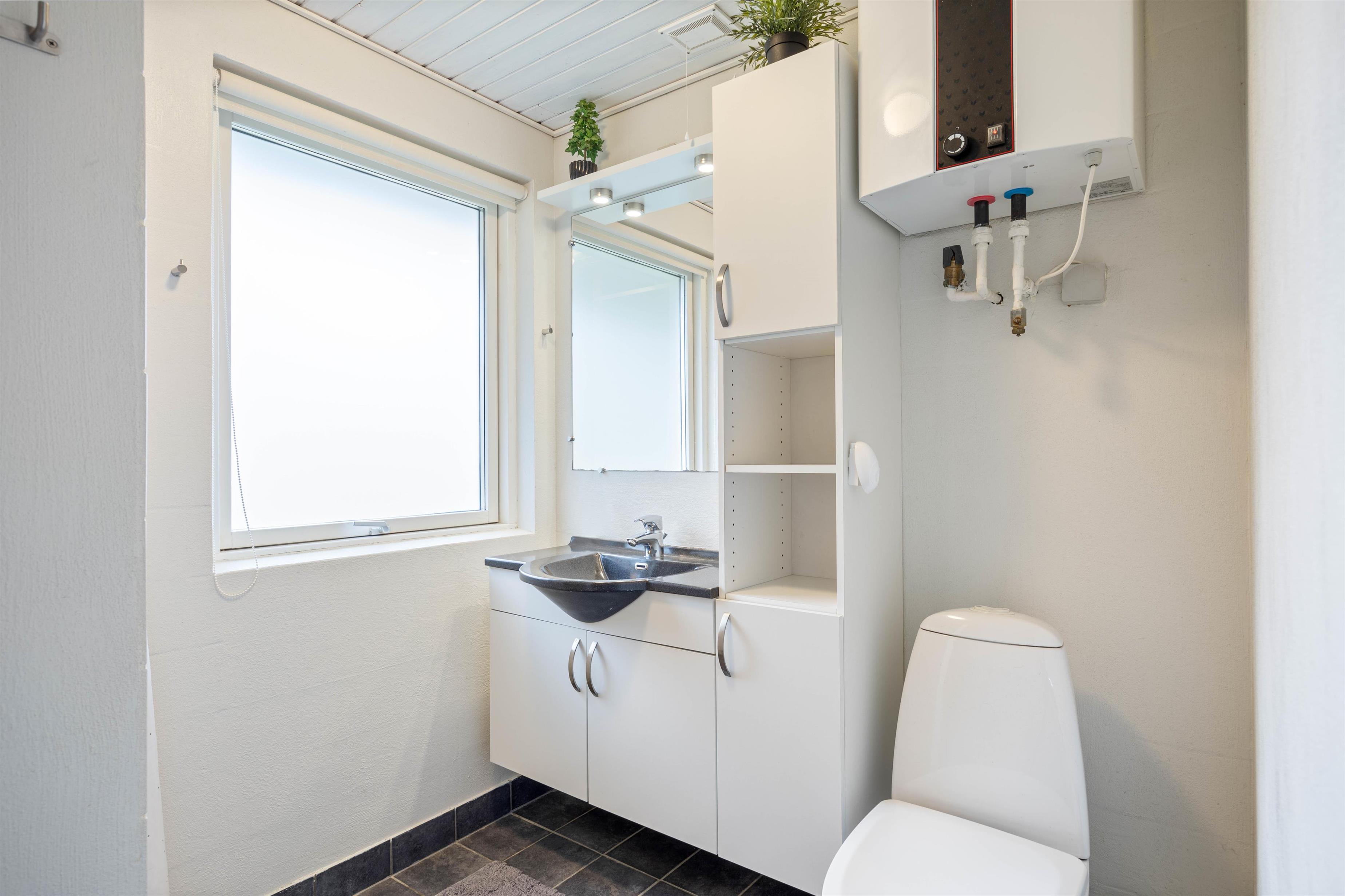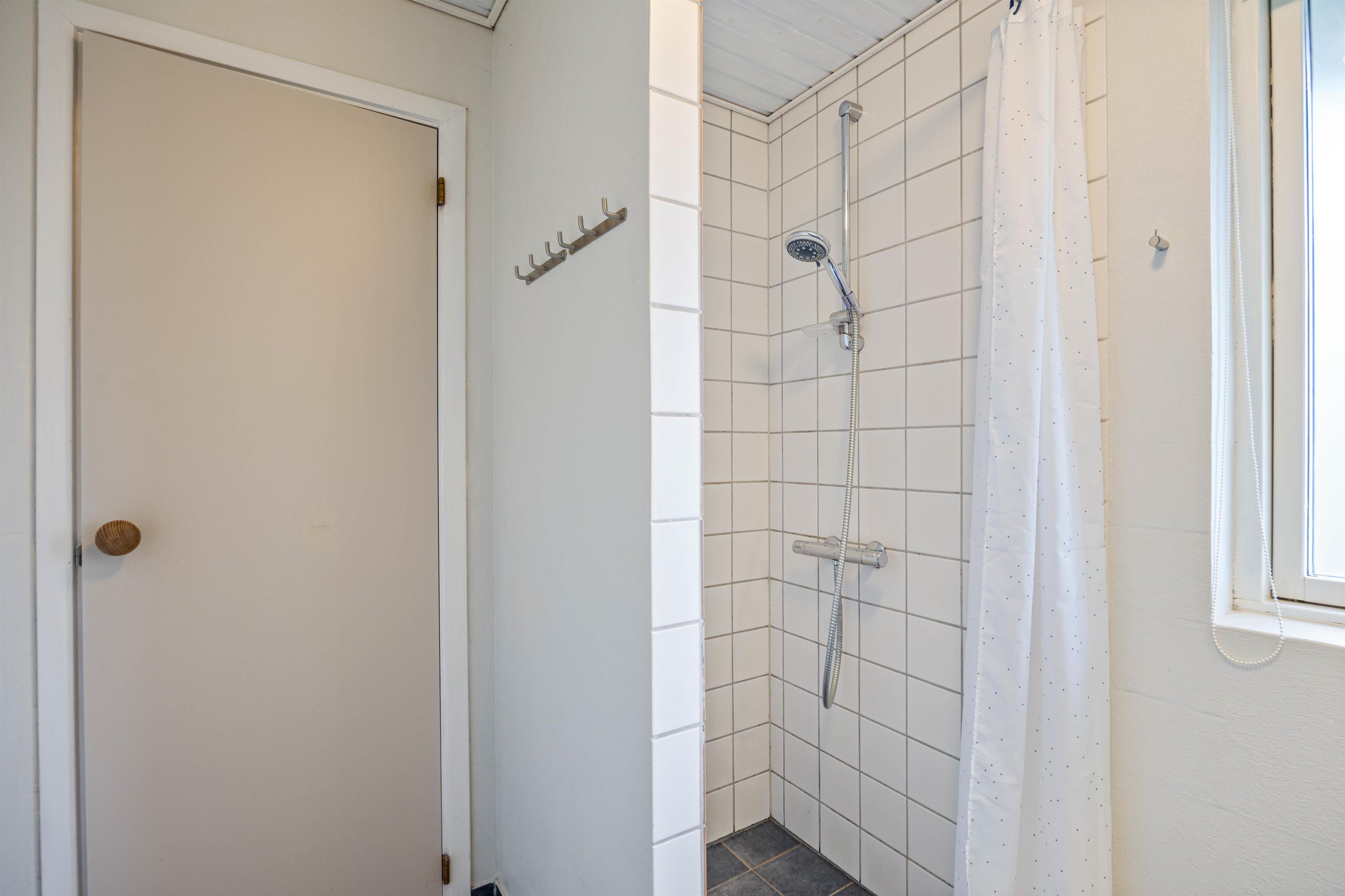 Det praktiske og lyst indrettede badeværelse har alt, hvad I har brug for. Bl.a. gulvvarme og en sauna, hvor I kan lade jer gennemvarme – måske efter en lang dag langs stranden eller i klitterne. Det tilføjer ferien et strejf af wellness og masser af velvære.
