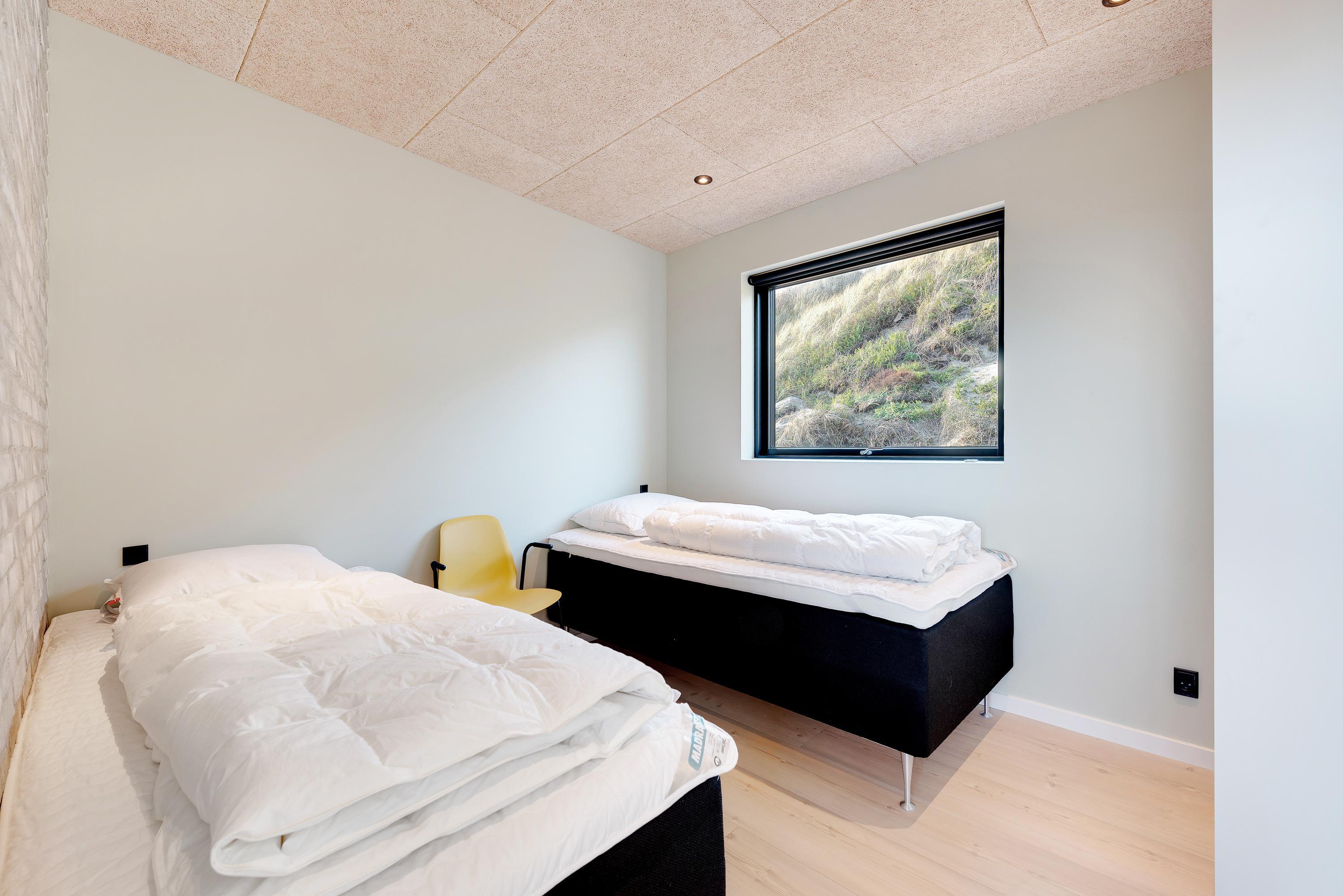 Huset er til 6 personer, ideelt til den store familier, eller 2 par, som ønsker at holde ferie sammen. Her er 3 soveværelser, heraf er de 2 med dobbeltsenge og 1 værelse med 2 enkeltsenge. Her er 2 badeværelser, begge med gulvvarme og bruseniche.