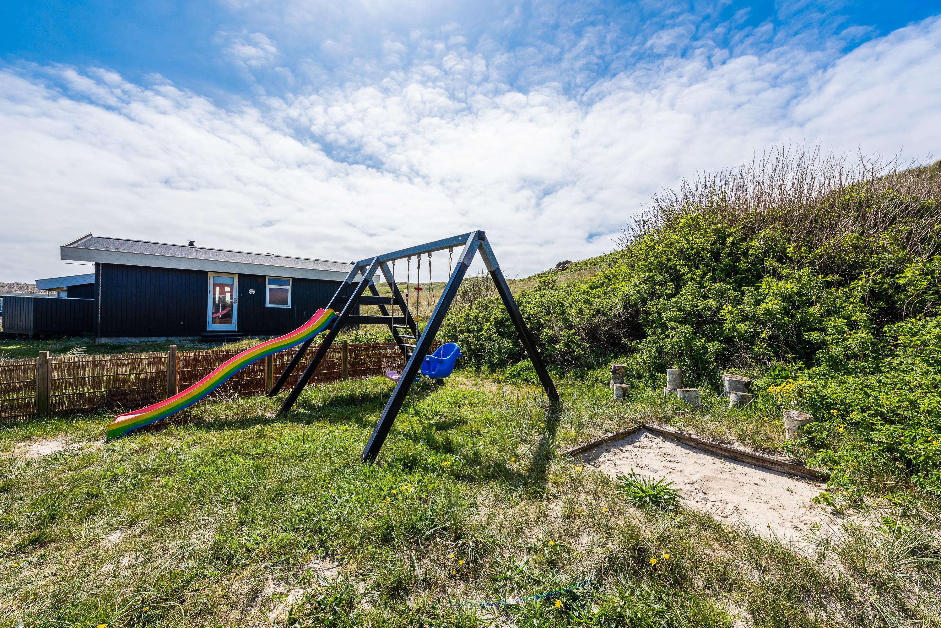 Derudover er feriehuset placeret lige for foden af en klit, så det ligger lidt i læ, og du har en flot udsigt fra terrassen. Og lige ved siden af terrassen står der gynger og en rutschebane, hvor de mindste kan lege, mens du hygger omkring grillen – helt perfekt til en familieferie i den danske sommer.