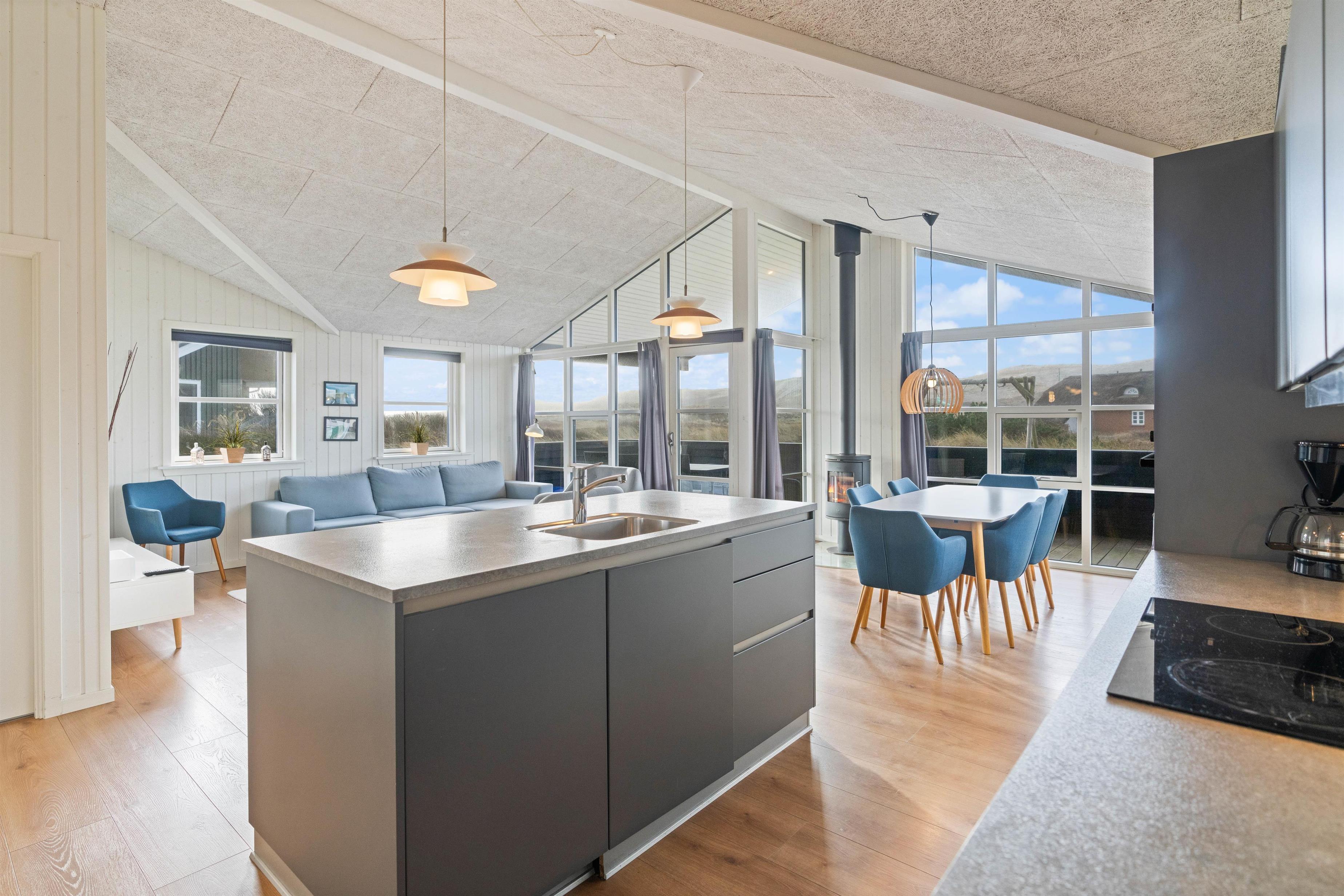 Feriehuset er flot og hyggeligt indrettet, så det har den helt rette atmosfære til ferien. Her handler det om at være sammen og nærværende, hvilket det åbne køkken og stuen giver god mulighed for. Så slå jer løs i køkkenet, dyst mod hinanden i sjove spil eller slap bare af med en god film.