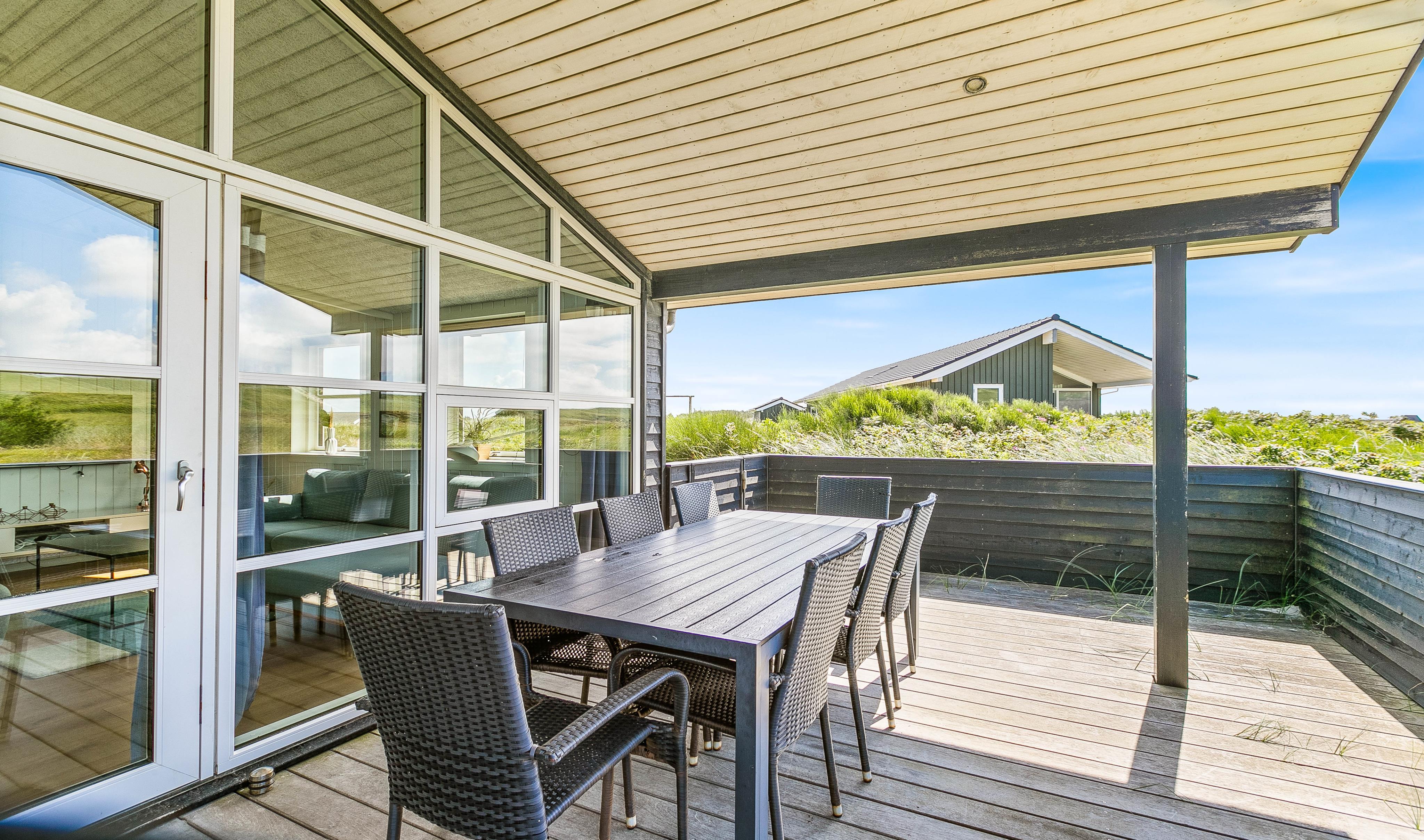En af terrasserne er lukket og dermed helt perfekt, hvis du har hund og småbørn med. Og især den overdækkede terrasse er god til sommerfrokoster og grillaftener i det fri.