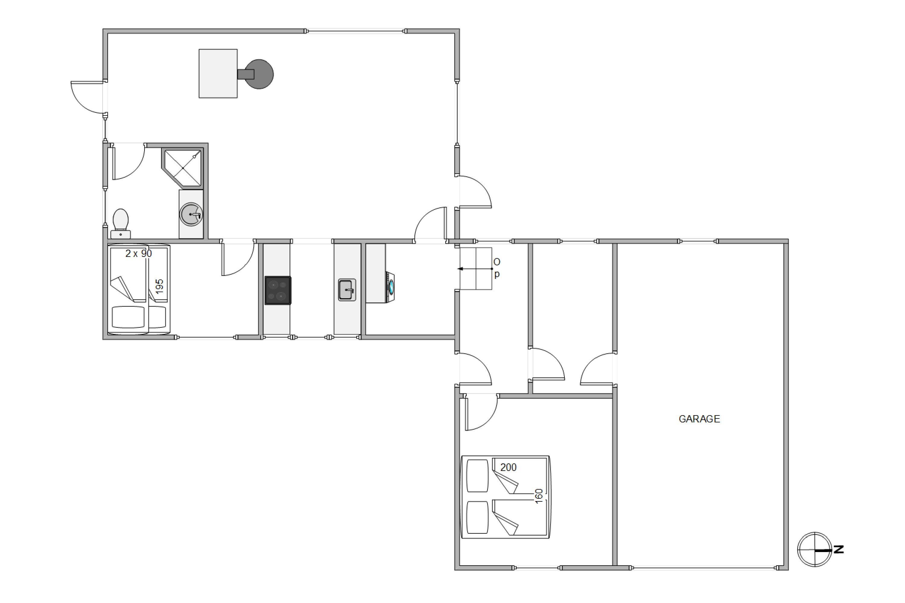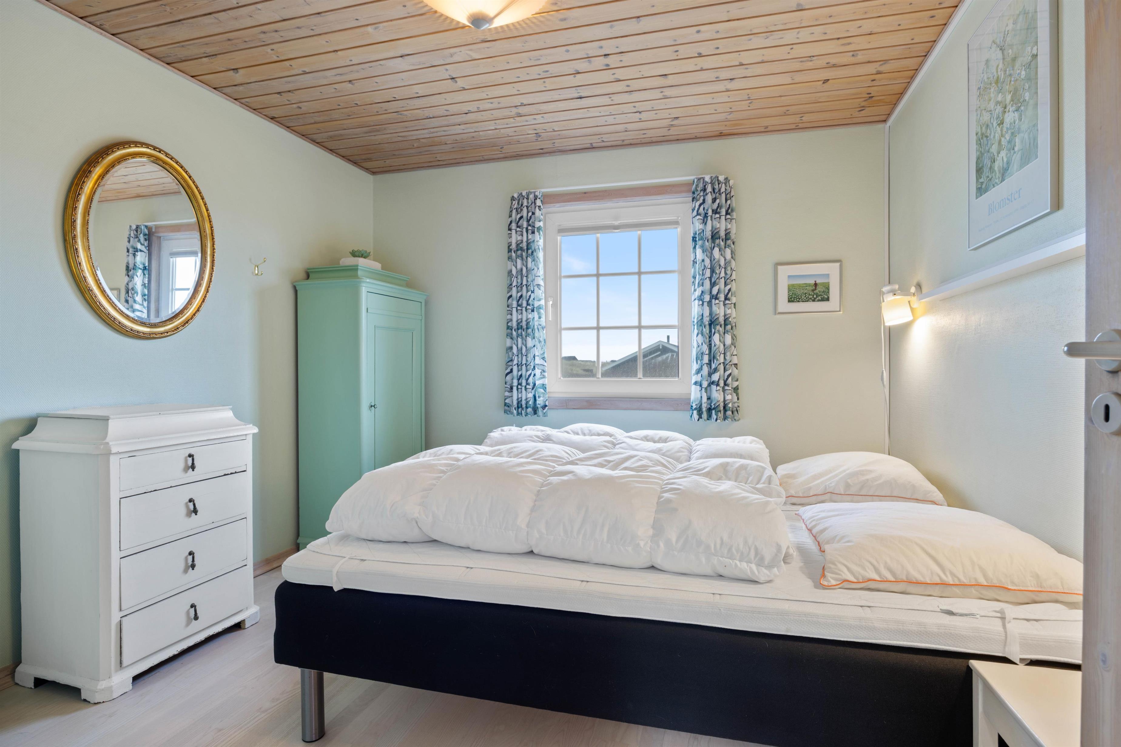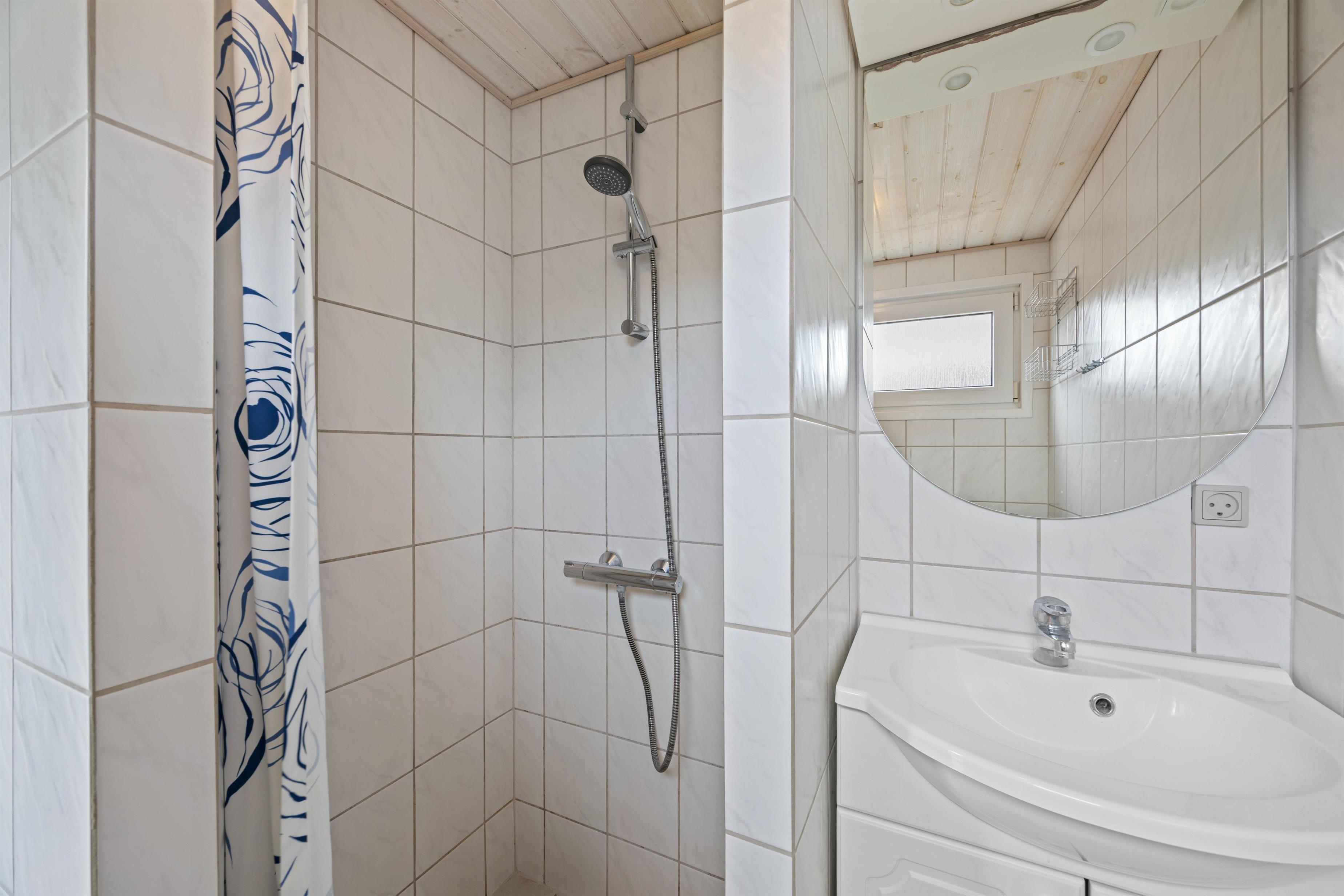Sommerhuset har 2 soveværelser; et med en dobbeltseng og et med en køjeseng – perfekt til både par og små familier. Badeværelset har gulvvarme, så I får en varm og behagelig start på dagen. Der er desuden både en vaskemaskine og en varmepumpe i sommerhuset.