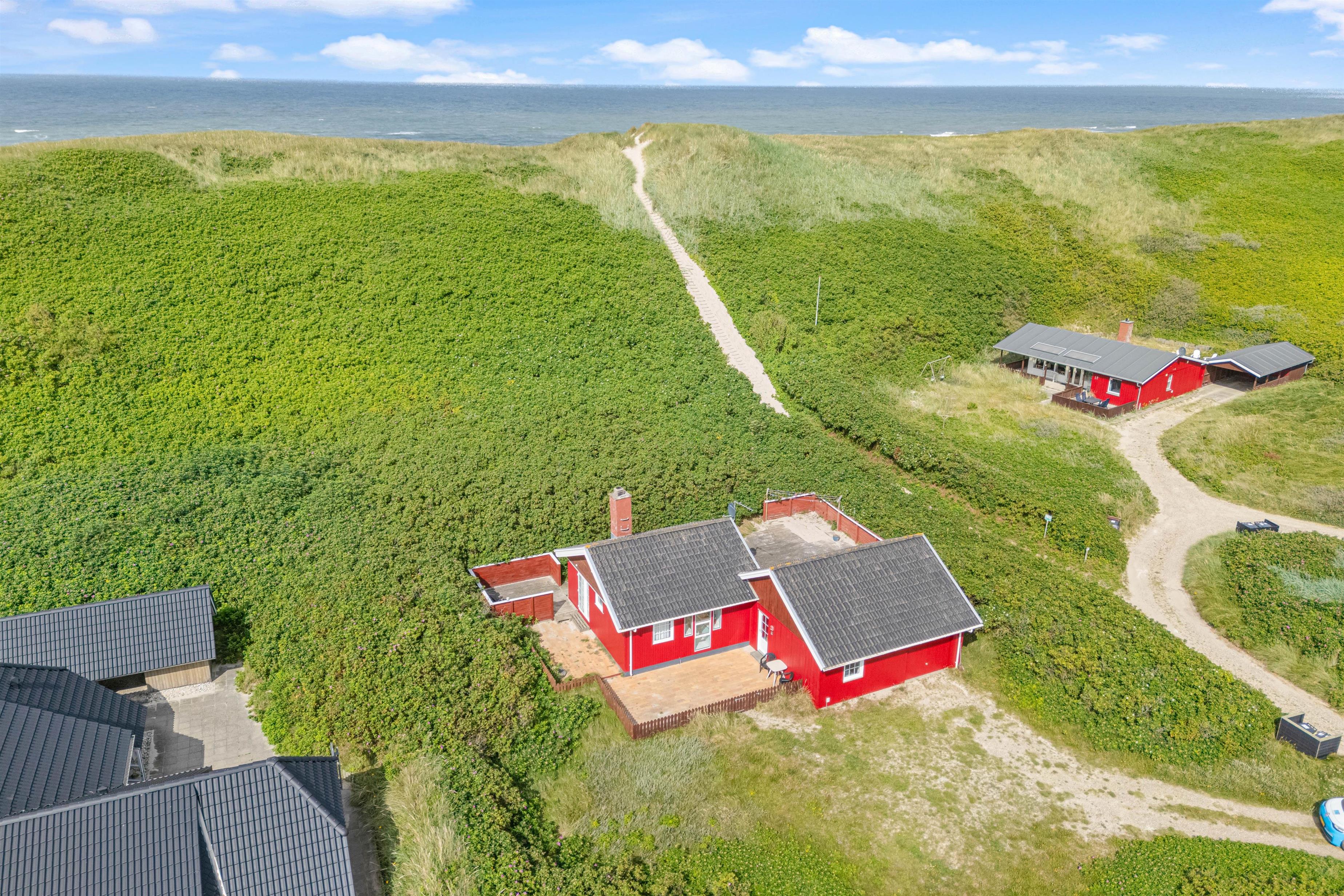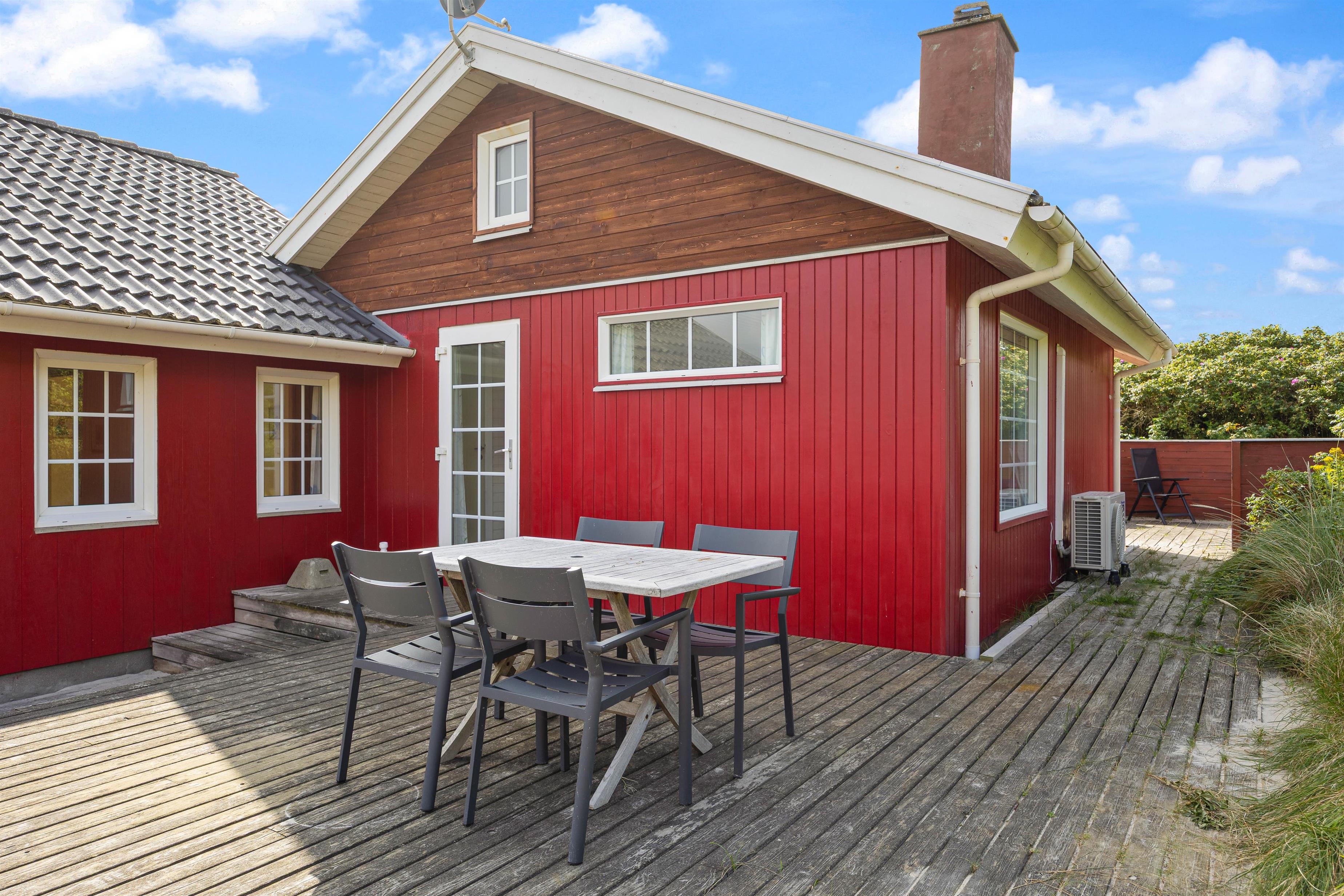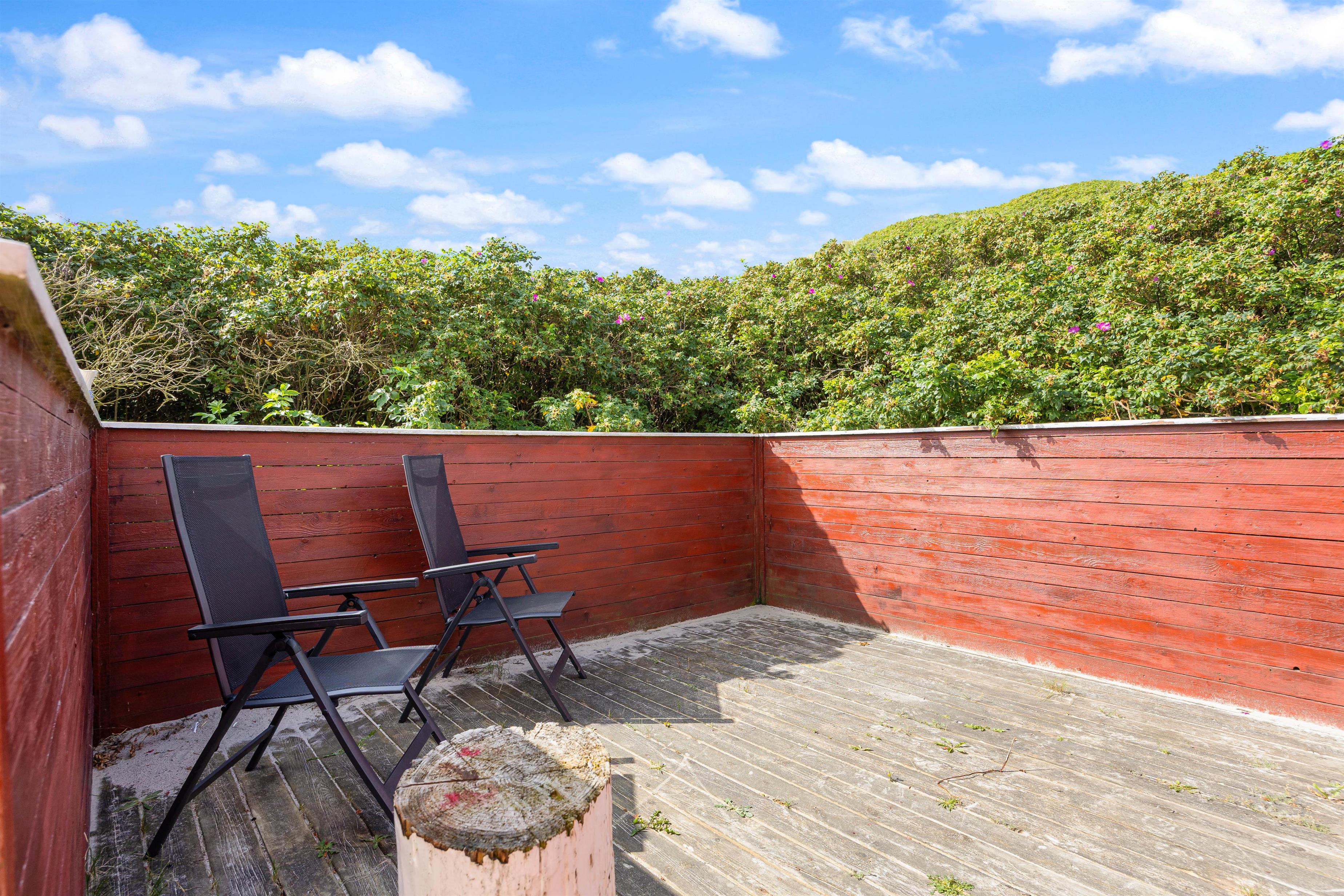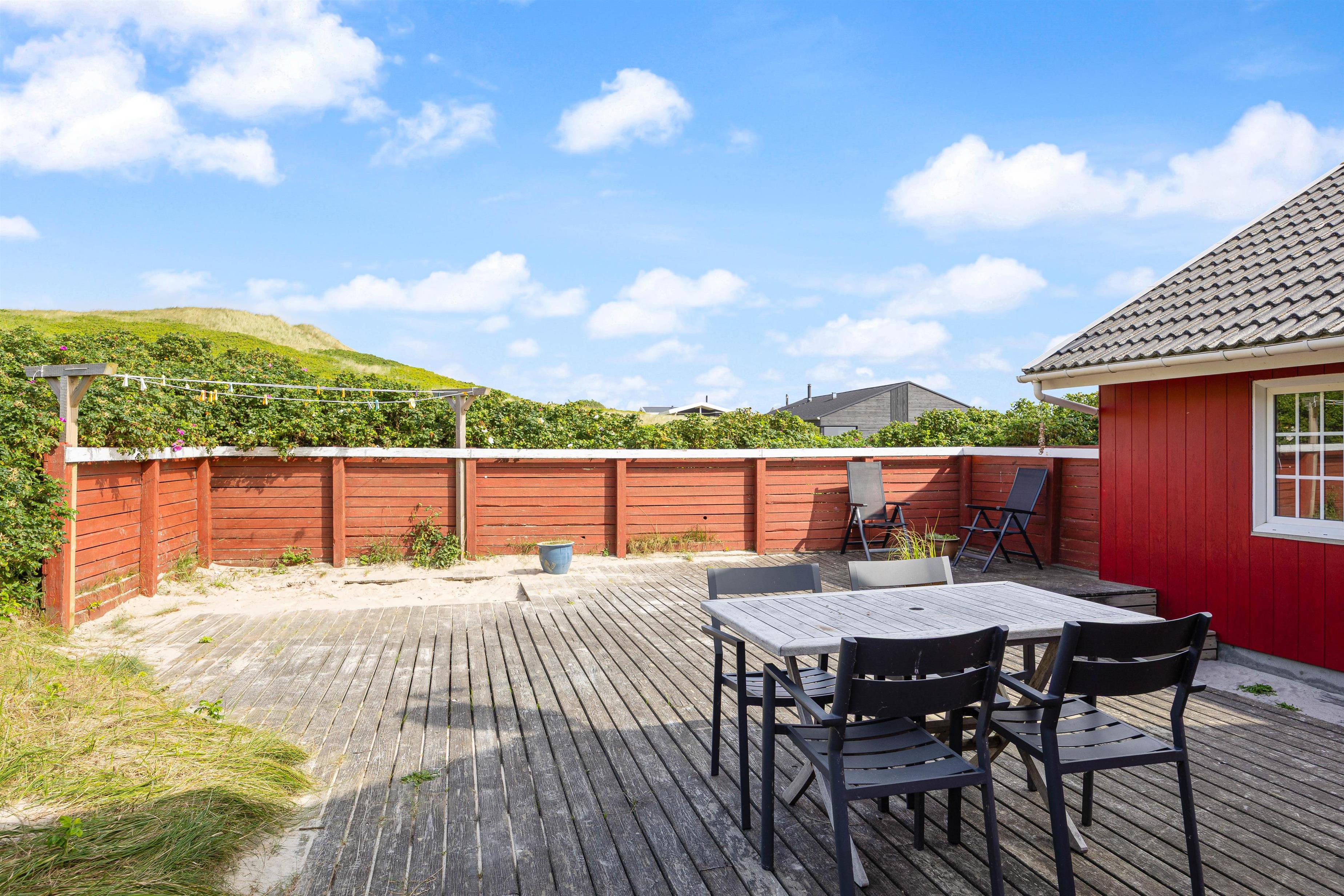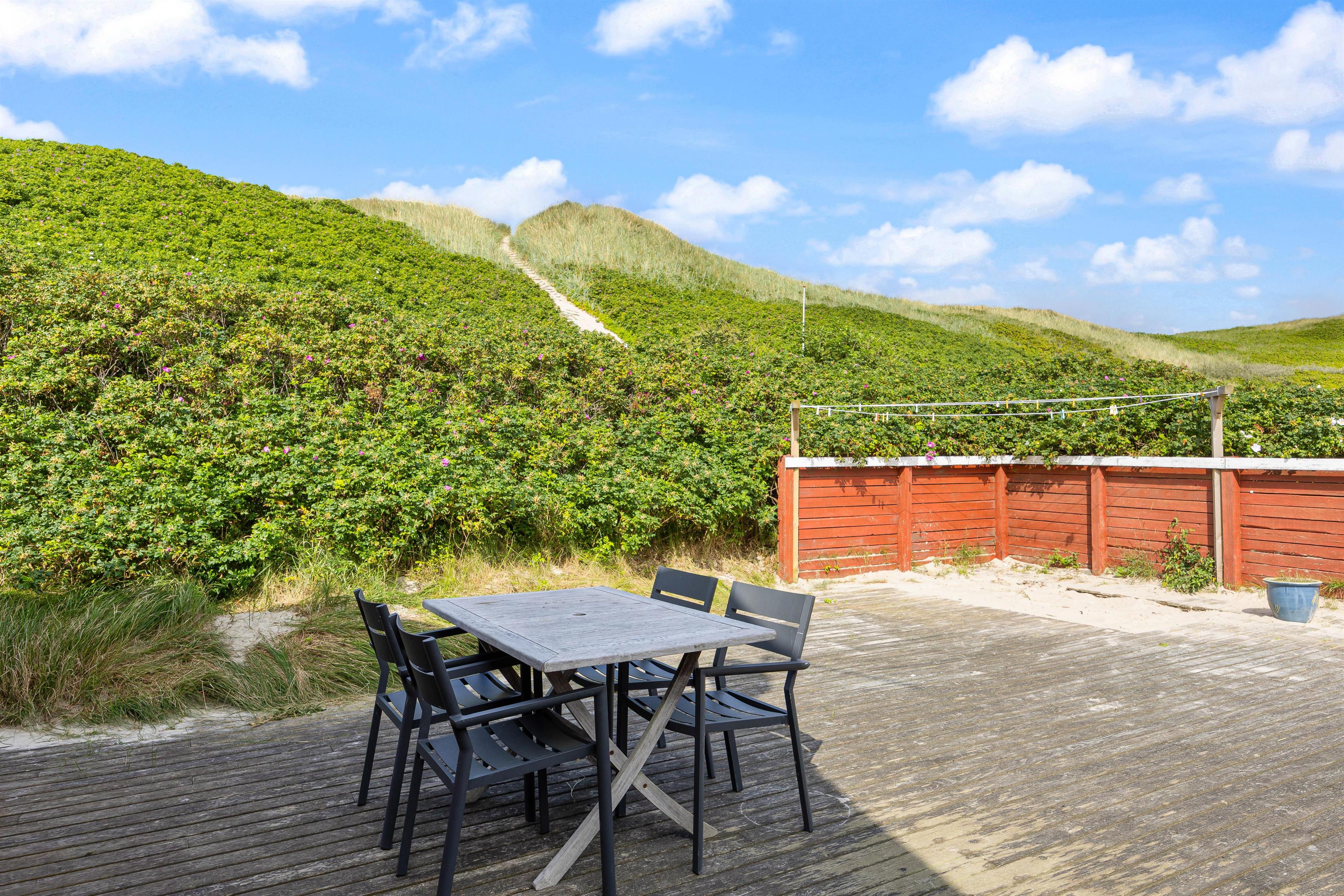 Udenfor finder I en skøn, åben terrasse, hvor I kan nyde de rolige omgivelser med udsigt til klitterne. Her kan I starte dagen med en kop kaffe i den friske havluft eller grille lækre måltider på sommerhusets grill. Sommerhuset ligger på en skøn klitgrund med masser af plads til at slappe af og lade op i naturens stilhed. Da sommerhuset er placeret så tæt på klitterne, skal I være opmærksomme på, at der kan være sand på terrassen.