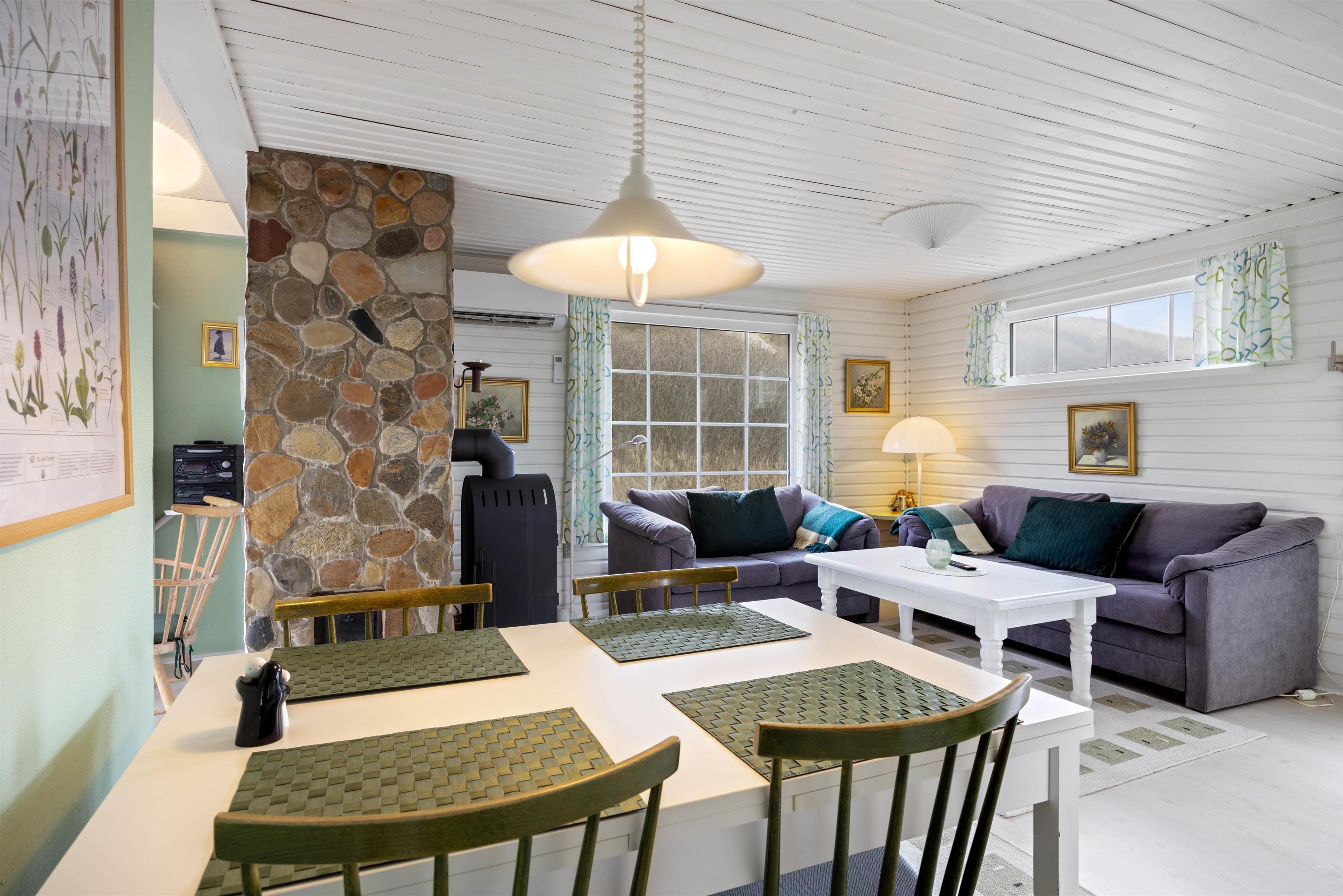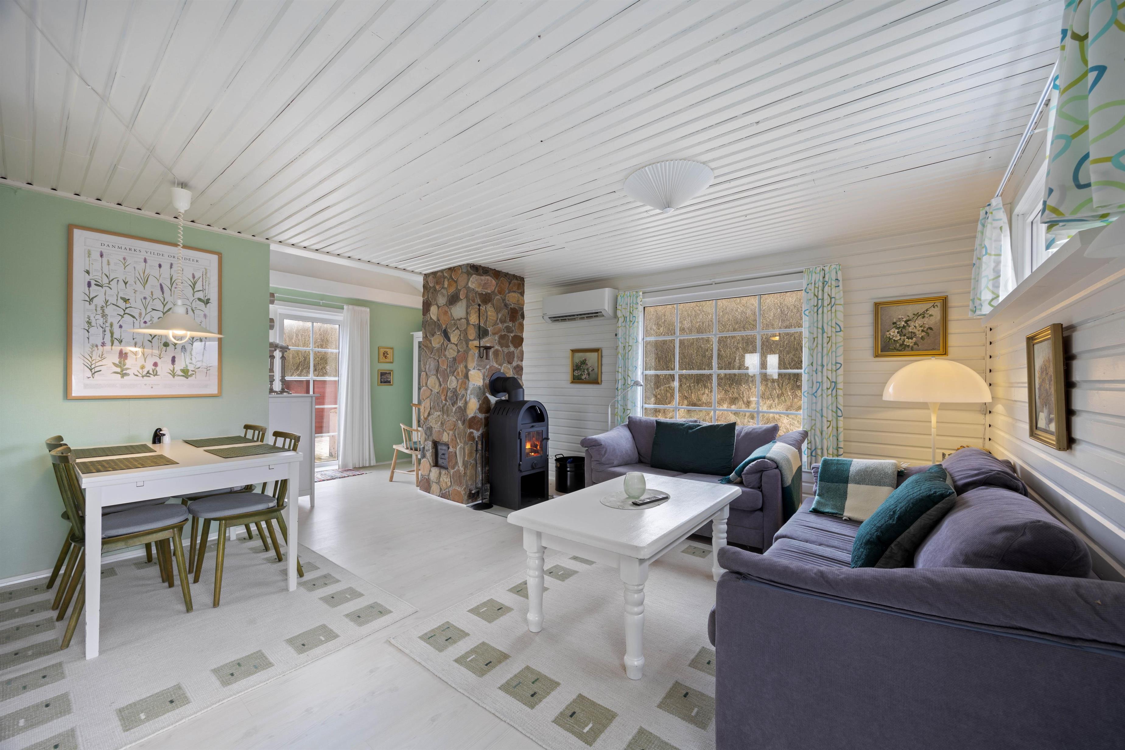 Indenfor møder I en charmende indretning – her kan I samles i stuen og nyde de knitrende lyde fra brændeovnen, spille et spil eller læse en god bog. Spiseområdet ligger i åben forbindelse med stuen og byder på en hyggelig atmosfære. Køkkenet har alt, hvad I behøver for at lave lækre feriemåltider, inklusiv opvaskemaskine, så I slipper for besværet med opvasken.