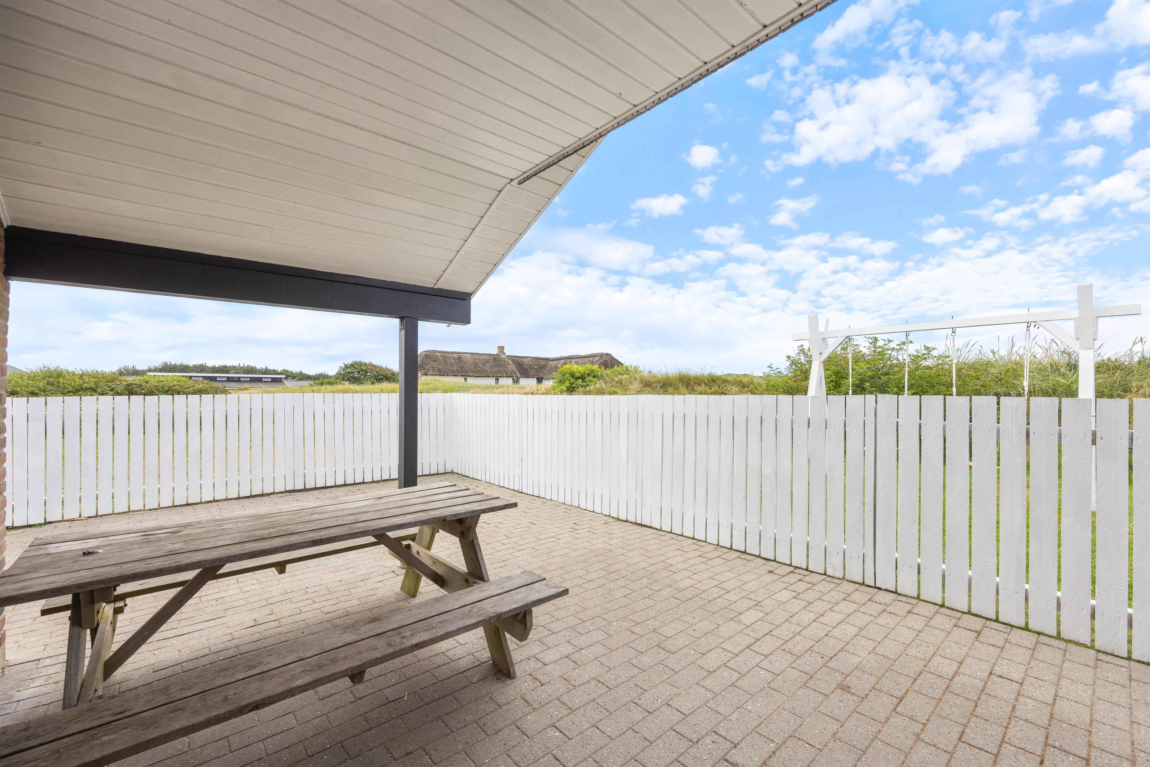 Sommerhuset har en god stor, lukket terrasse. Du har derfor god mulighed for at finde en dejlig lækrog, hvor du kan sidde med en god bog og en kop kaffe, mens børnene og hundene leger. Derudover finder I også en lille overdækket hundegård udenfor, hvor der er plads til, at hundene kan slappe af.