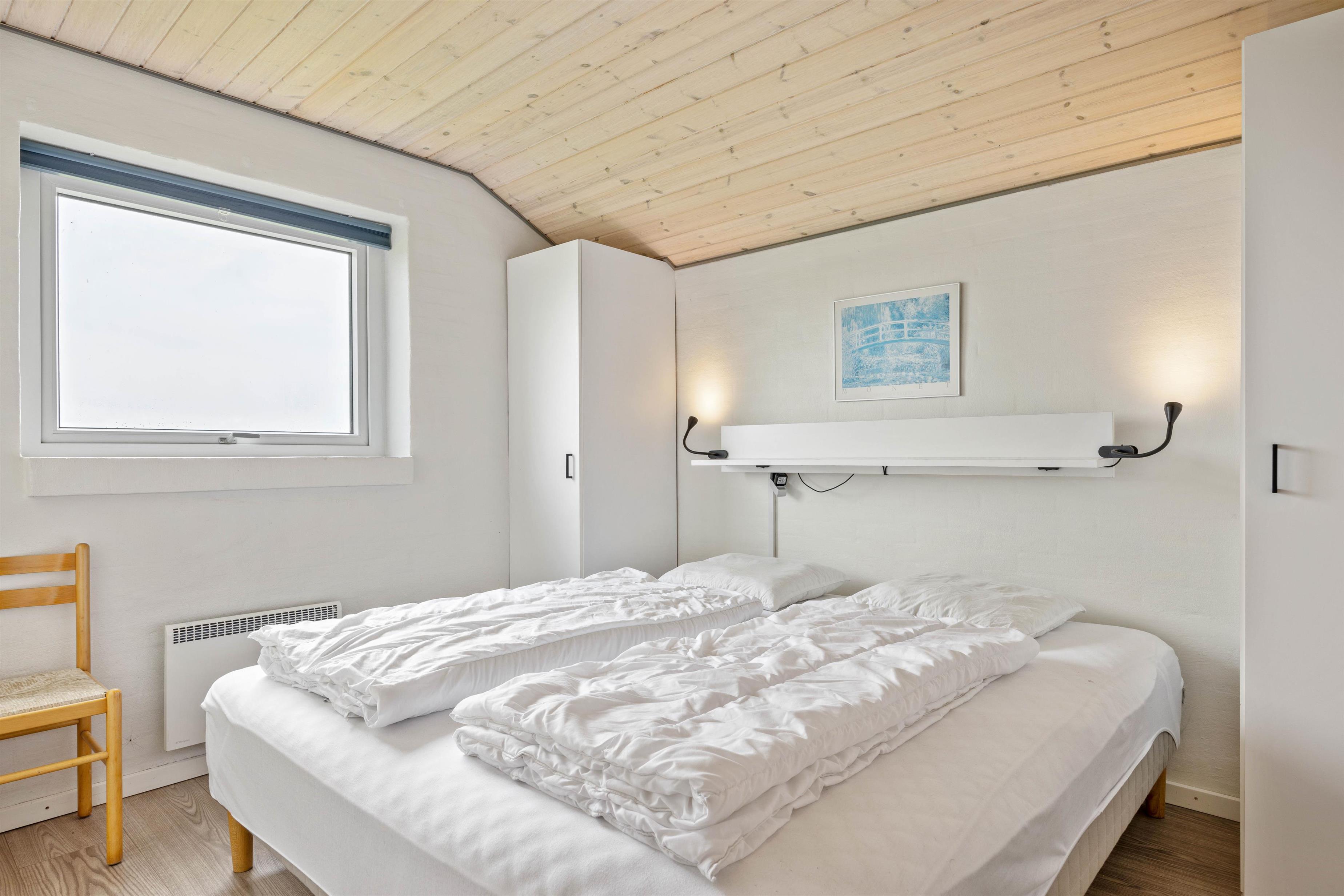 Efter en dejlig dag kan I finde til ro i en af sommerhusets soveværelser. De 8 sovepladser fordeler sig på 4 soverum, så der er plads til alle.