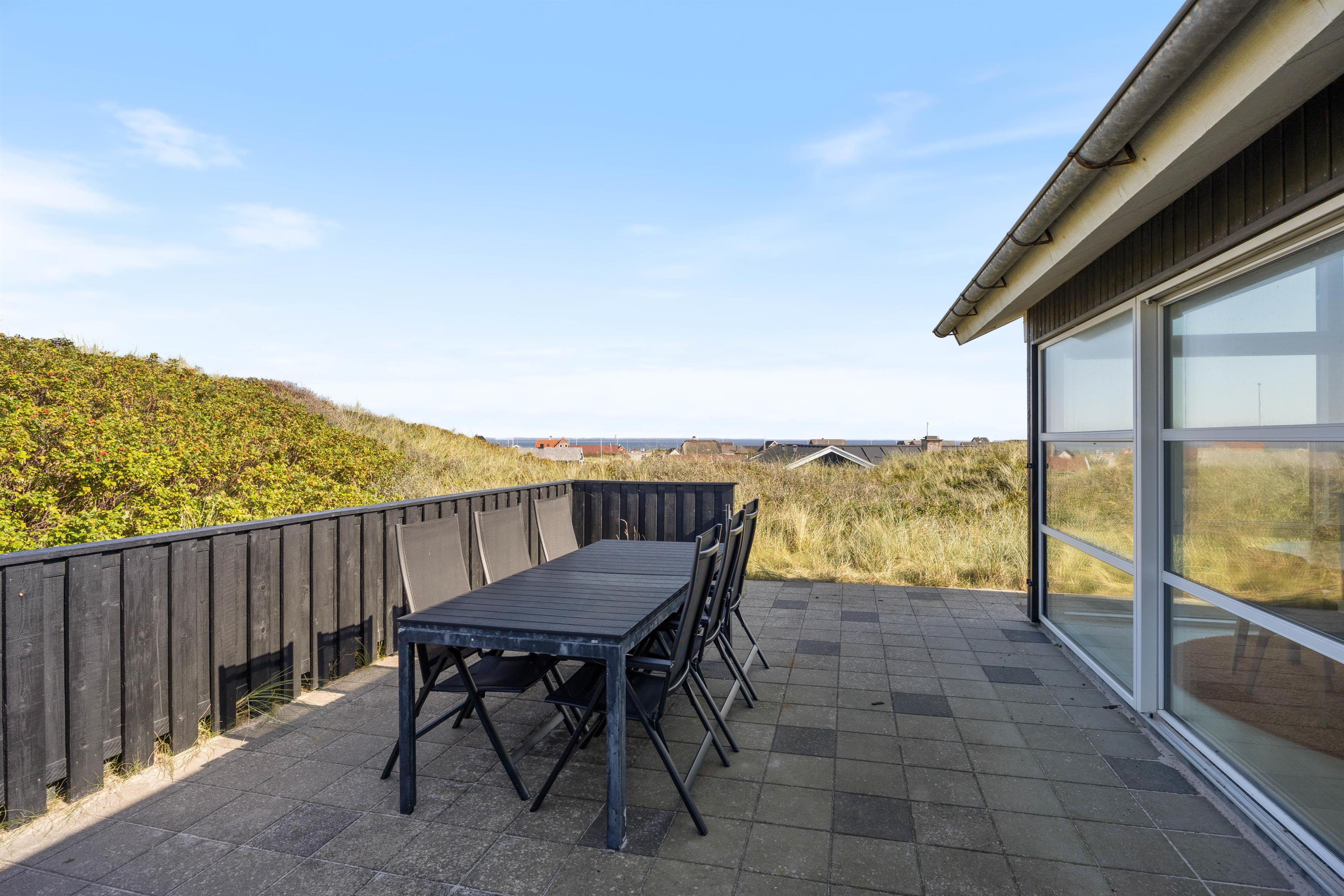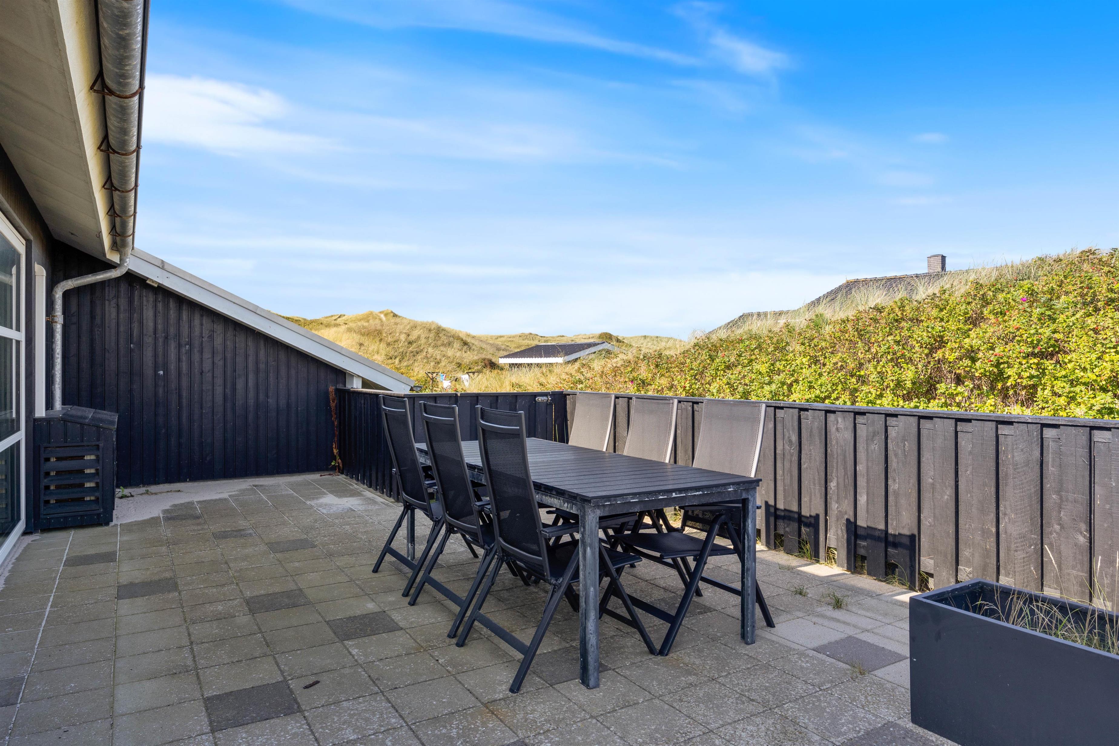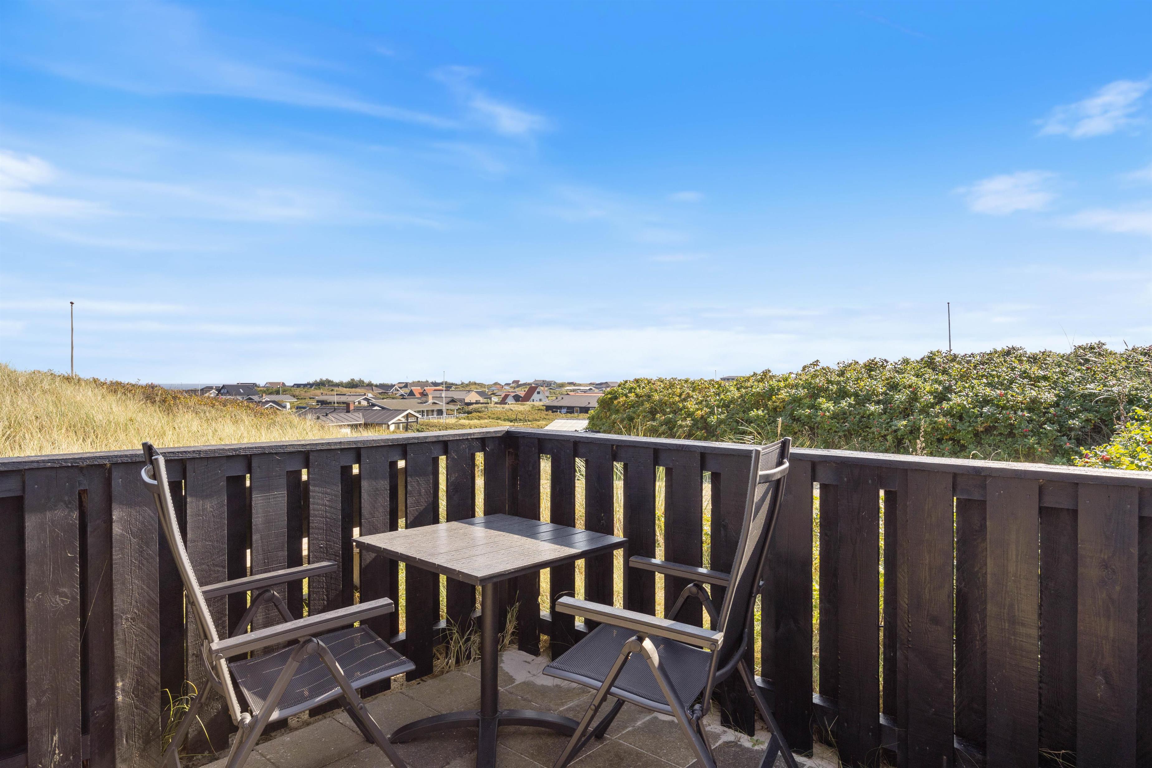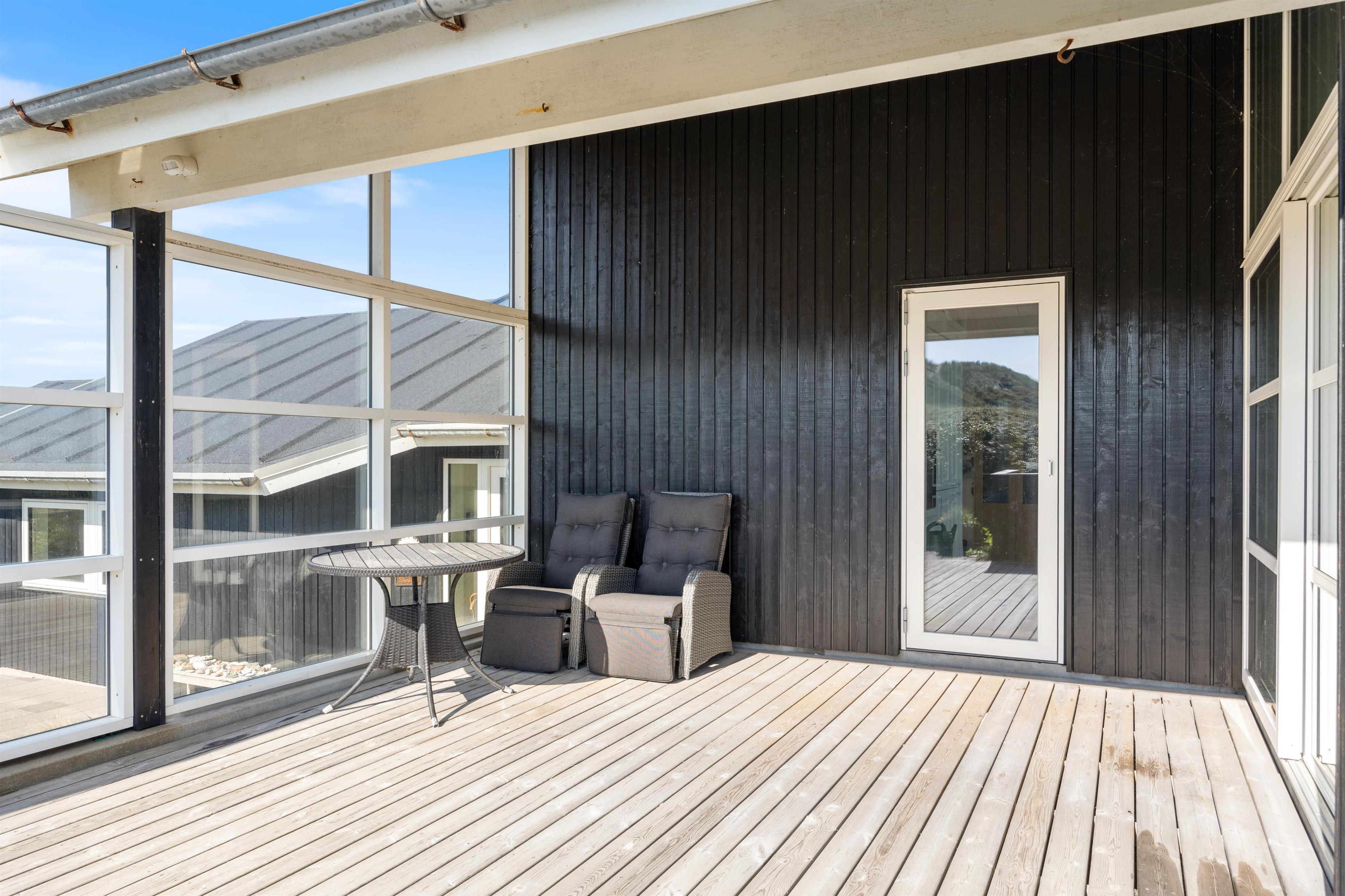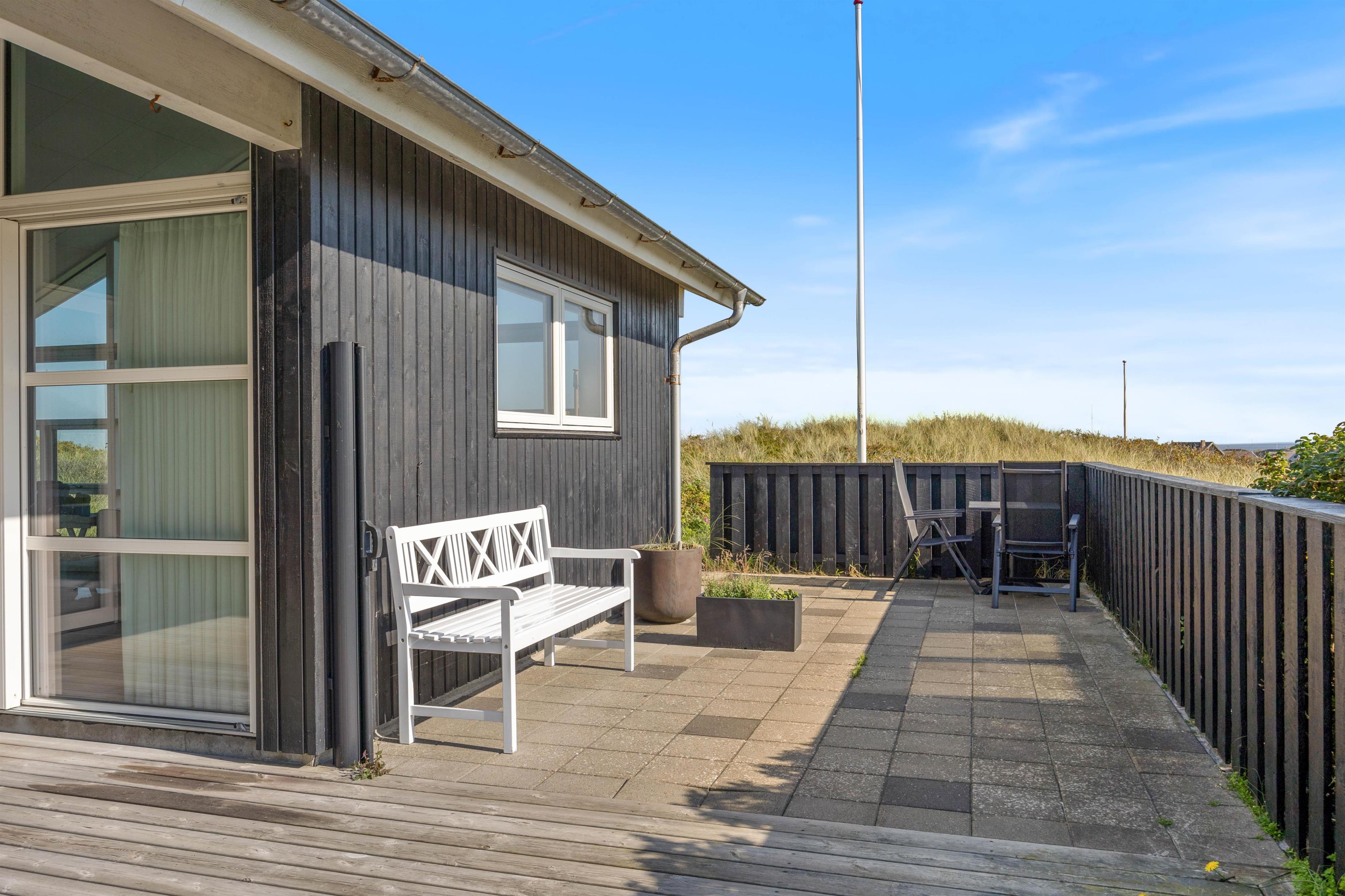 Afdækket terrasse på klitgrund med udebruser