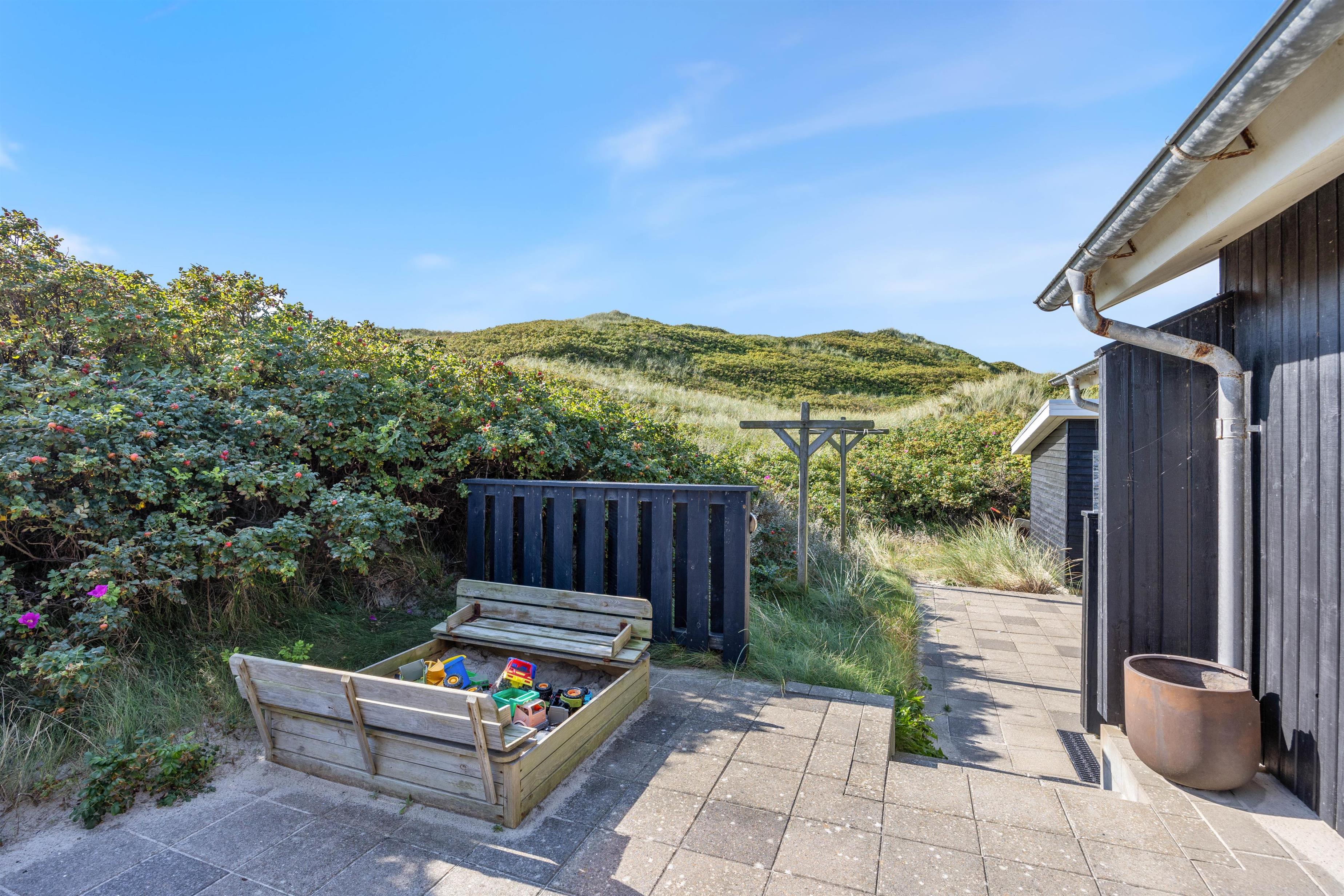 Sommerhuset ligger på et af områdets karakteristiske klitgrunde med en smuk panoramaudsigt over fjorden. På denne smukke grund, kan I også nyde et udendørs bad under den dejlige udebruser efter en dag med solbadning og strandaktivteter ved Årgabs strand, hvor I trænger til at få skyllet det sidste sand og saltvand af huden. Udebruseren er dog kun tilgængelig fra april til november.