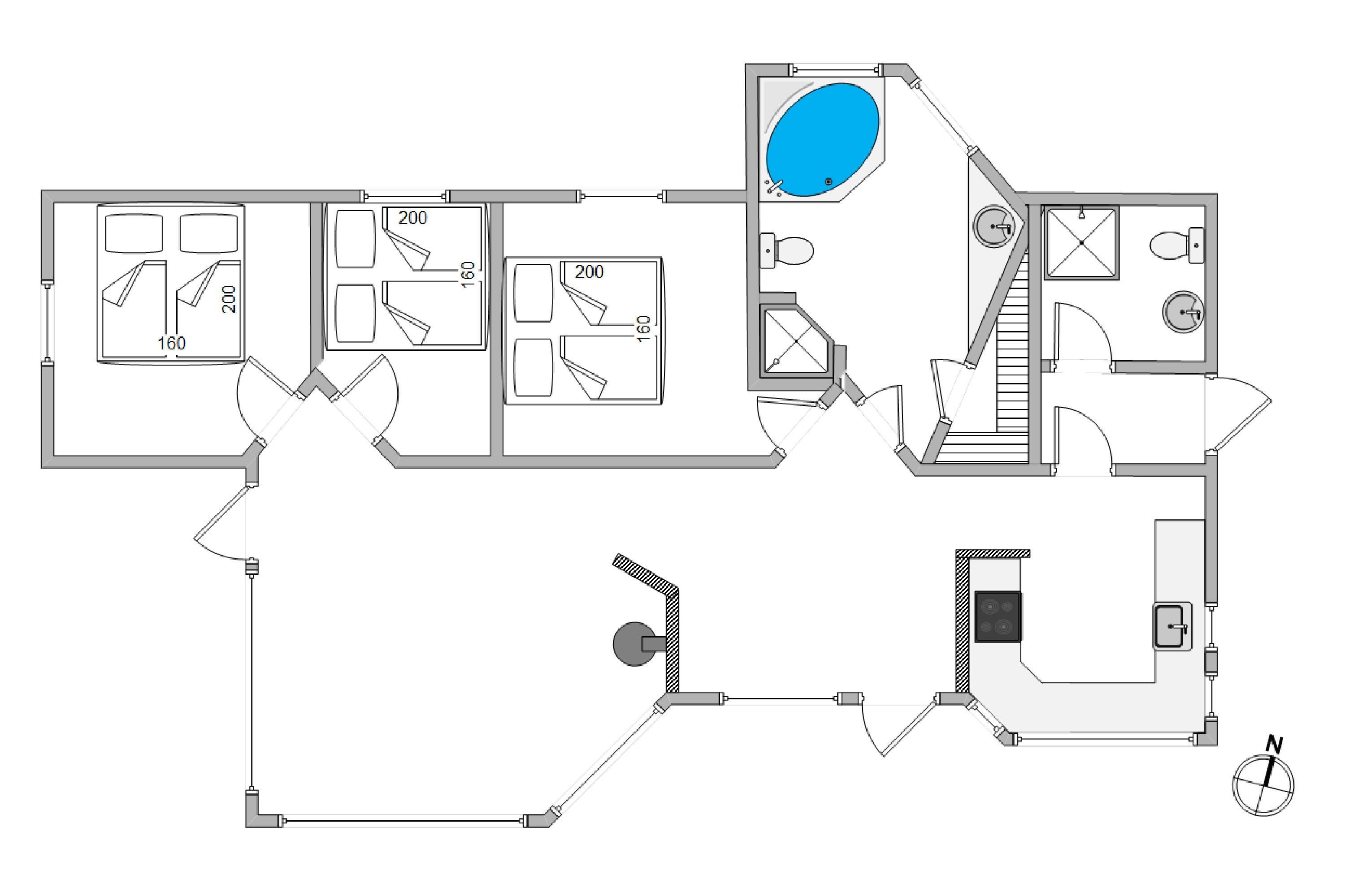 Utroligt dejligt sommerhus med førsteklasses beliggenhed på en dejlig, kuperet og ugeneret klitgrund kun 100 meter fra hav og strand. Sommerhuset er meget velindrettet og har både sauna og spa. Den skønne lukkede og overdækkede terrasse mod syd er perfekt for både børn, voksne og hunde. 2 hunde tilladt.