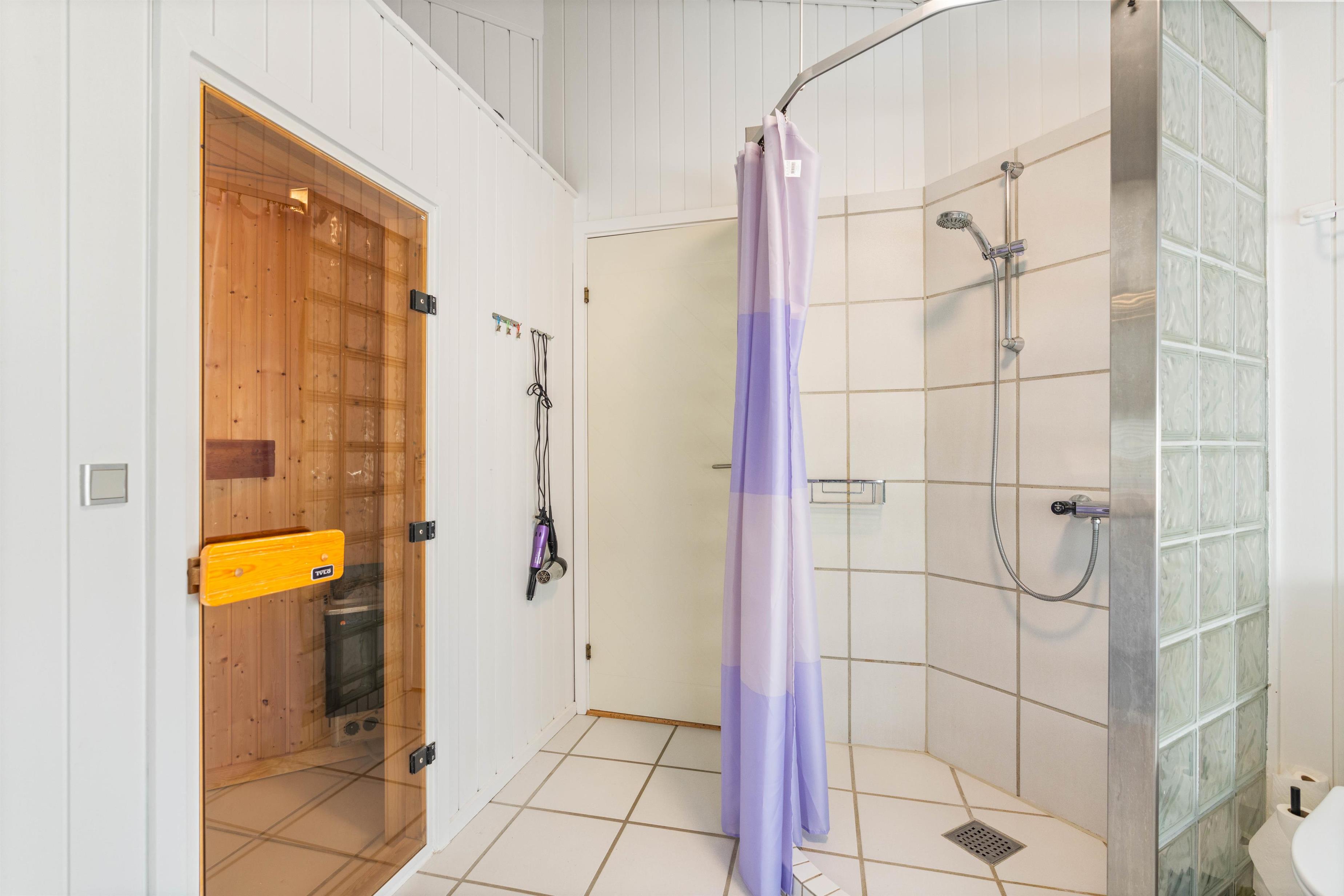 Dette skønne sommerhus ligger på en helt enestående 1.200 m2 stor naturgrund tæt Årgab strand, et af de mest attraktive sommerhusområder på Holmsland Klit. Huset er på 88 m2 og er lyst og smagfuldt indrettet og det er et lav-energi hus. Der er plads til 6 personer i 3 soveværelser og en hems. Alle værelser er med dobbeltsenge og trægulve. Huset har to dejlige badeværelser, begge med gulvvarme og bruseniche. I det store badeværelse finder I endvidere et lækkert hjørnespabad samt indgang til husets skønne sauna. Køkkenet vender mod syd, og herfra er der en enestående udsigt over klitlandskabet. I køkkenet er der bl.a. opvaskemaskine, mikroovn og en 50 liters fryser. I forbindelse med køkkenet finder I den store spiseafdelingen med plads til alle. Stuen befinder sig et trin ned fra spisestuen. Her har I et flot lysindfald fra de store vinduespartier. I den meget smagfuldt møblerede stue finder I både fladskærms-TV, DVD-afspiller og en hyggelig brændeovn. Der er desuden vaskemaskine, tørretumbler og gratis trådløst internet i dette dejlige sommerhus.