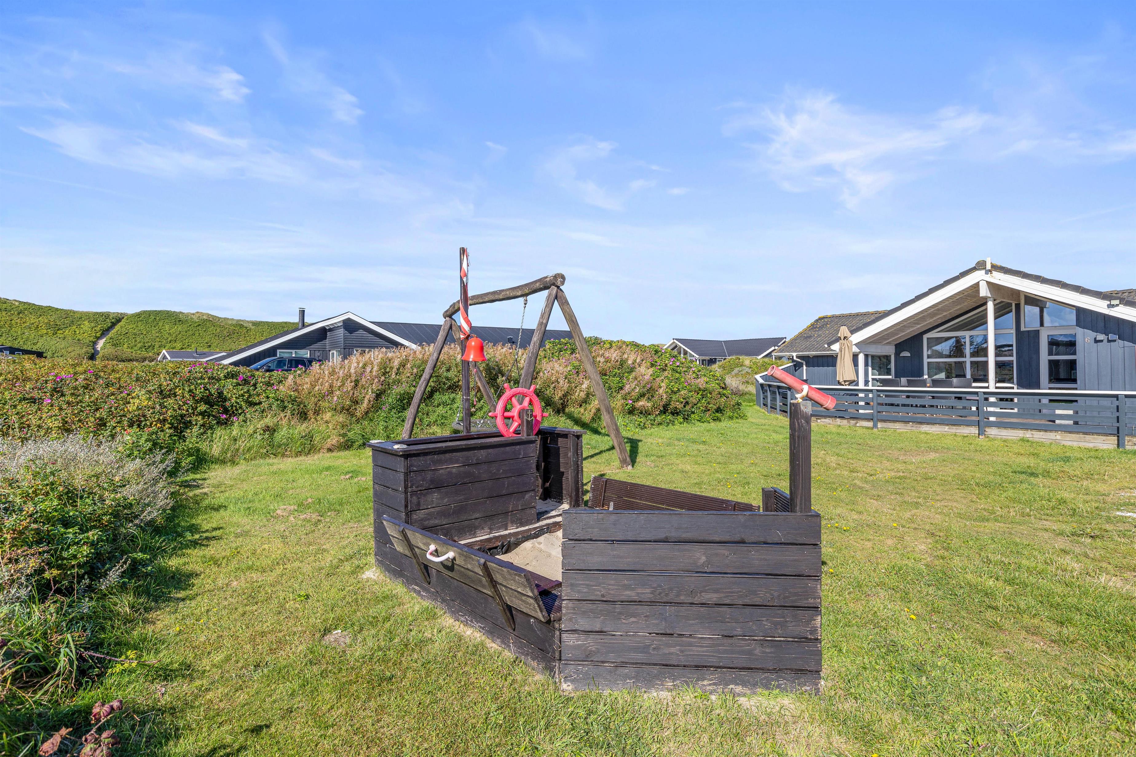 Går de små feriegæster rundt med en sørøver i maven, bliver de med garanti begejstrede for den eventyrlige sandkasse foran huset - et rigtigt sørøverskib med sørøverflag, ror, kikkert og en last ladet med ædelsten (sand).