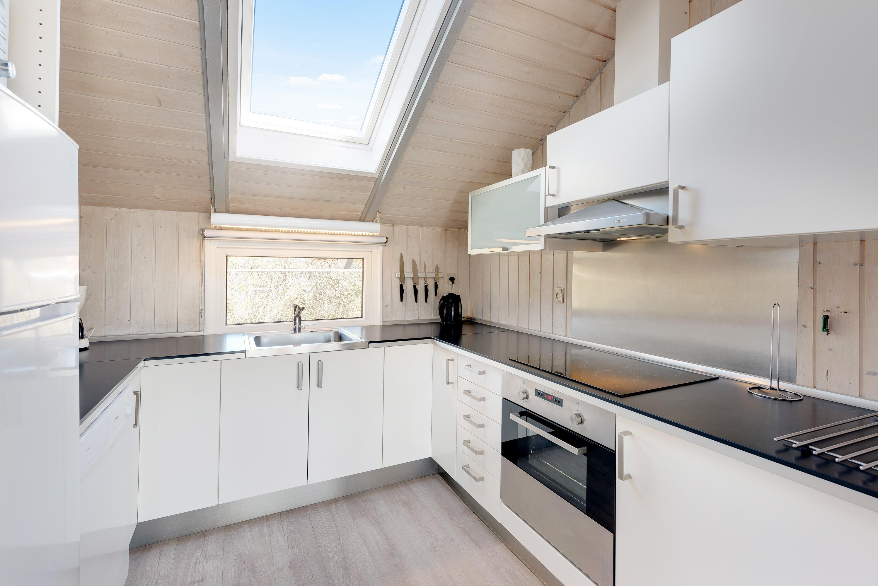 Overalt i feriehuset er der trægulve. Derudover rummer sommerhuset alle de bekvemmeligheder, du forventer af et moderne feriehus. Her finder I opvaskemaskine, vaskemaskine og tørretumbler, som sikrer, at I kan koncentrere jer om at holde ferie. Samtidig har sommerhuset gratis, trådløst internet, så I har mulighed for at gå på nettet.