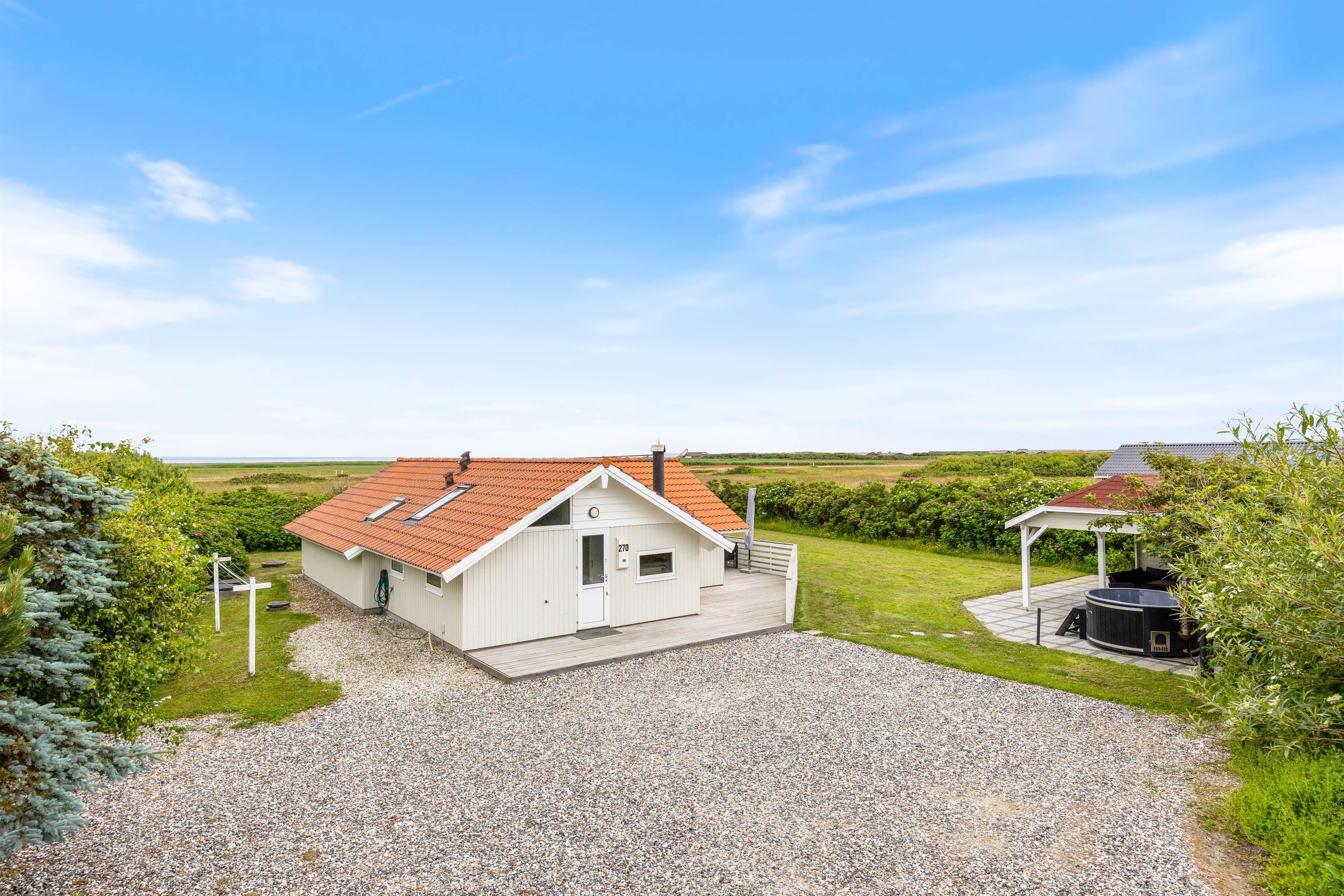 Ferieminder er for de fleste en helt særlig blanding af dufte, smage, lyde, følelser og indre billeder. Ferie i Danmark og ved Vesterhavet kan noget helt særligt. Her bliver den travle hverdag erstattet af en let uhøjtidelighed. I sommerlivet slipper vi reglerne. Vi nyder gode middage og hinandens selskab. Feriehuset på Tingodden 270 sætter rammerne om en dejlig ferie ved Vesterhavet. Den lette og enkle sommerhusstil i huset giver plads og rum til at være sammen. Her kan nattehimlen, fuglekvidren og bølgesus nydes med et glas vin på terrassen eller i de bløde møbler i feriehusets opholdsstue.