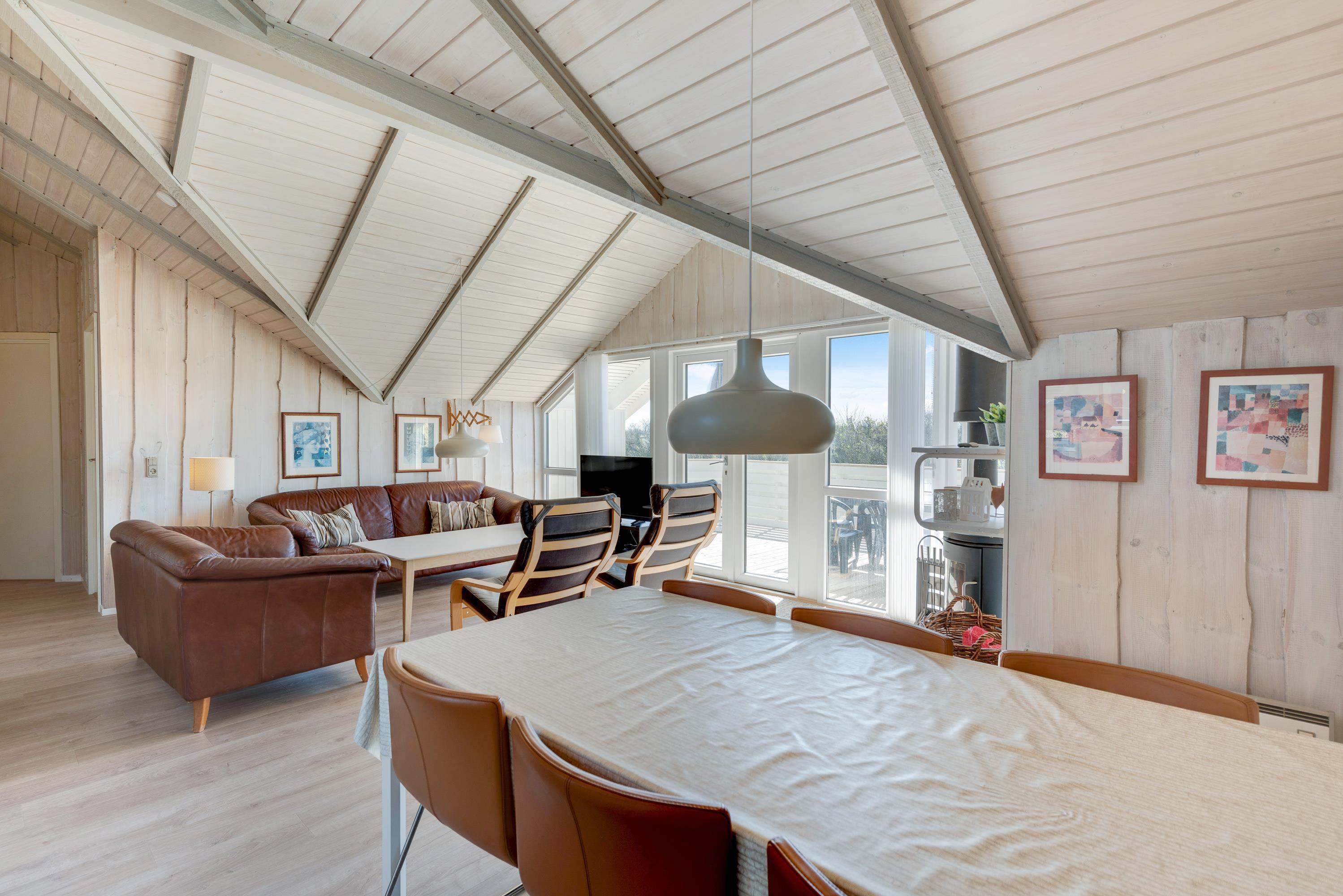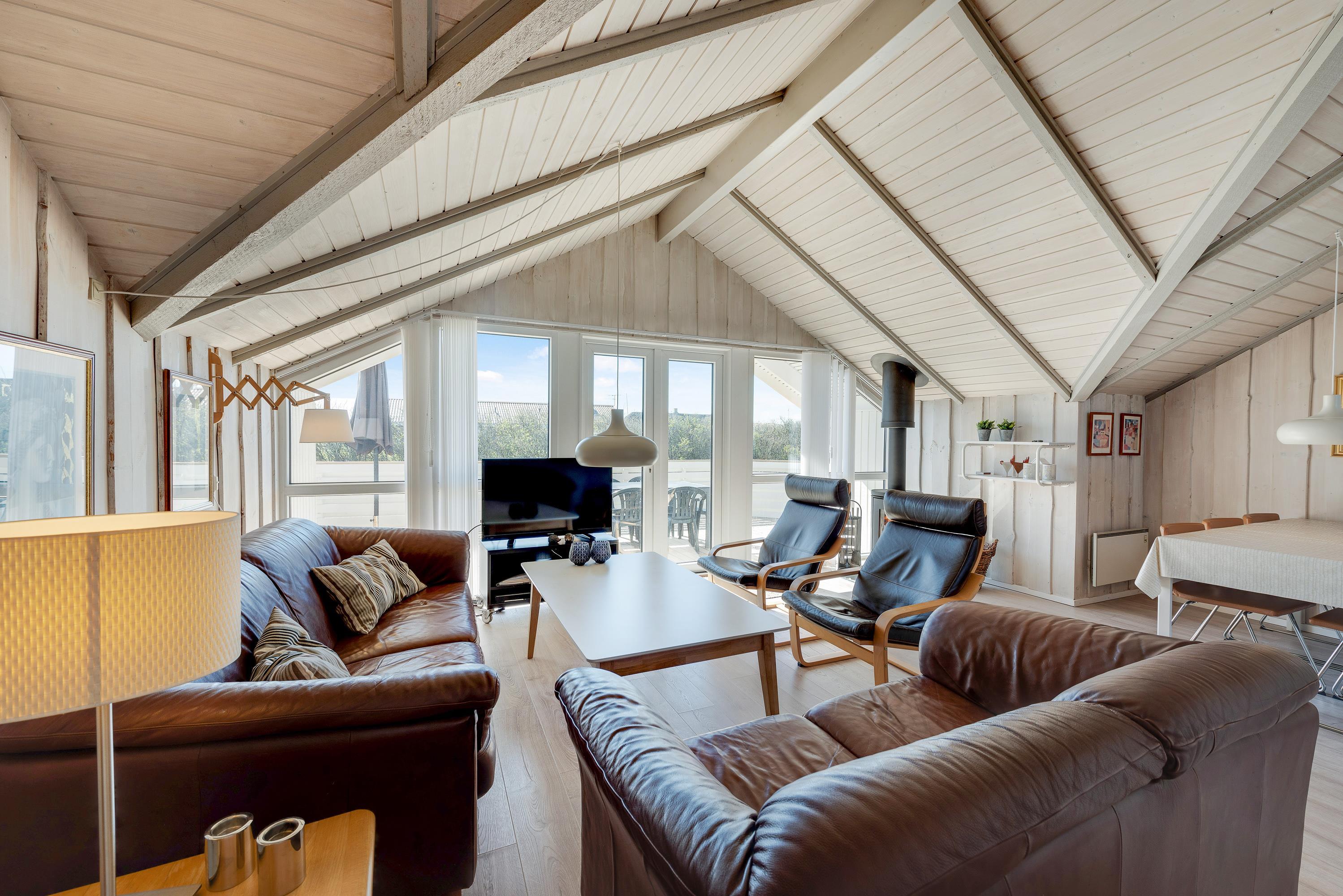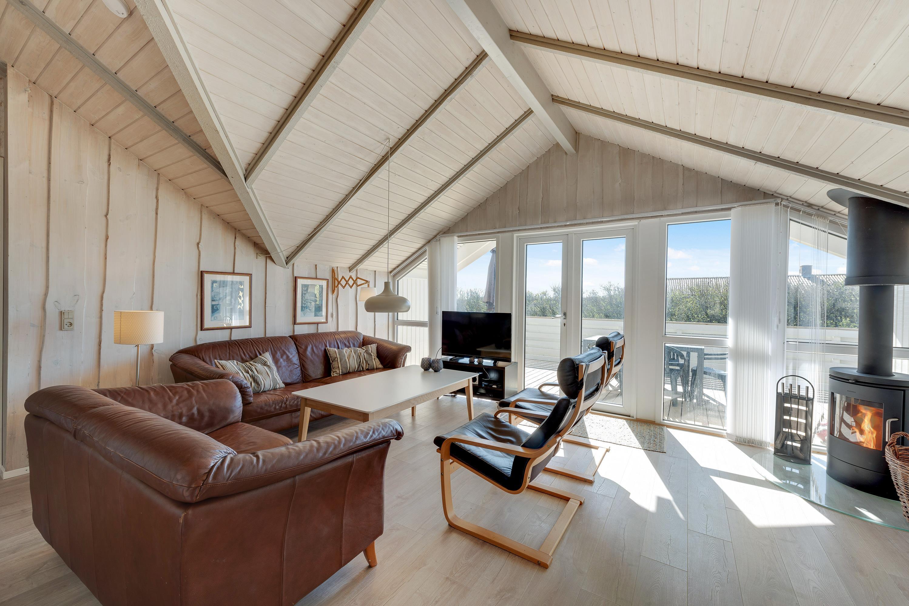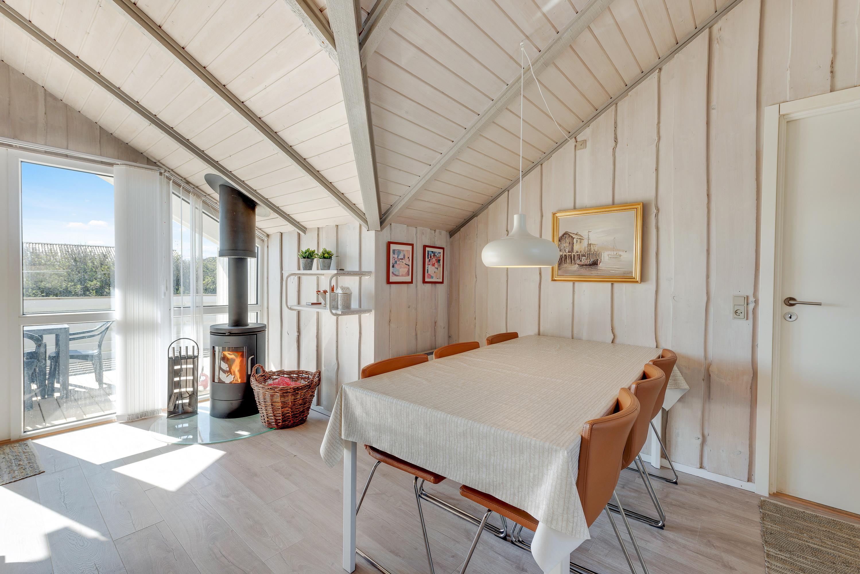 I det store opholdsrum er der en brændeovn, som spreder både varme og ekstra hyggelig feriestemning. Desuden finder I her også en dvd afspiller samt en radio.
