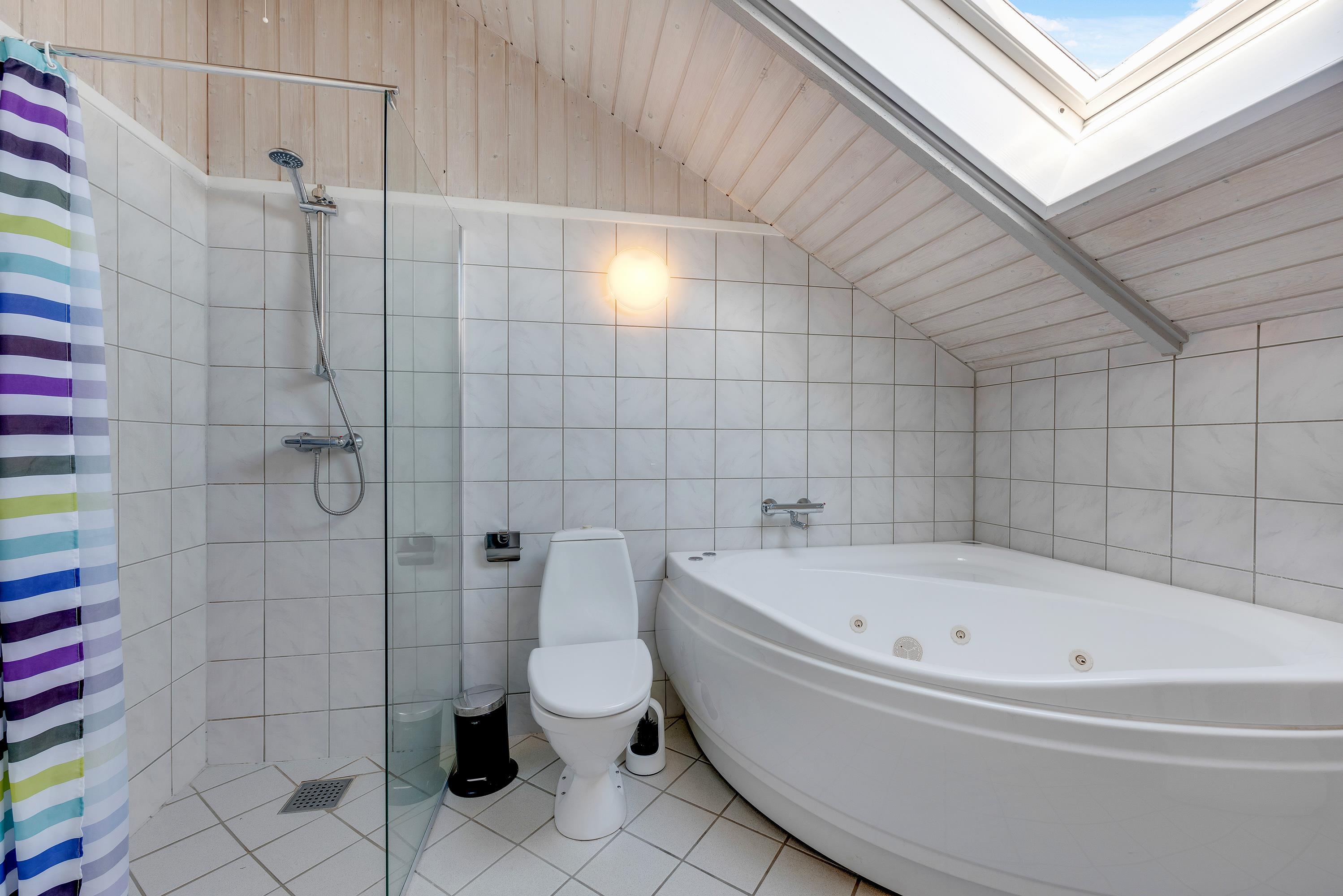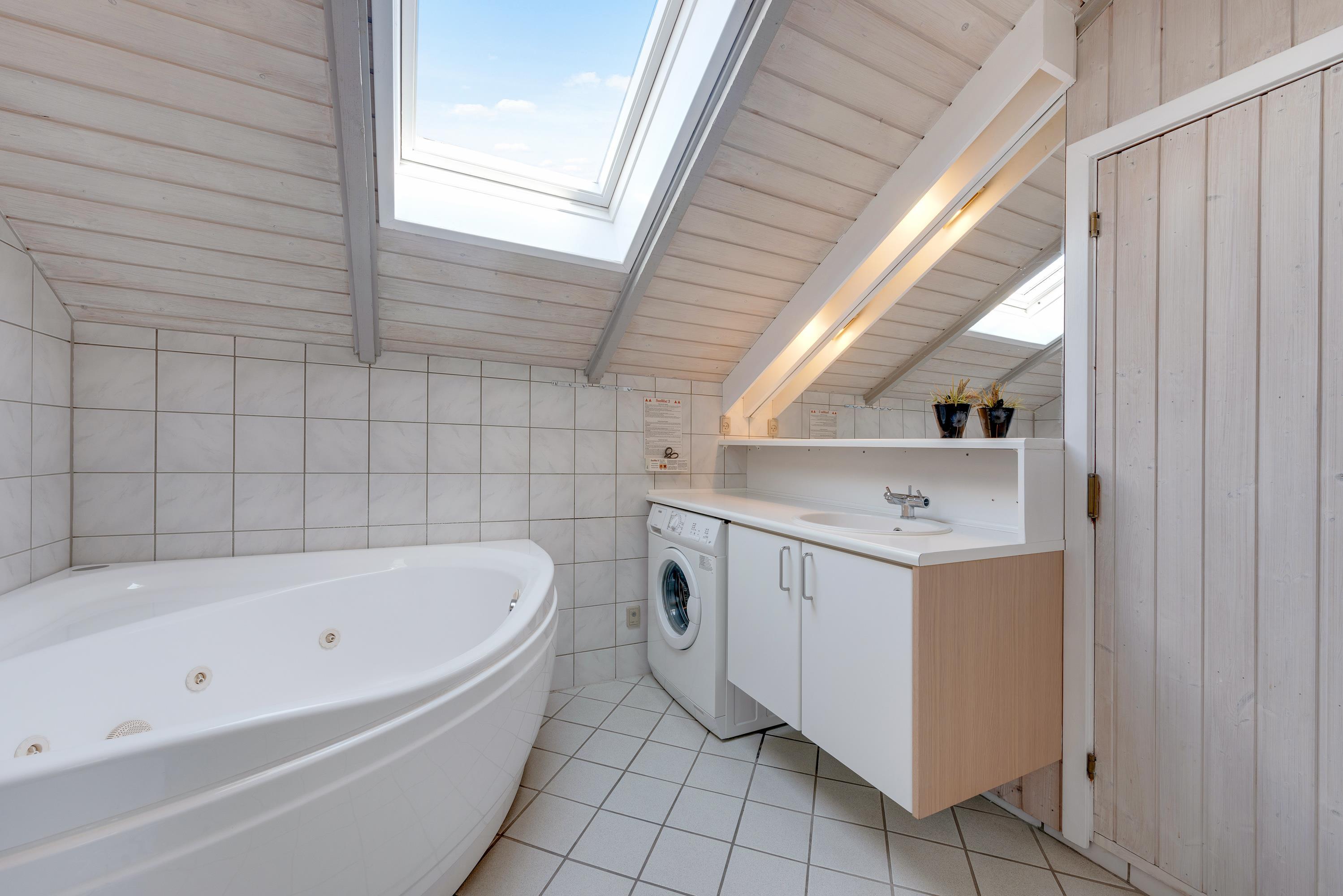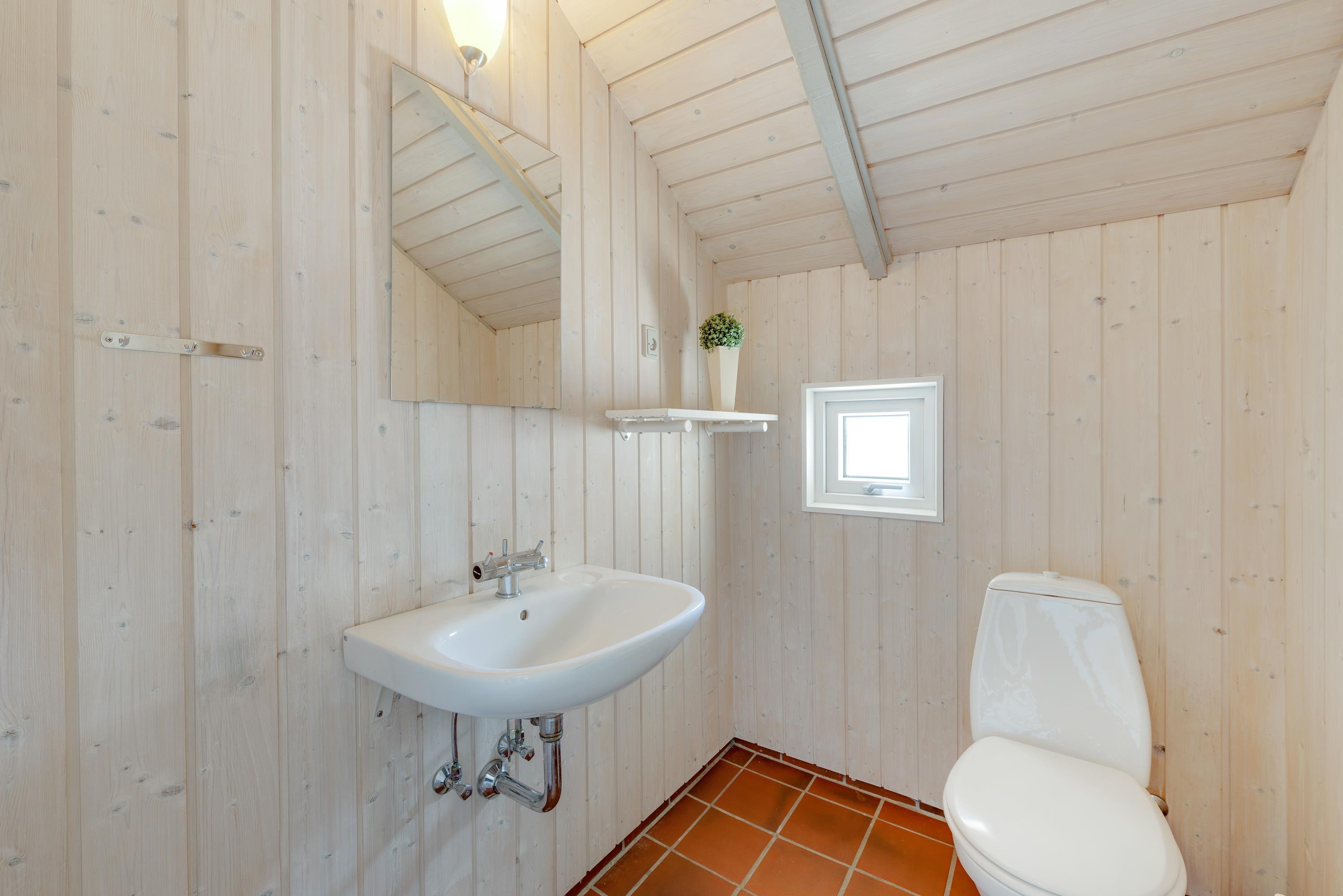 På sommerhusets badeværelse finder I både sauna og spabad, som I kan benytte jer af. Her er der lagt op til masser af afslapning og velvære efter en frisk gåtur ved havet. Sommerhuset har desuden et gæstetoilet.