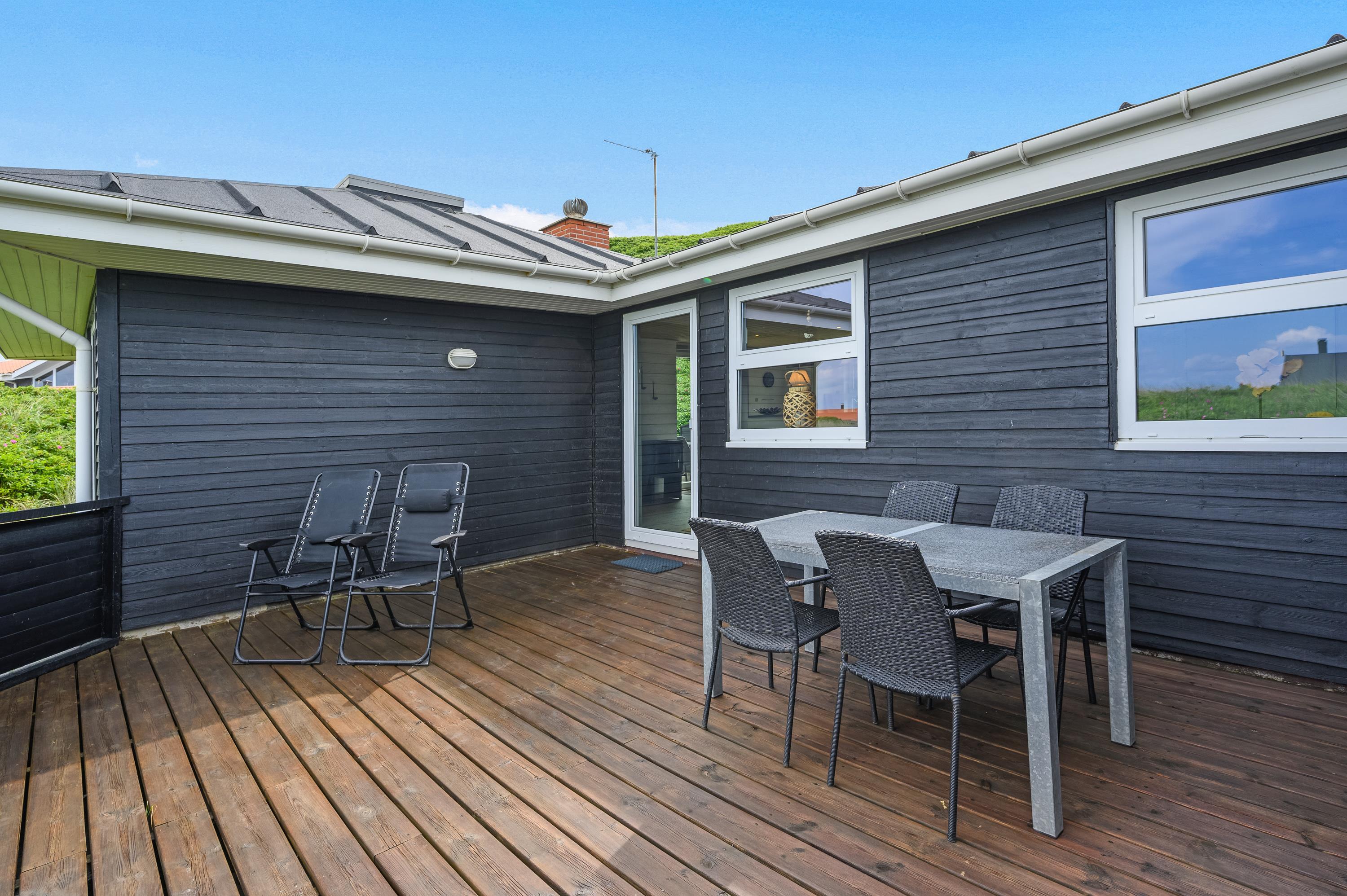 Fra sommerhusets terrasser kan I nyde lyden af de brusende bølger, som ligger lige på den anden side af klitterne. Morgenkaffen kan nydes på den østvendte, afskærmede terrasse, inden resten af familien vågner, og den syd- og vestvendte terrasse er et oplagt sted at spise et lækkert grillmåltid, mens solen går ned i baggrunden.