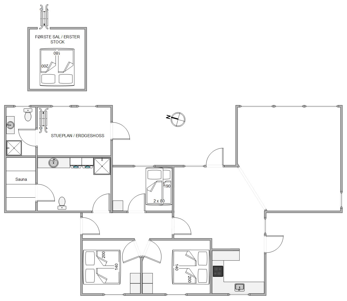 Sommerhuset har 3 gode soveværelser, hvoraf det ene er indrettet med en køjeseng. På de sidste 2 soveværelser finder I dobbeltsenge, hvor der kan samles ny energi til morgendagens aktiviteter. Som et ekstra plus er der også en hems, hvor I kan ligge og kigge på den beundringsværdige stjernehimmel inden sengetid. Hemsen ligger i en afdeling for sig selv, så familiens børn og teenagere kan slappe af uden at blive forstyrret.