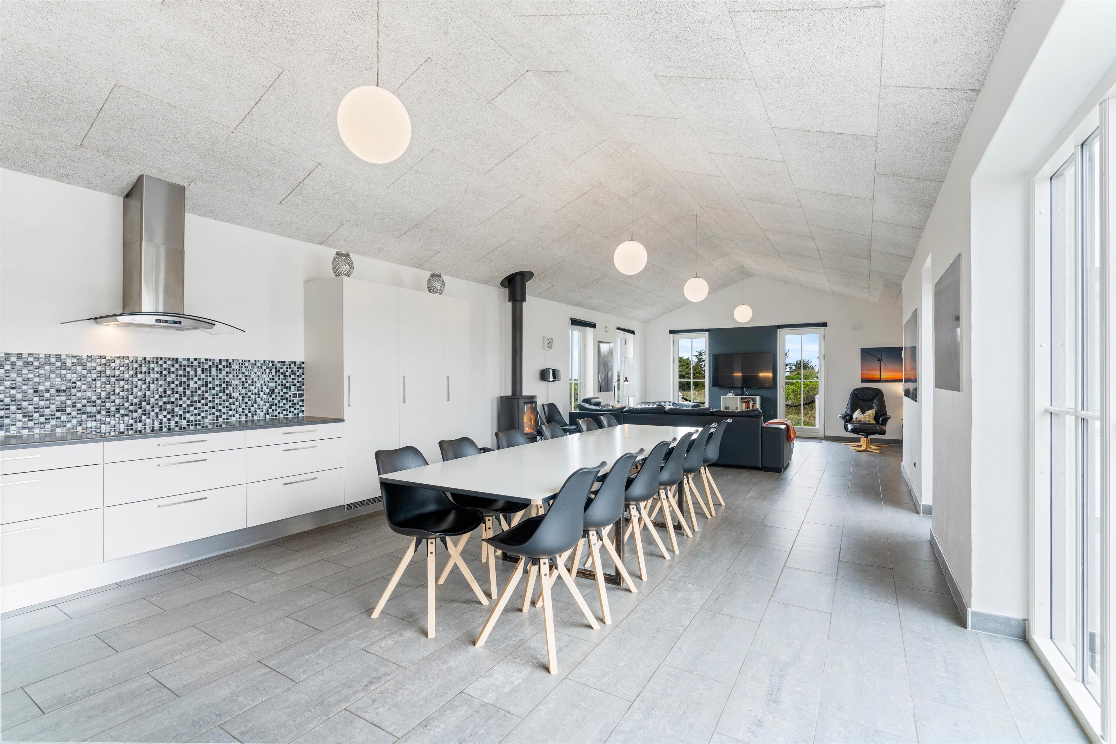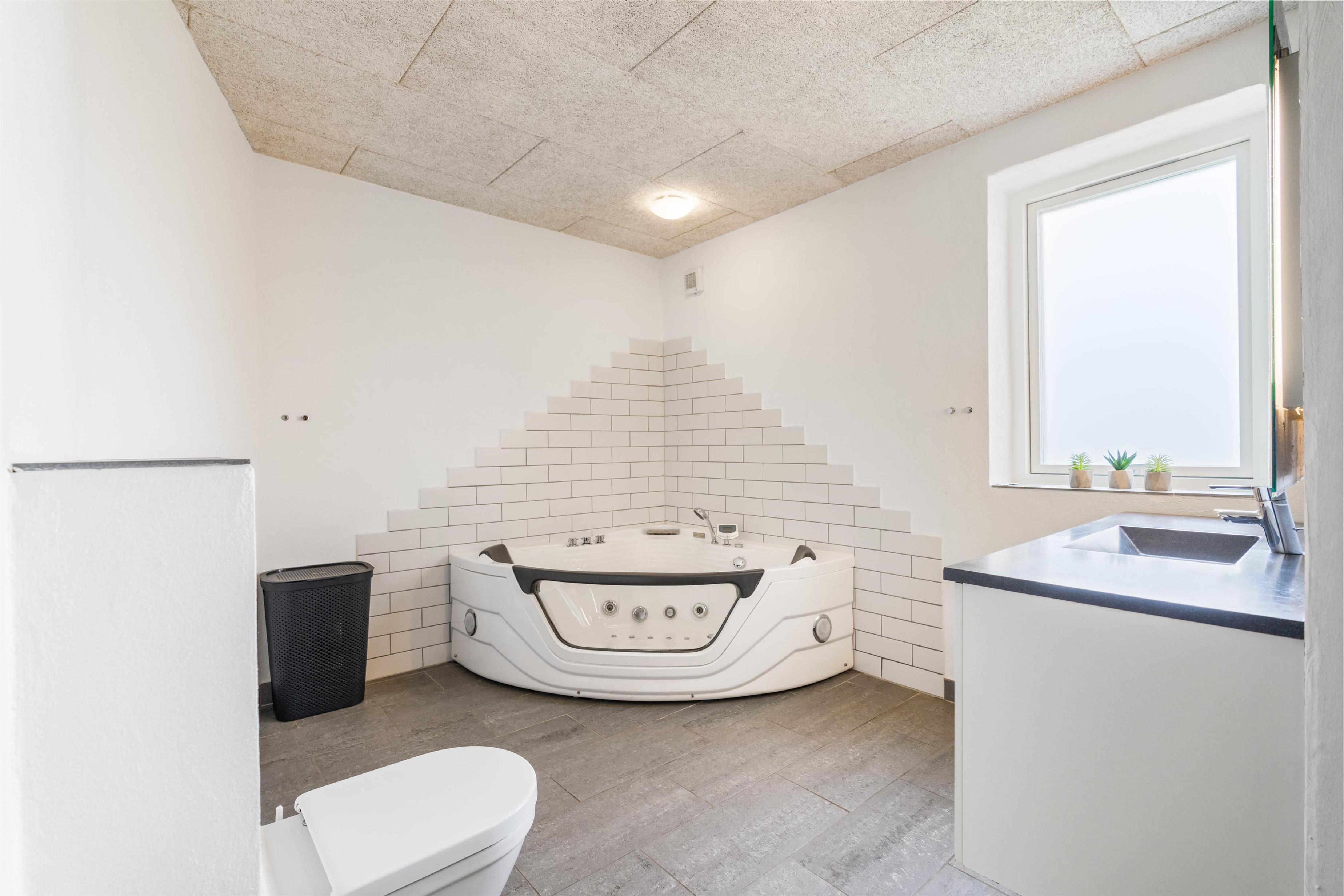 Feriehuset er desuden velegnet til op til 12 personer; perfekt hvis I er flere familier eller bare én stor, hvor der også skal være plads til bedstemor og bedstefar. Alt er flot og moderne indrettet, i soverummene er der god plads, køkkenet er åbnet og veludstyret, og der er ikke mindre en tre badeværelser, hvoraf det ene er med både spabad og sauna. Så her kan du nyde mange afslappende stunder og tanke ny energi til hverdagen.