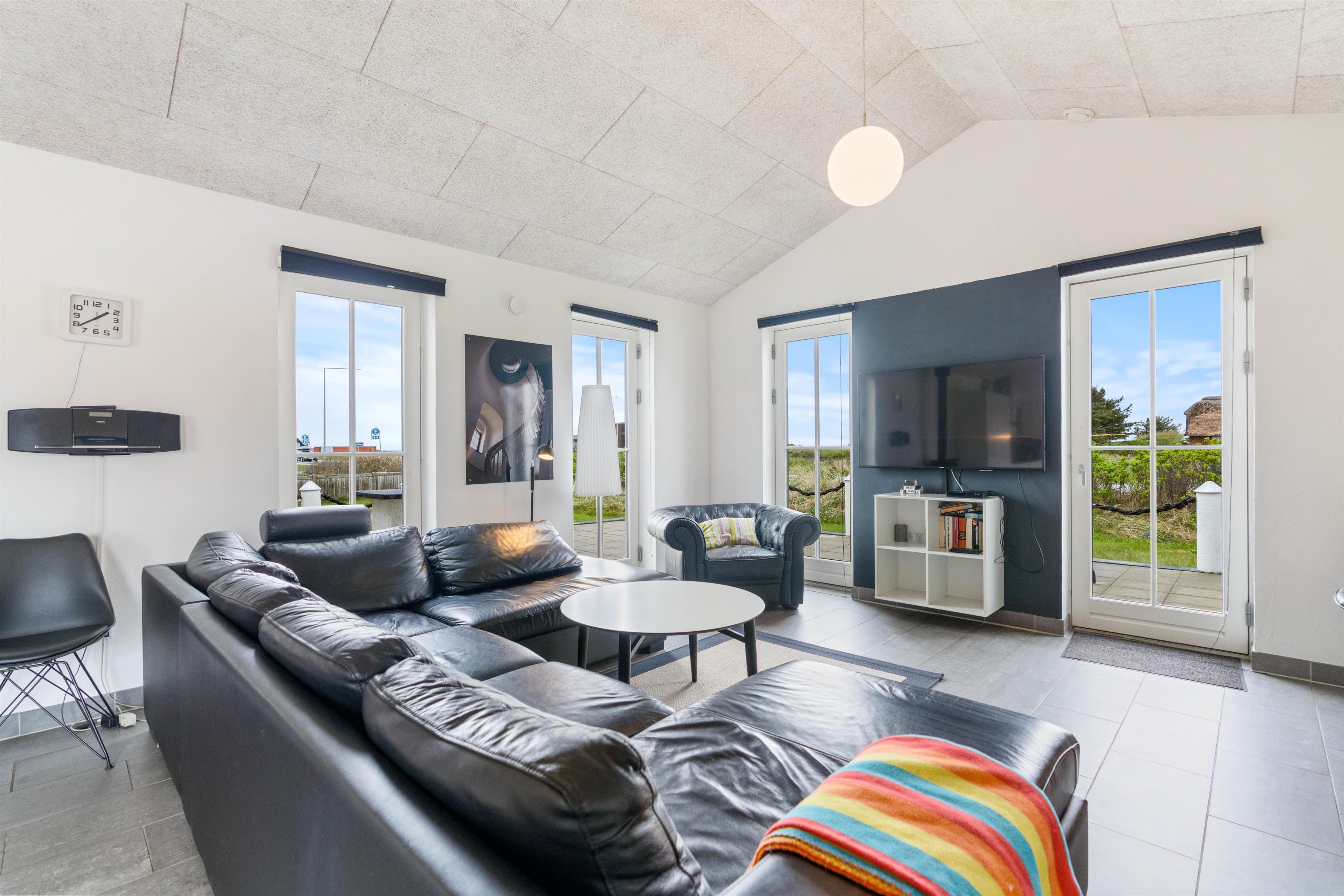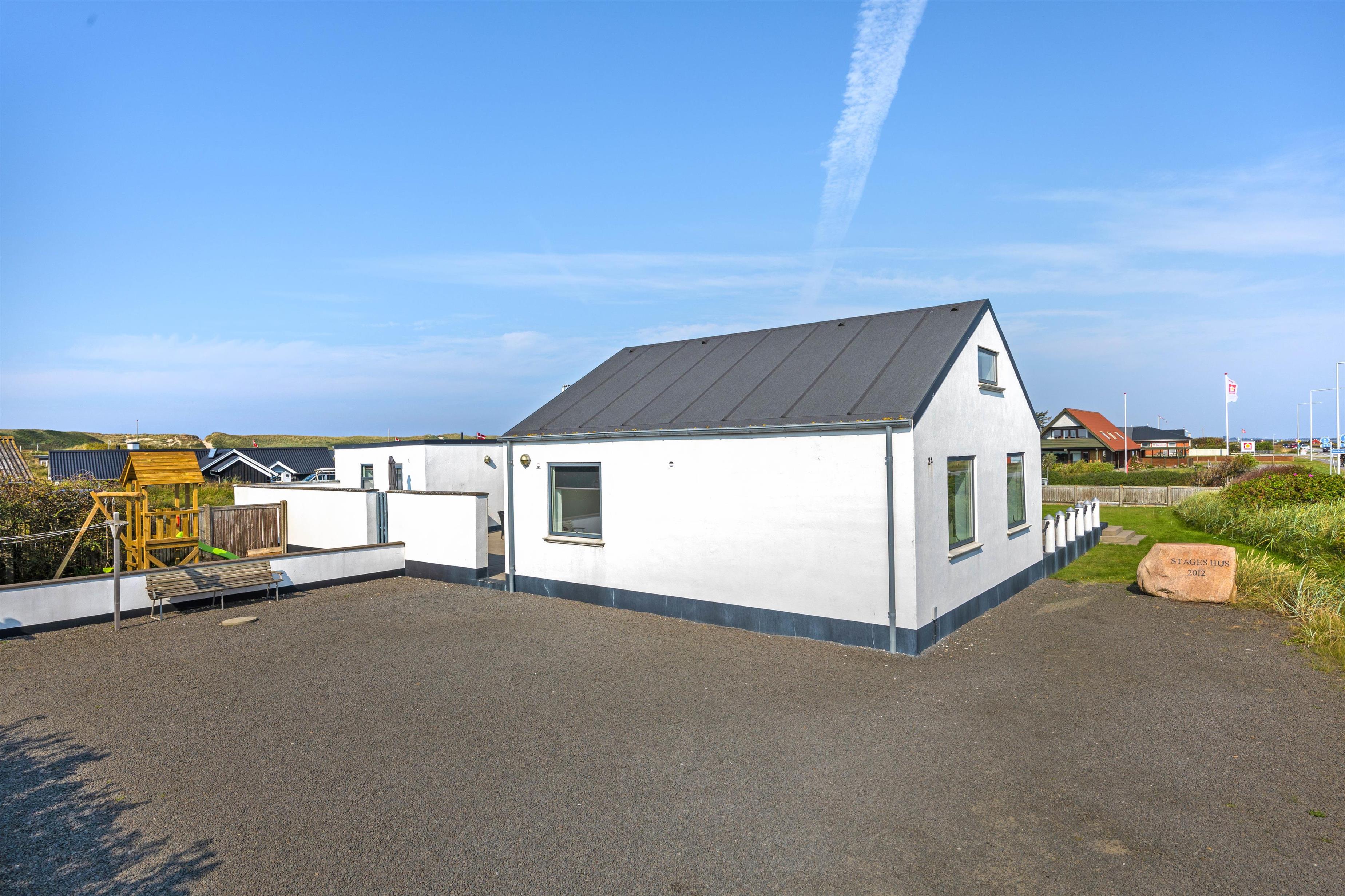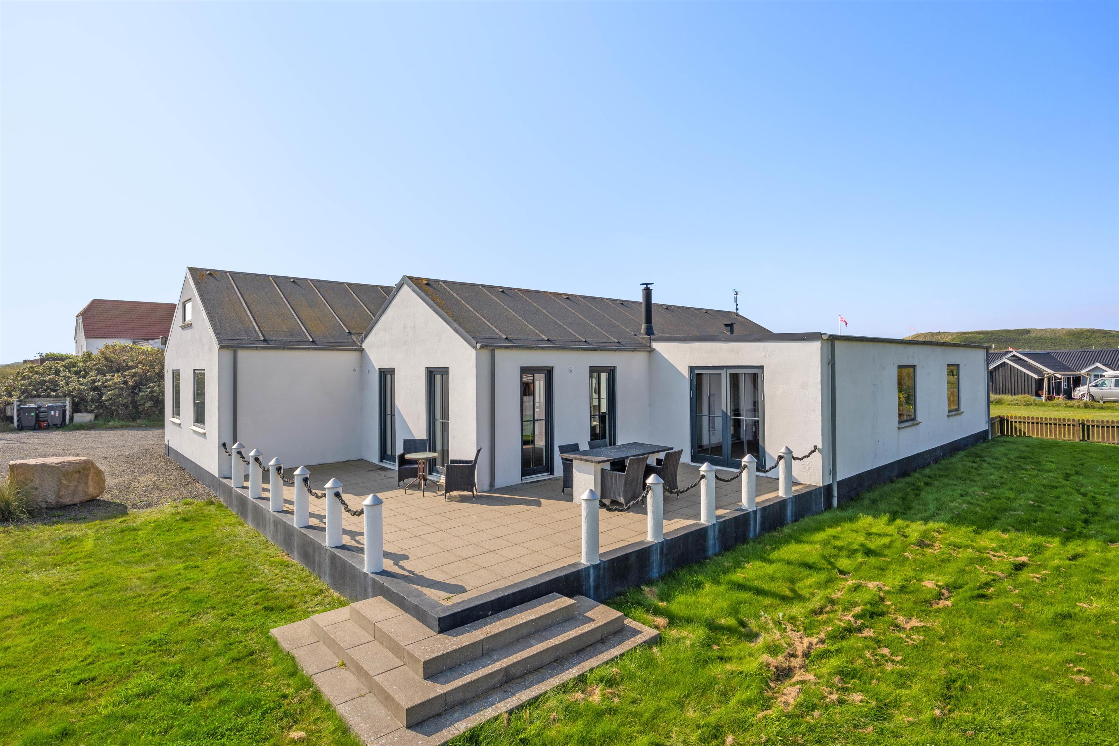 Lækkert feriehus med plads til den store familie. Her er alt, hvad man kan ønske sig på en dejlig ferie. Udenfor har du en stor lukket solgård til hyggelige grillmiddage og en græsplæne til boldspil og leg. Indenfor har du et skønt aktivitetsrum og en yderst smagfuld indretning.