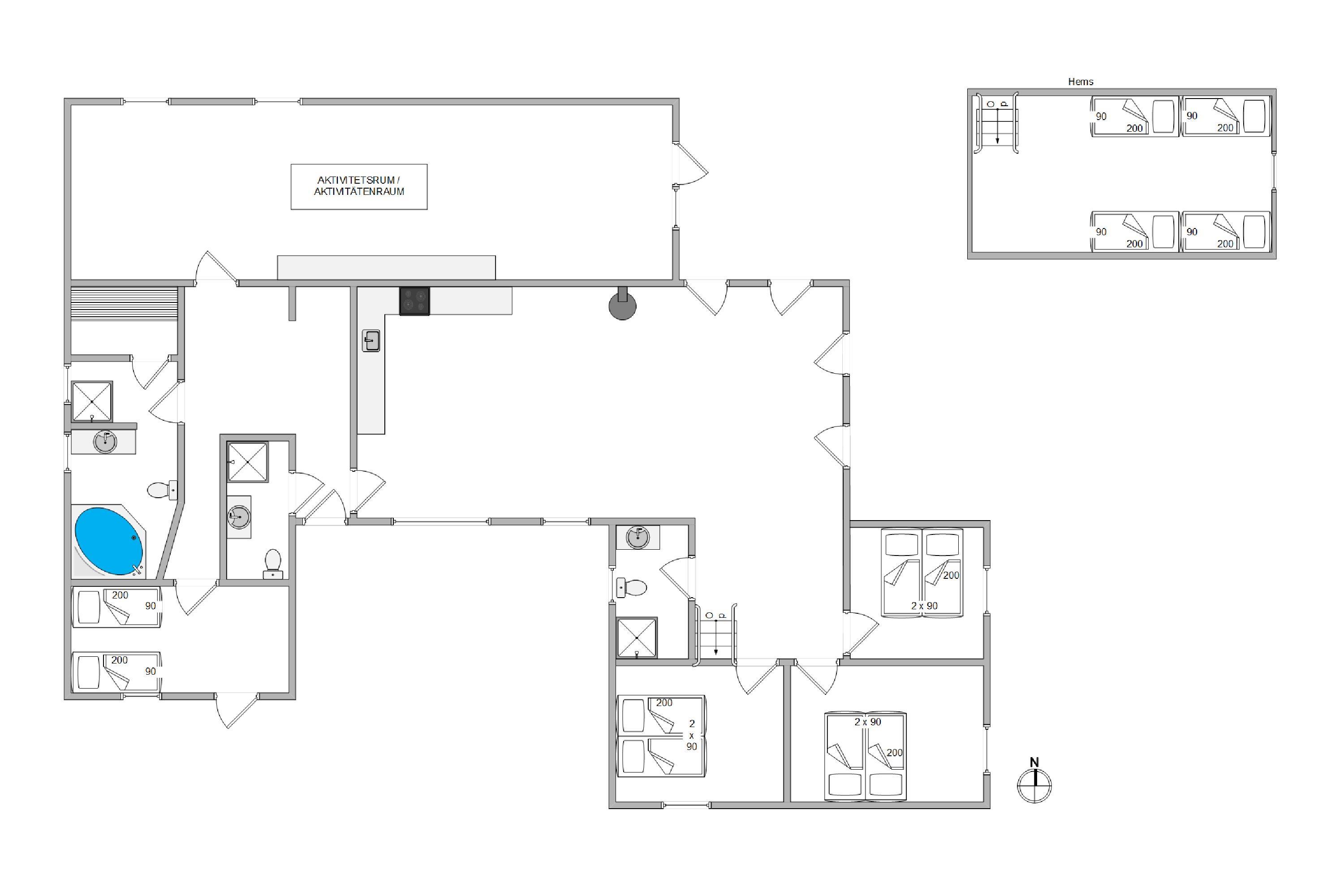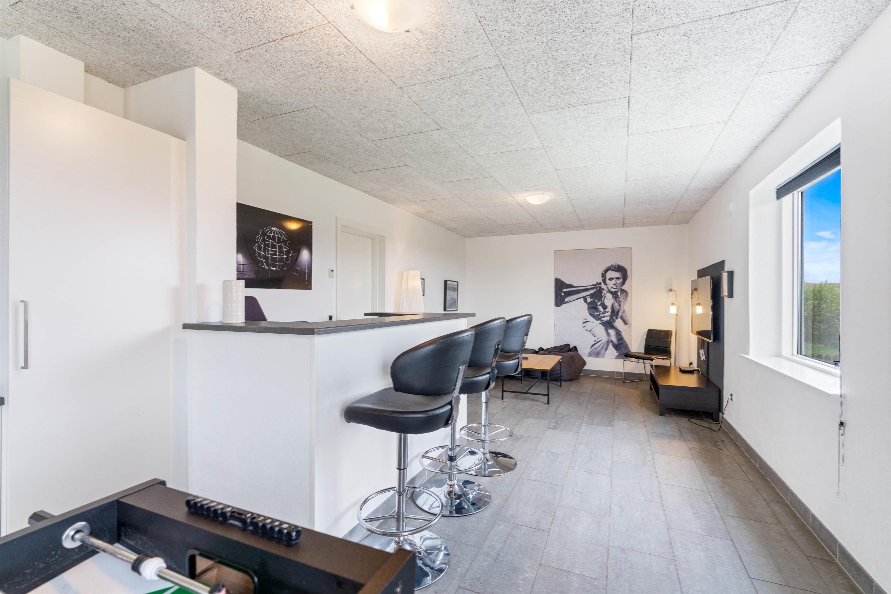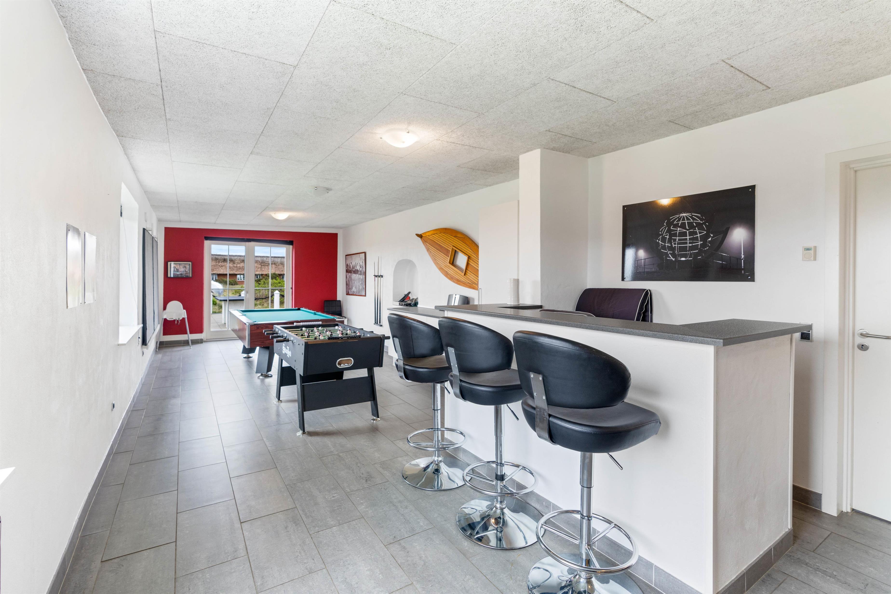 Her får du et skønt feriehus, som er indrettet med omtanke for, hvordan du får den bedst mulige ferieoplevelse. Der er f.eks. indrettet et stor aktivitetsrum med både bordfodbold, billardbord, bordtennis og en hyggekrog med fjernsyn. Så bliver ferien aldrig kedelig – heller ikke når det regner.