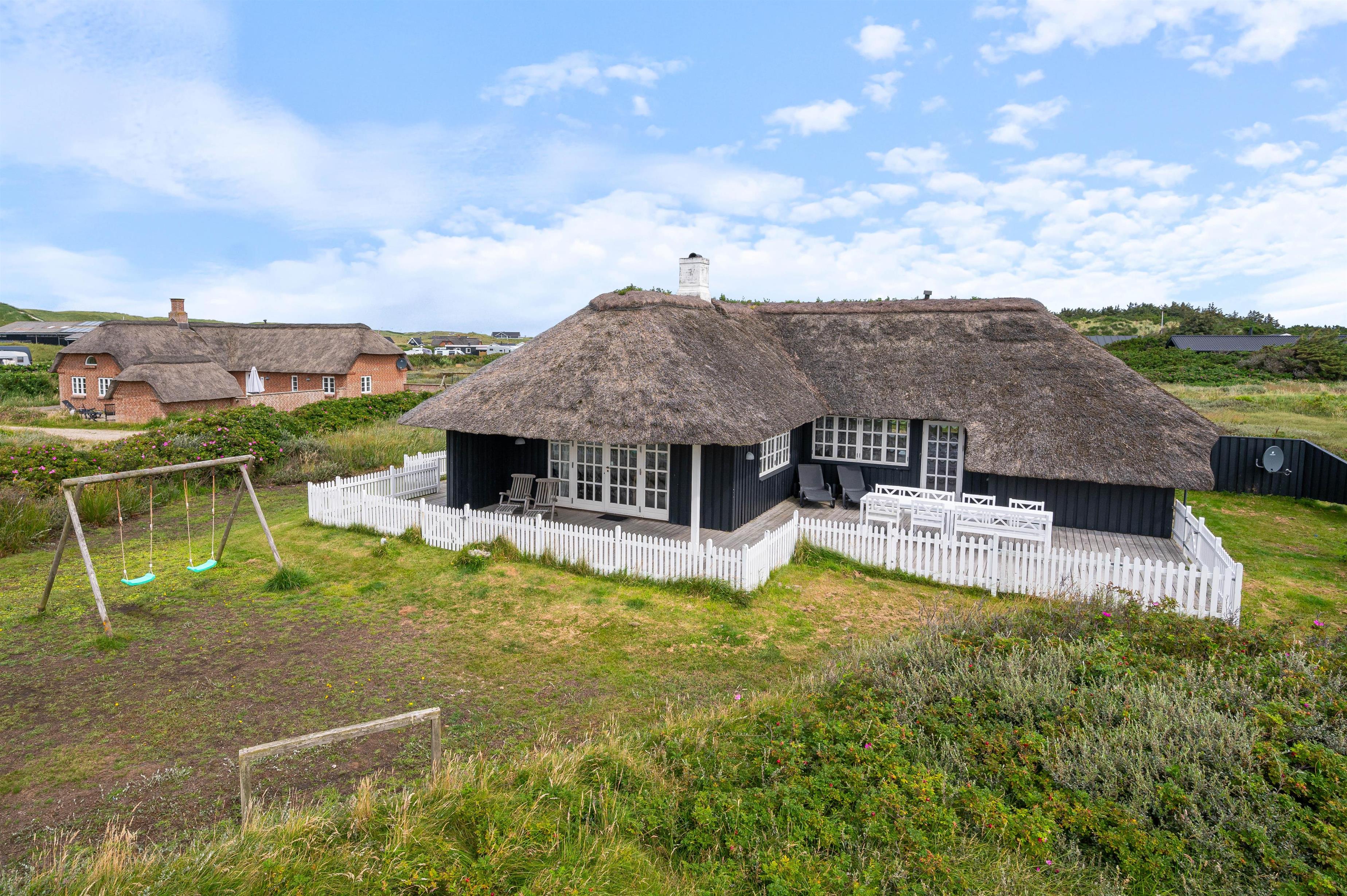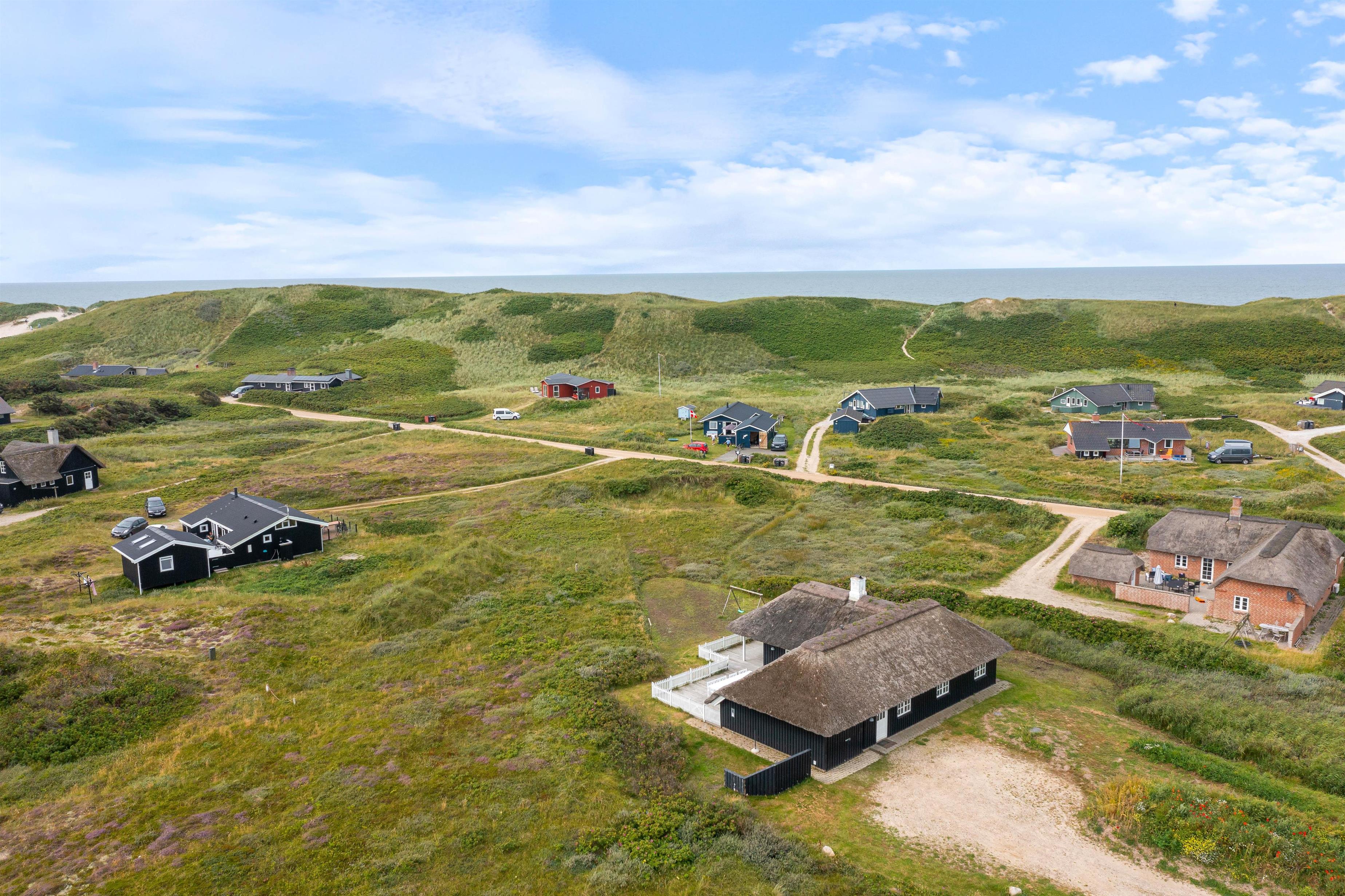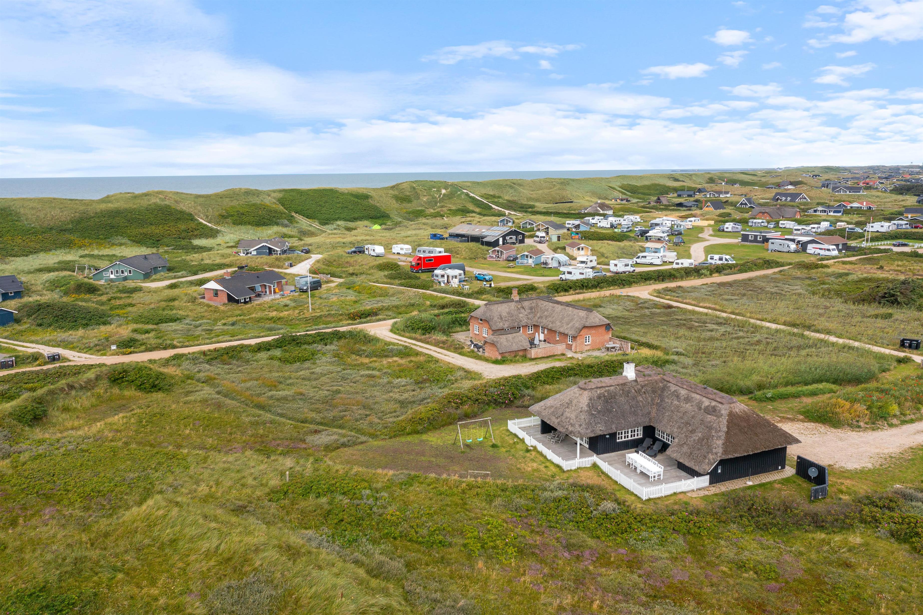 I det skønne sommerhusområde Årgab møder i det charmerende sommerhus med stråtag på Tingodden 228. Huset blev renoveret i 2022, men har altså stadig bevaret charmen og den hyggelig sommerhusstemning. Huset er placeret på en skøn naturgrund 200 meter fra havet, hvor i også vil finde en dejlig udsigt til klitterne mod vest. Her er der en hyggelig indretning med masser plads til 6 personer og 2 hunde.