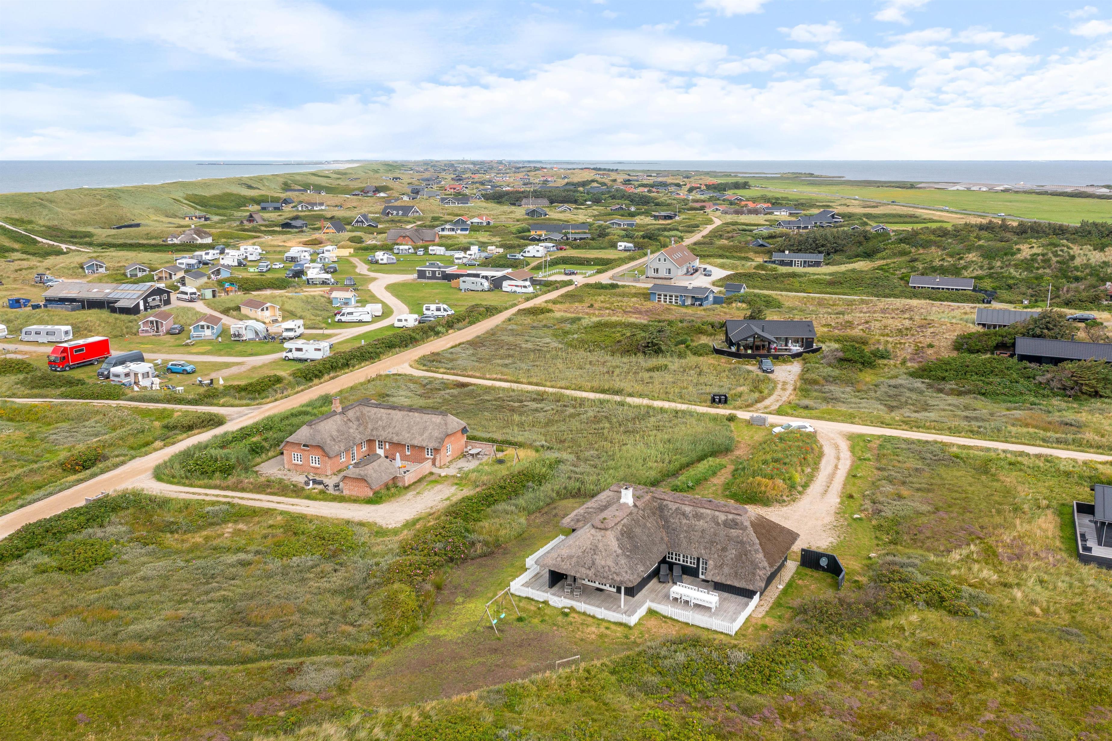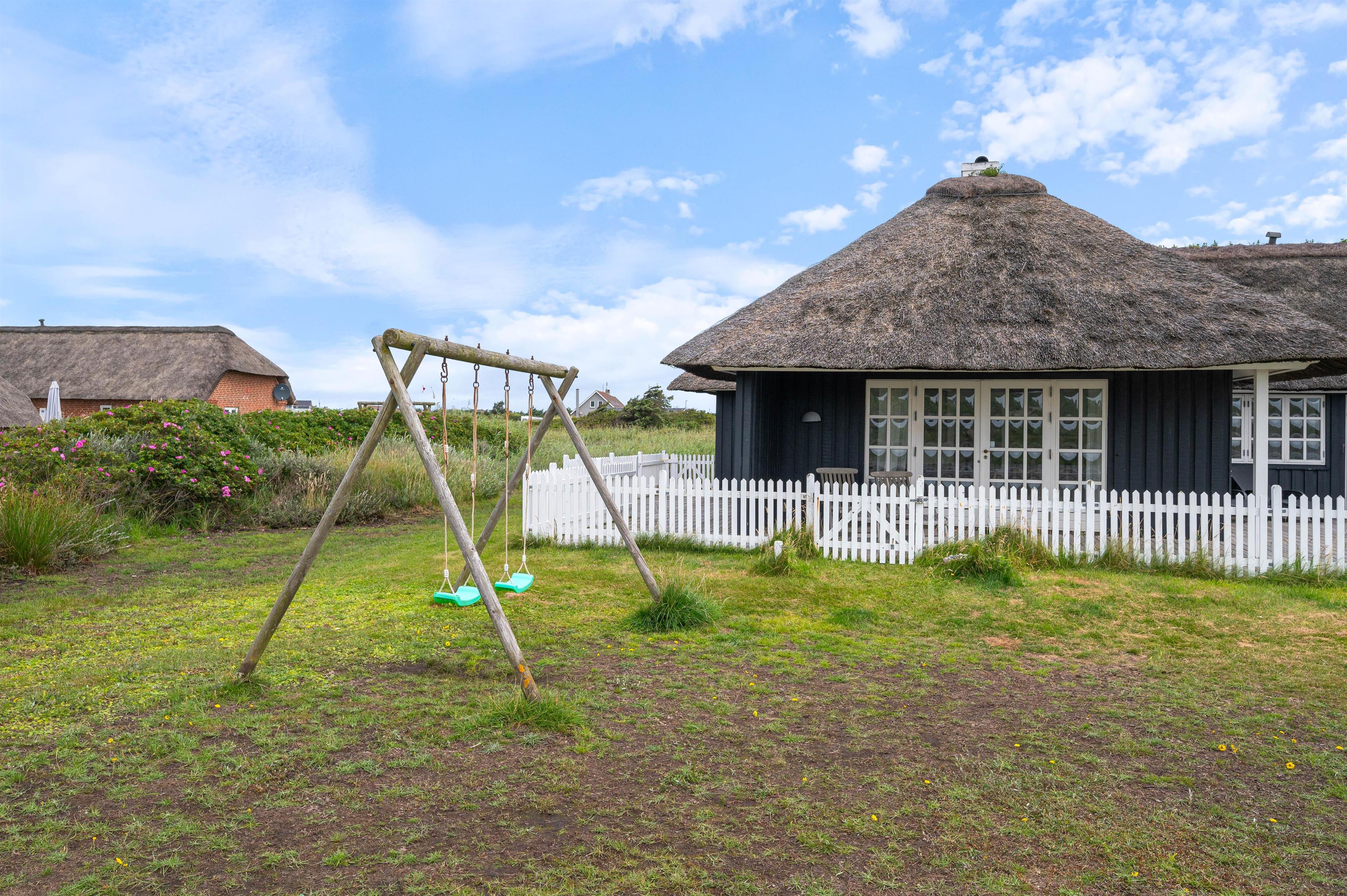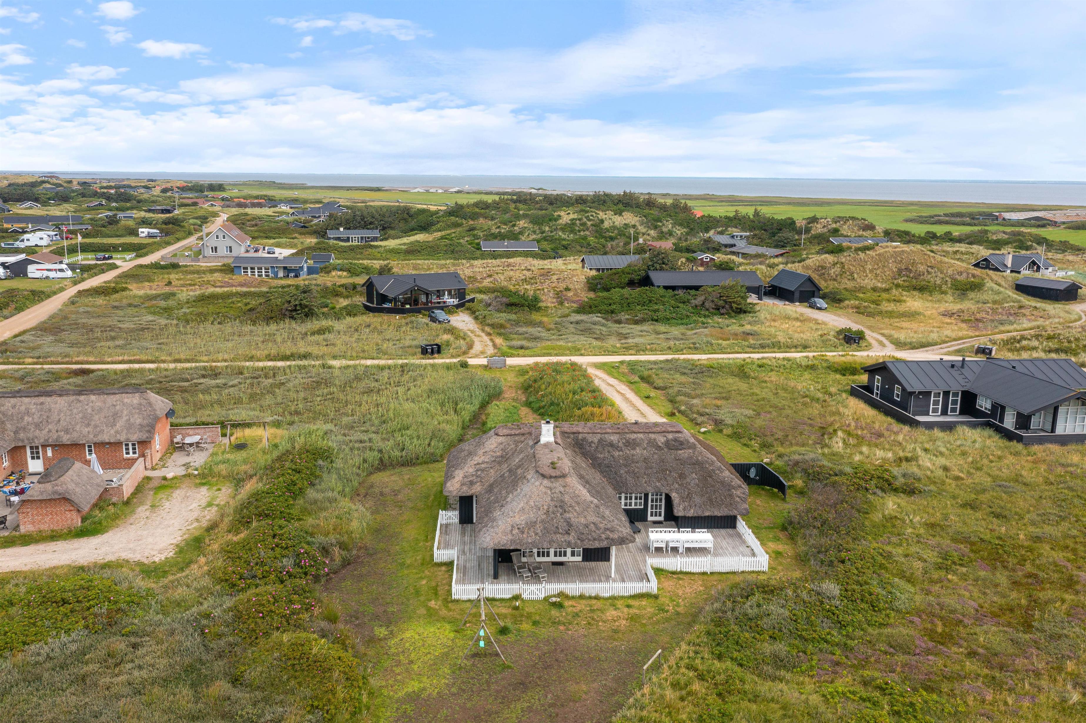 I det skønne sommerhusområde Årgab møder i det charmerende sommerhus med stråtag på Tingodden 228. Huset blev renoveret i 2022, men har altså stadig bevaret charmen og den hyggelig sommerhusstemning. Huset er placeret på en skøn naturgrund 200 meter fra havet, hvor i også vil finde en dejlig udsigt til klitterne mod vest. Her er der en hyggelig indretning med masser plads til 6 personer og 2 hunde.