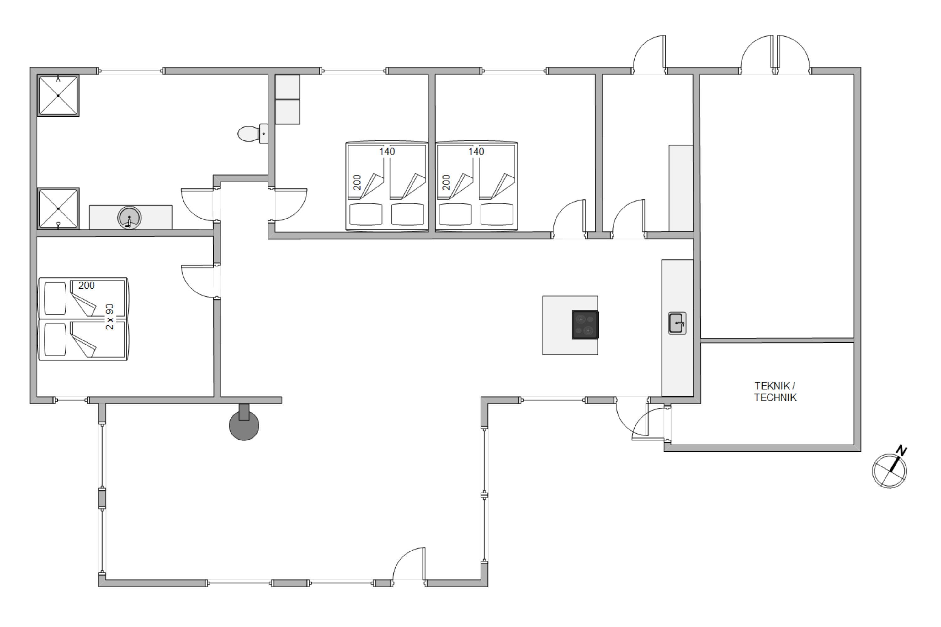I sommerhuset finder i et stort og lækkert badeværelse med en stor brusekabine og gulvvarme. Derudover er der 3 lyse og komfortable soveværelser i huset, hvoraf alle værelserne har dobbeltseng, så i kan nyde en god nats søvn.