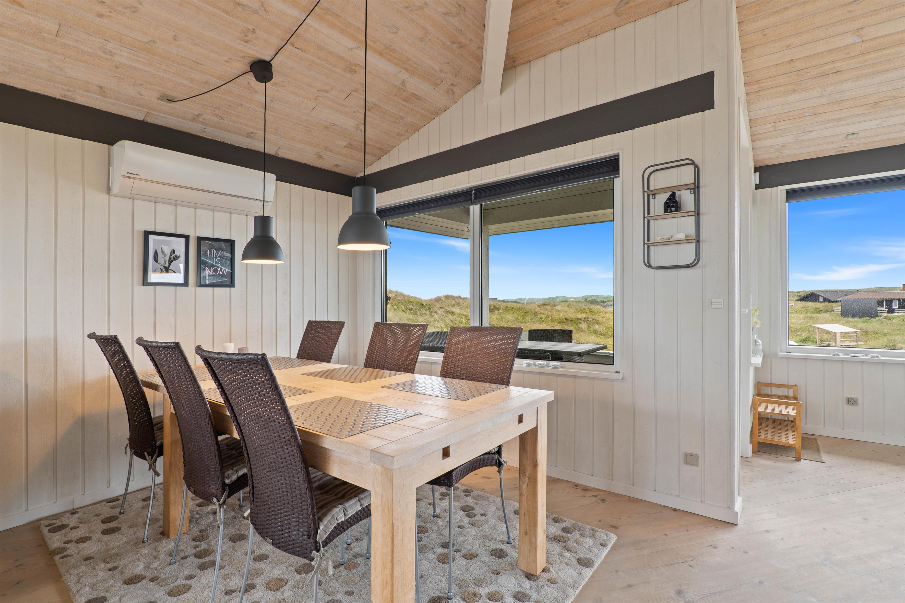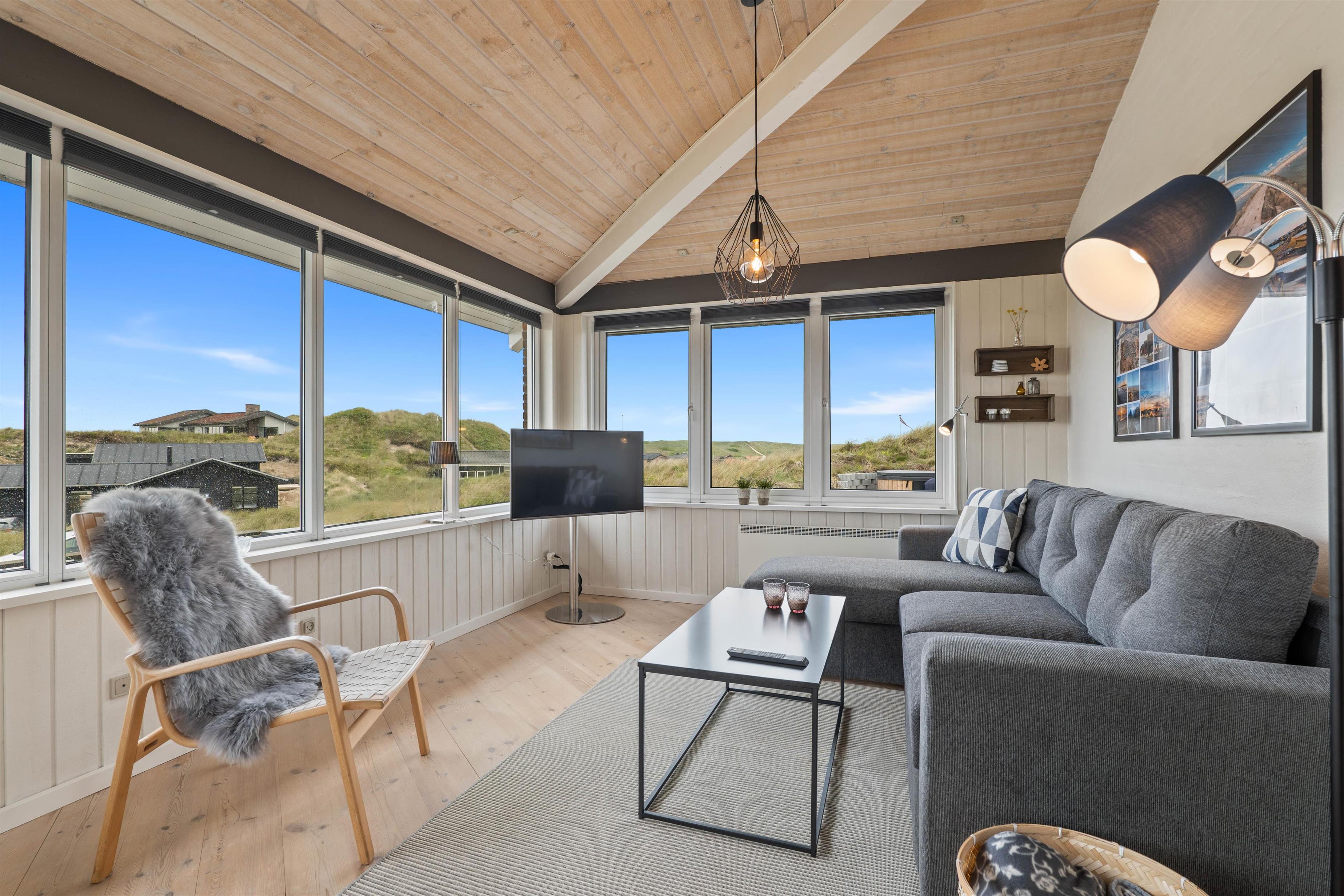 Sommerhuset har en dejlig lys og moderne indretning, som indbyder til ægte hygge og familietid i en af de to stuer. De to lækre badeværelser inklusiv rummeligt bad gør også, at I undgår morgenstress og kø til toilettet til enhver tid.