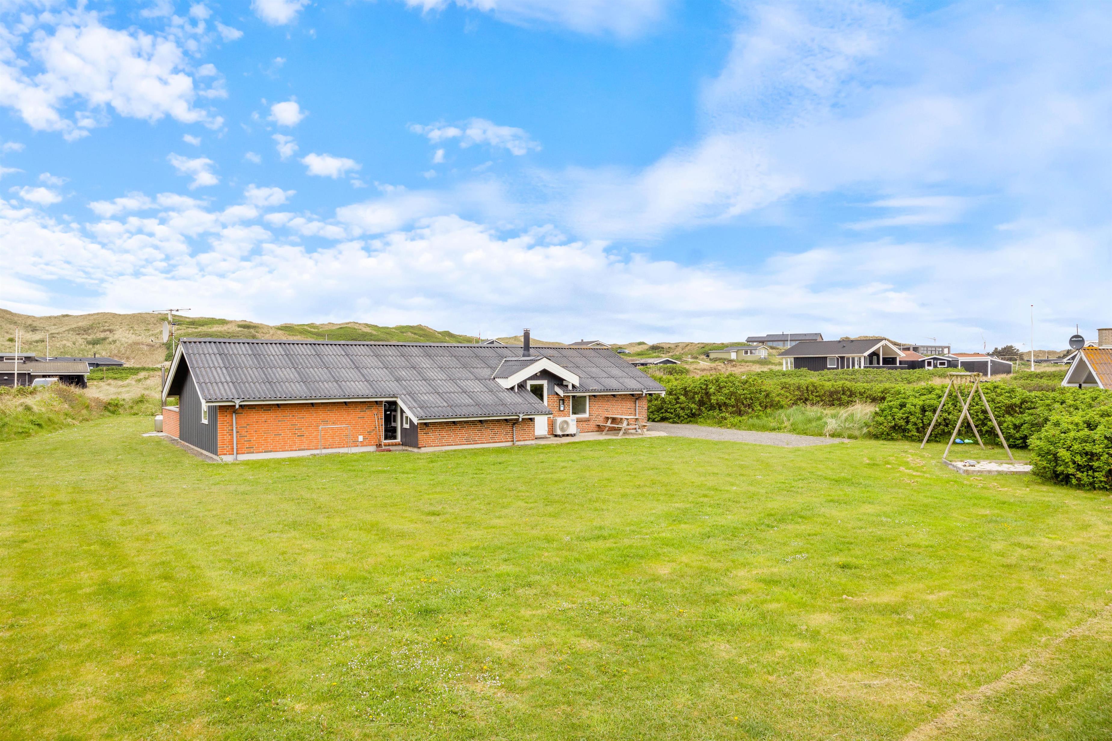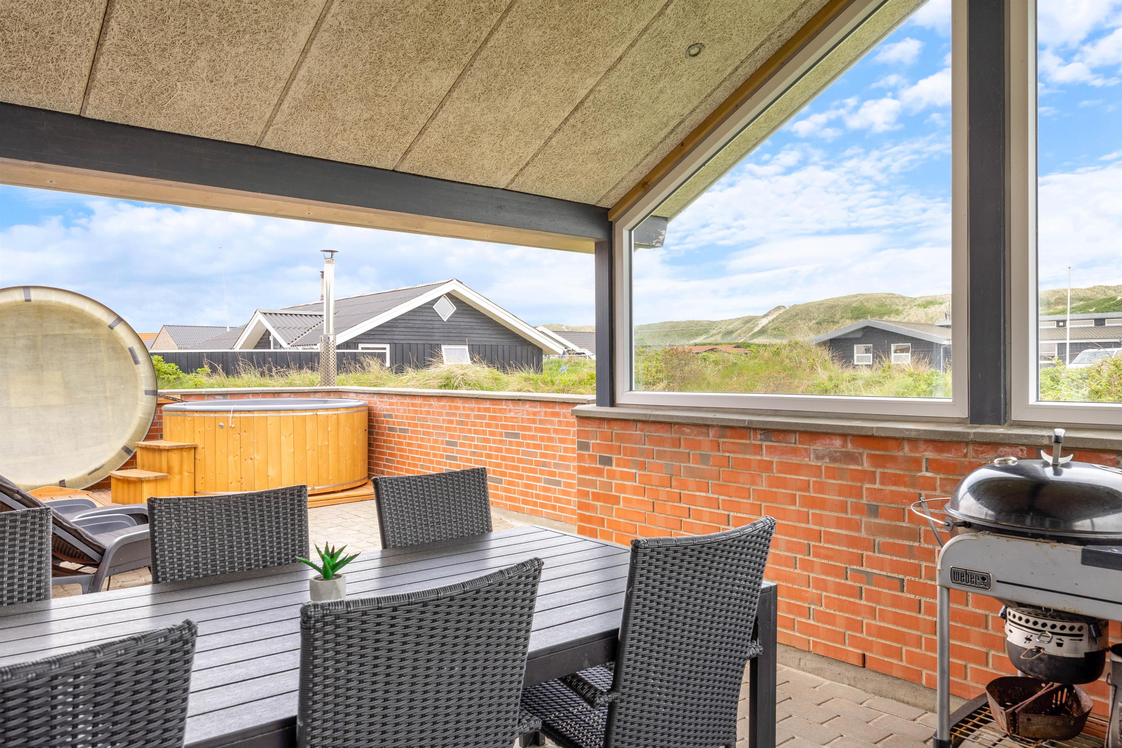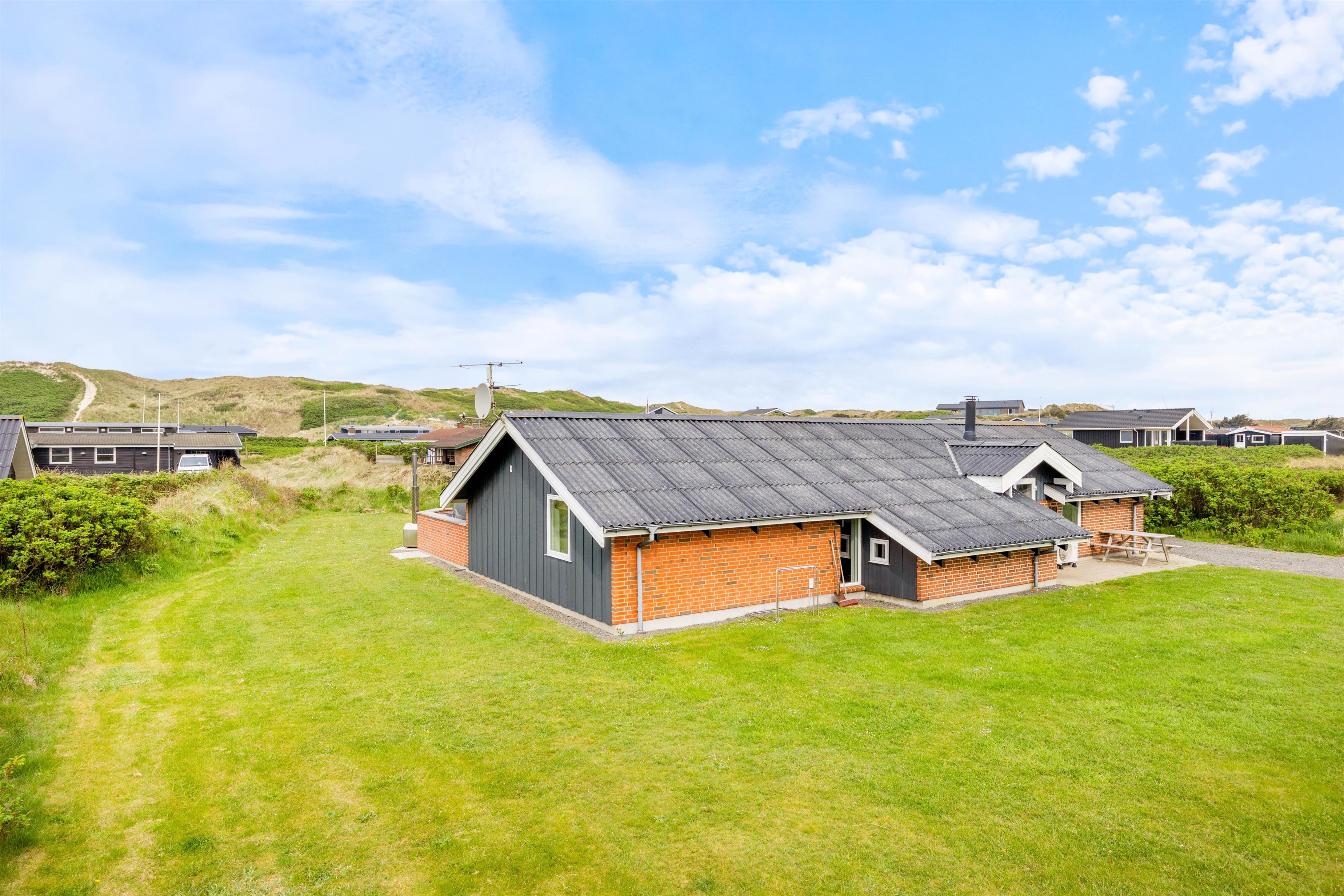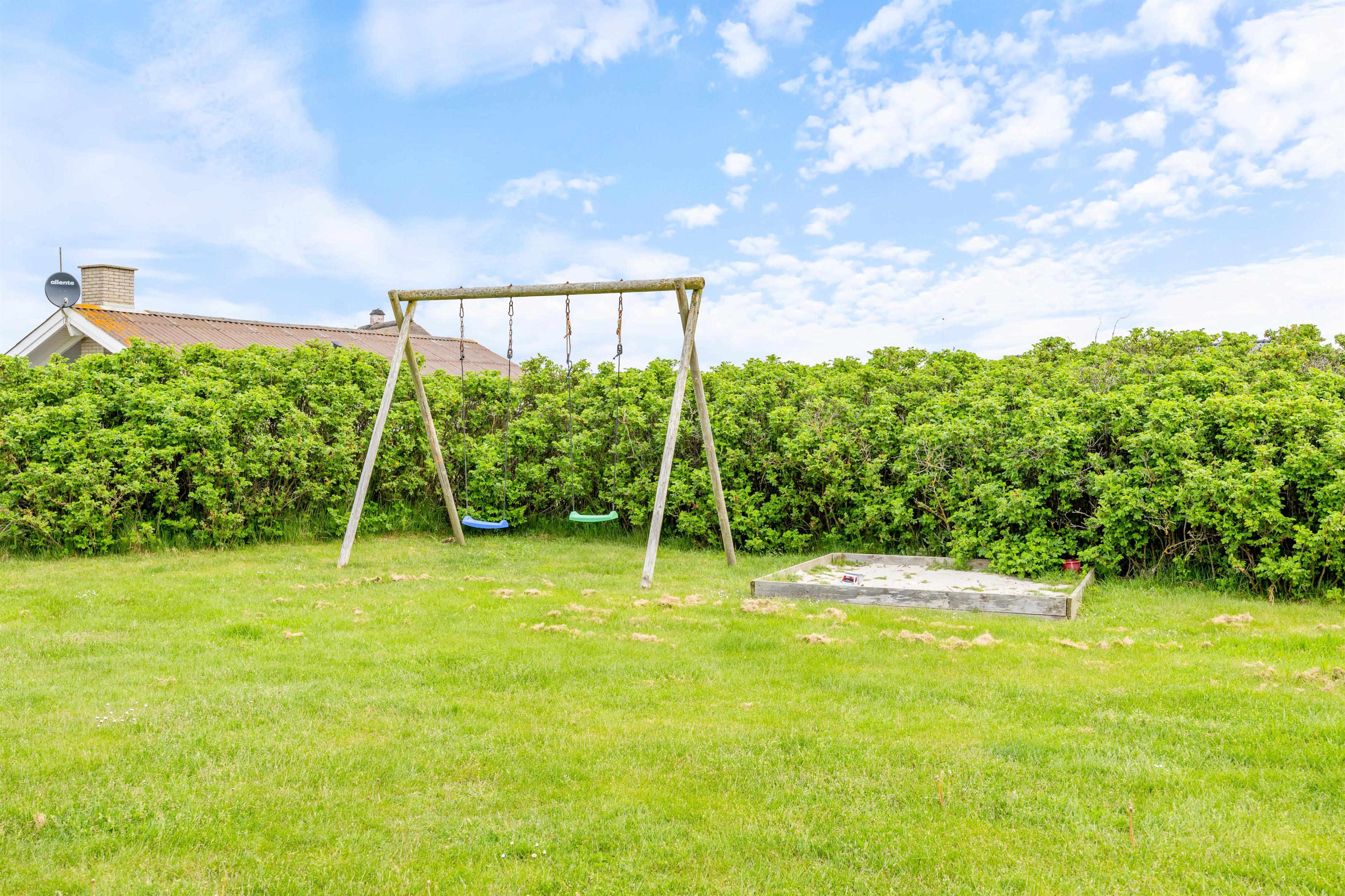 Feriehuset har en god lukket terrasse, hvor den ene del er overdækket. Derfor er terrassen anvendelig langt det meste af året, da der er god afskærmning og ly. Så tænd op i grillen og nyd udsigten til klitterne, mens børnene leger på den store plænegrund med gynger og sandkasse.