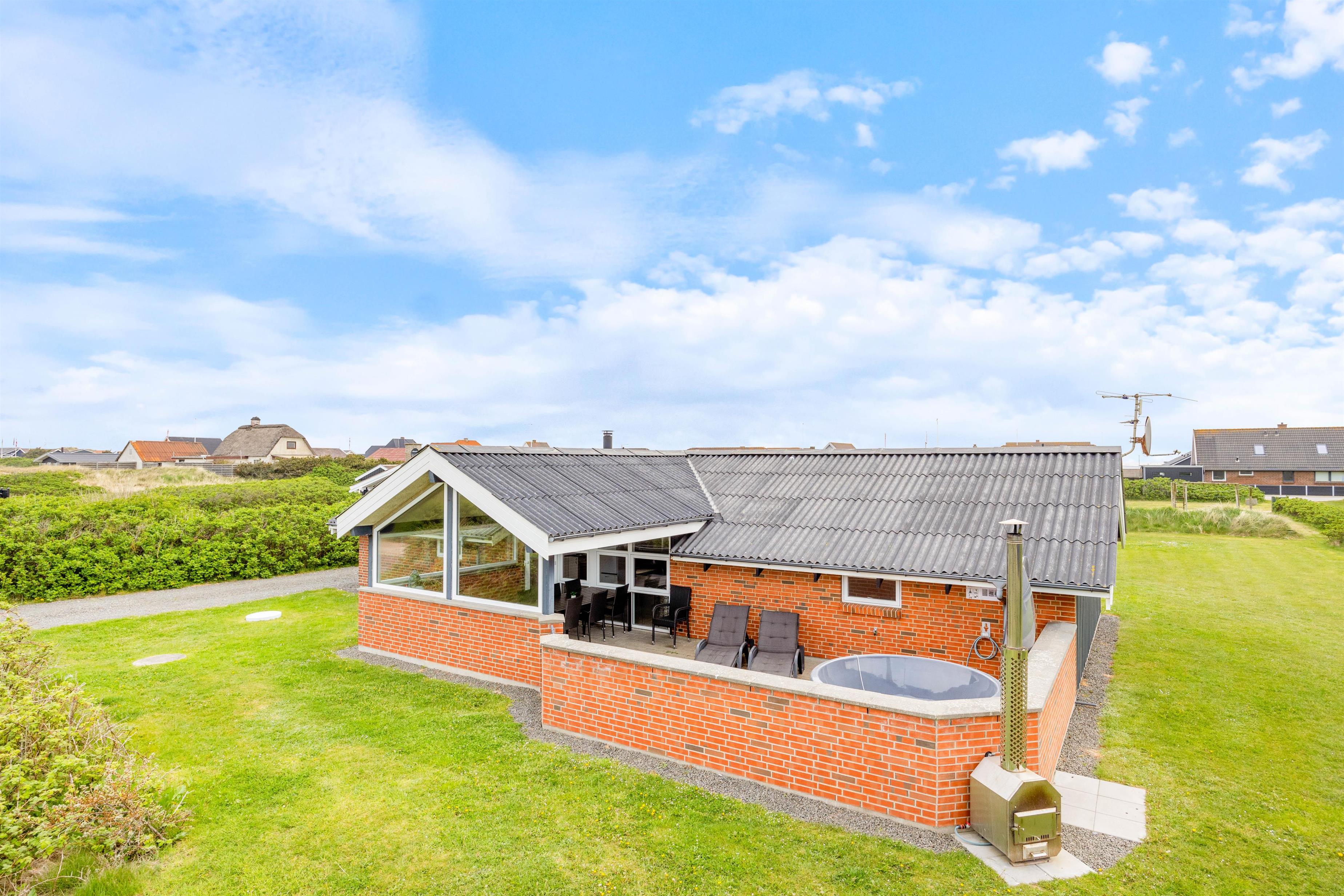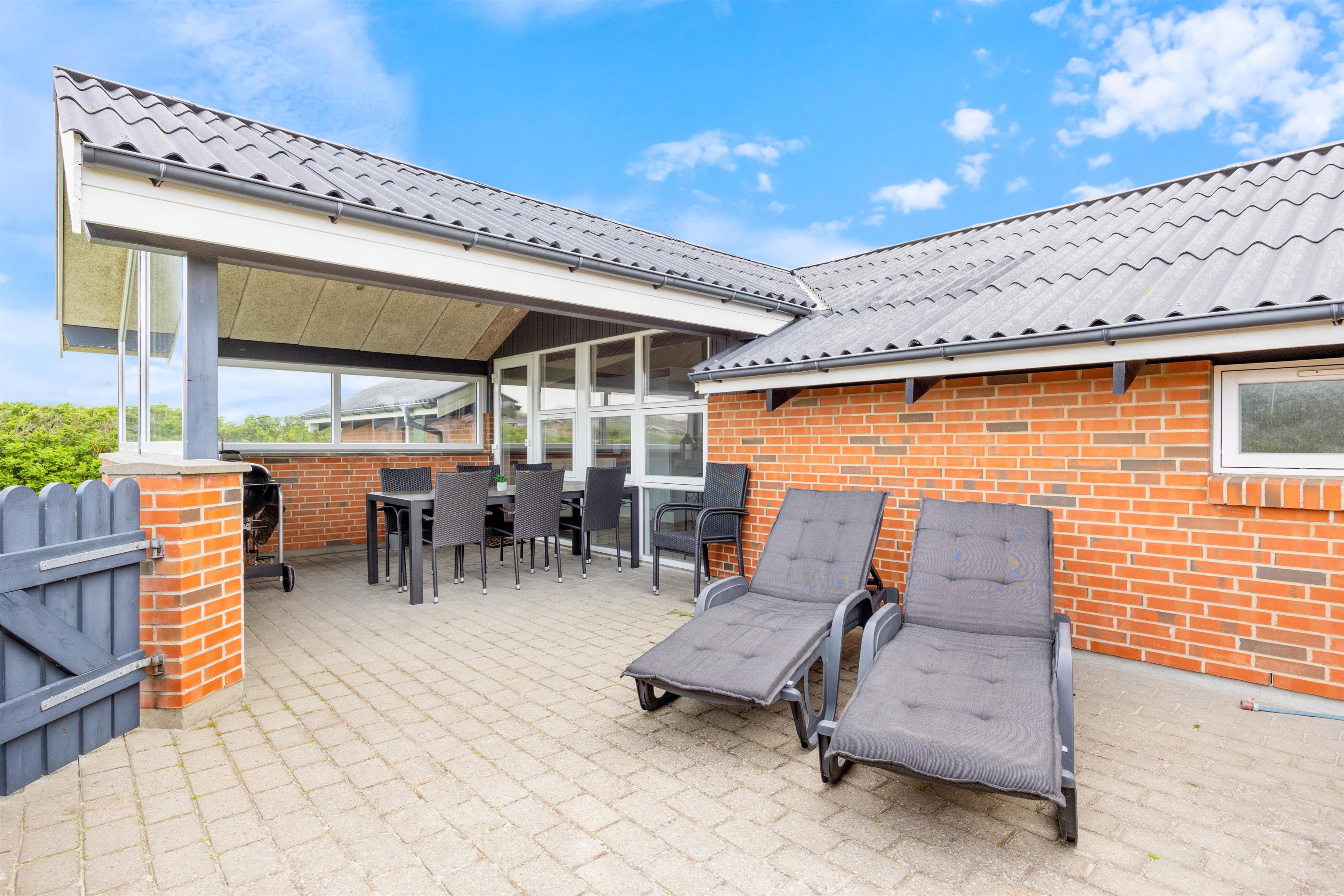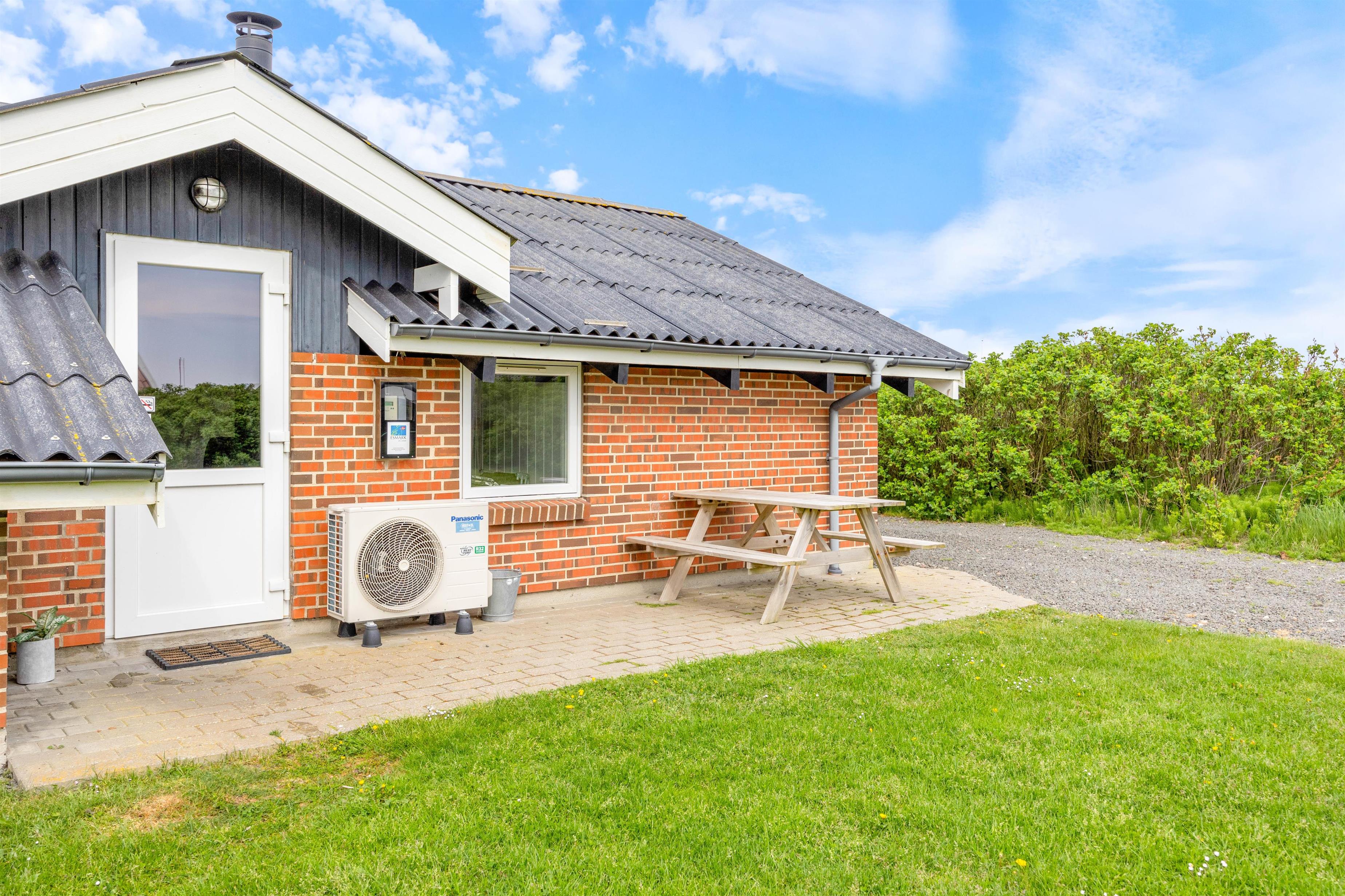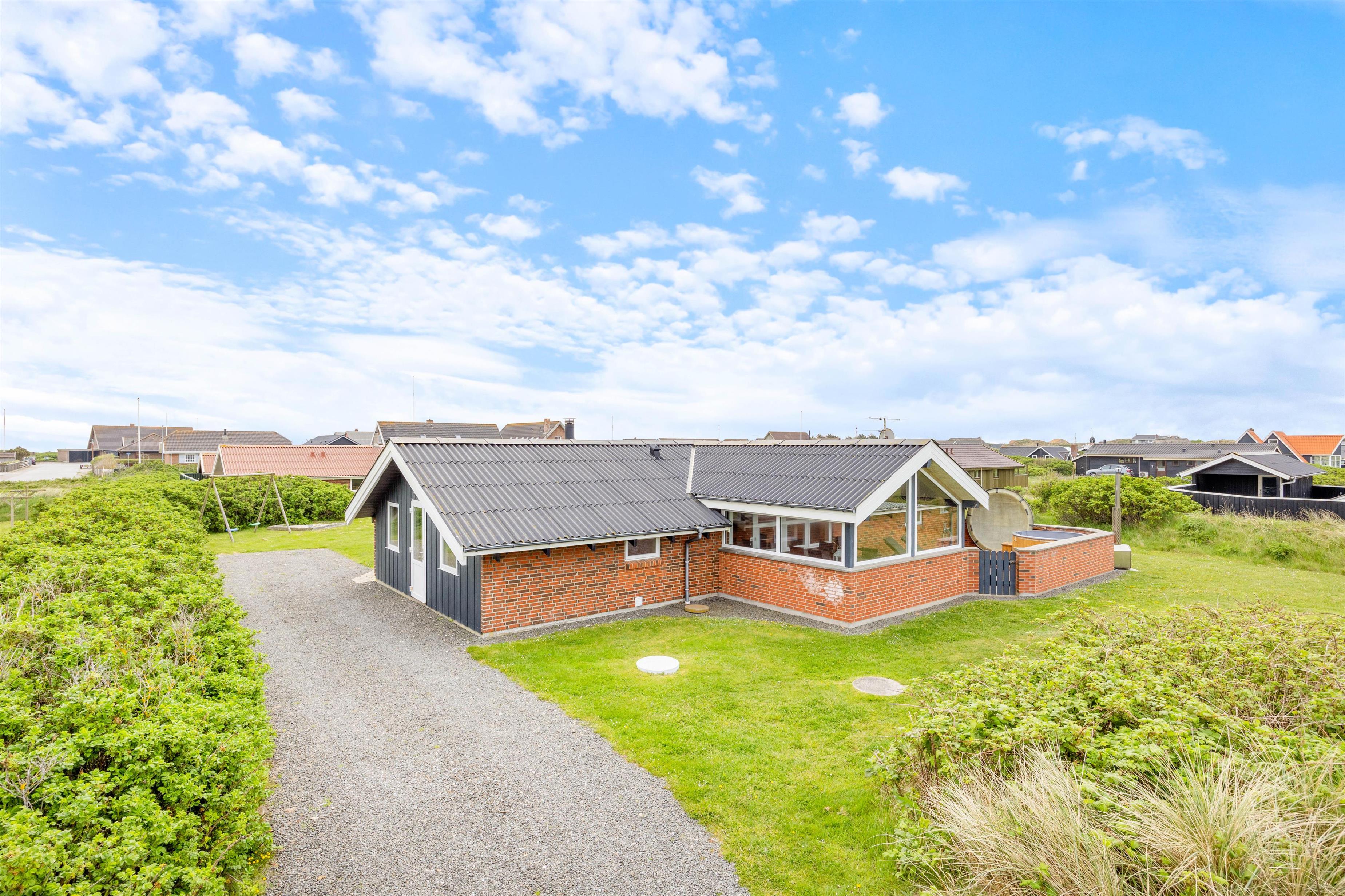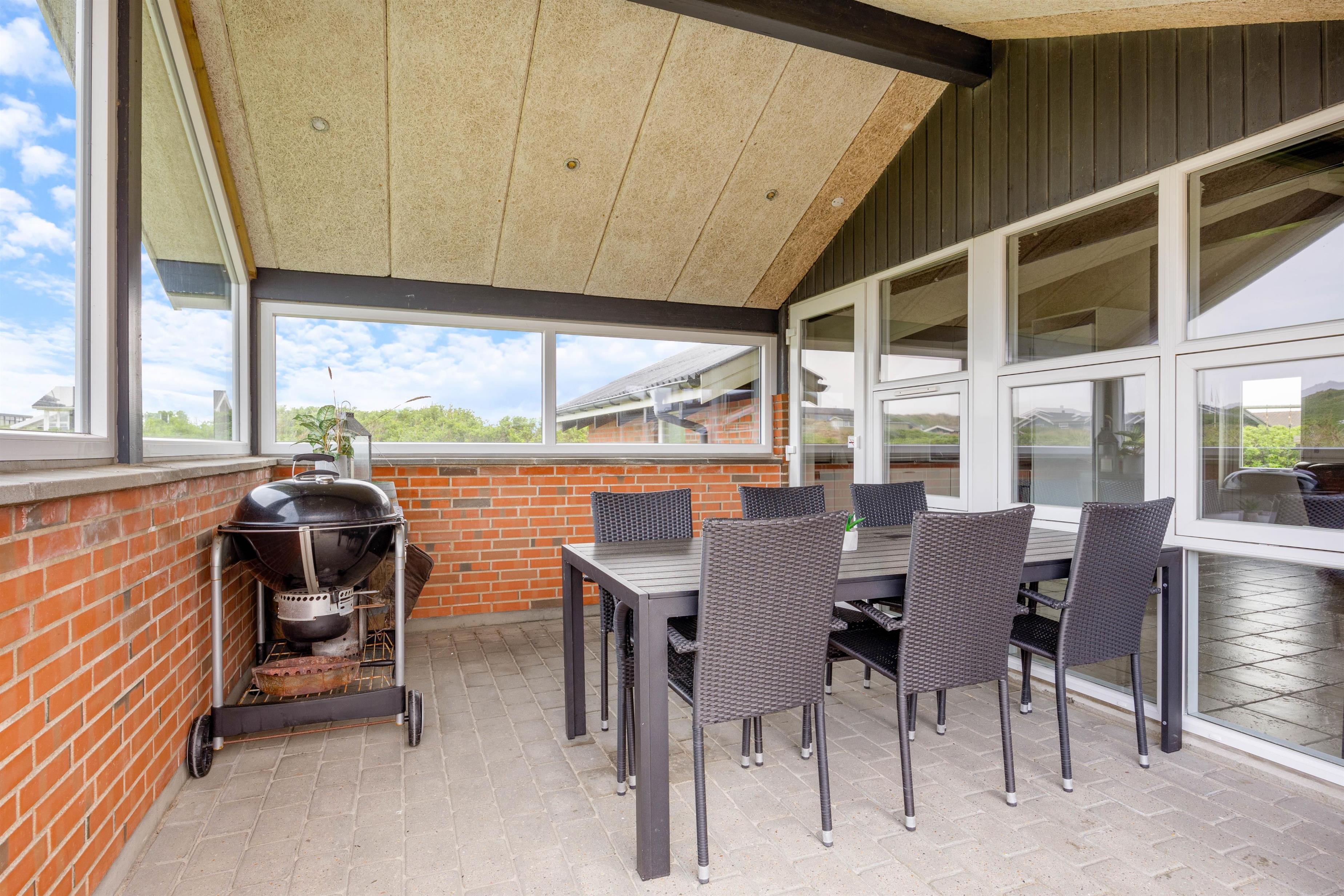 Feriehuset har en god lukket terrasse, hvor den ene del er overdækket. Derfor er terrassen anvendelig langt det meste af året, da der er god afskærmning og ly. Så tænd op i grillen og nyd udsigten til klitterne, mens børnene leger på den store plænegrund med gynger og sandkasse.
