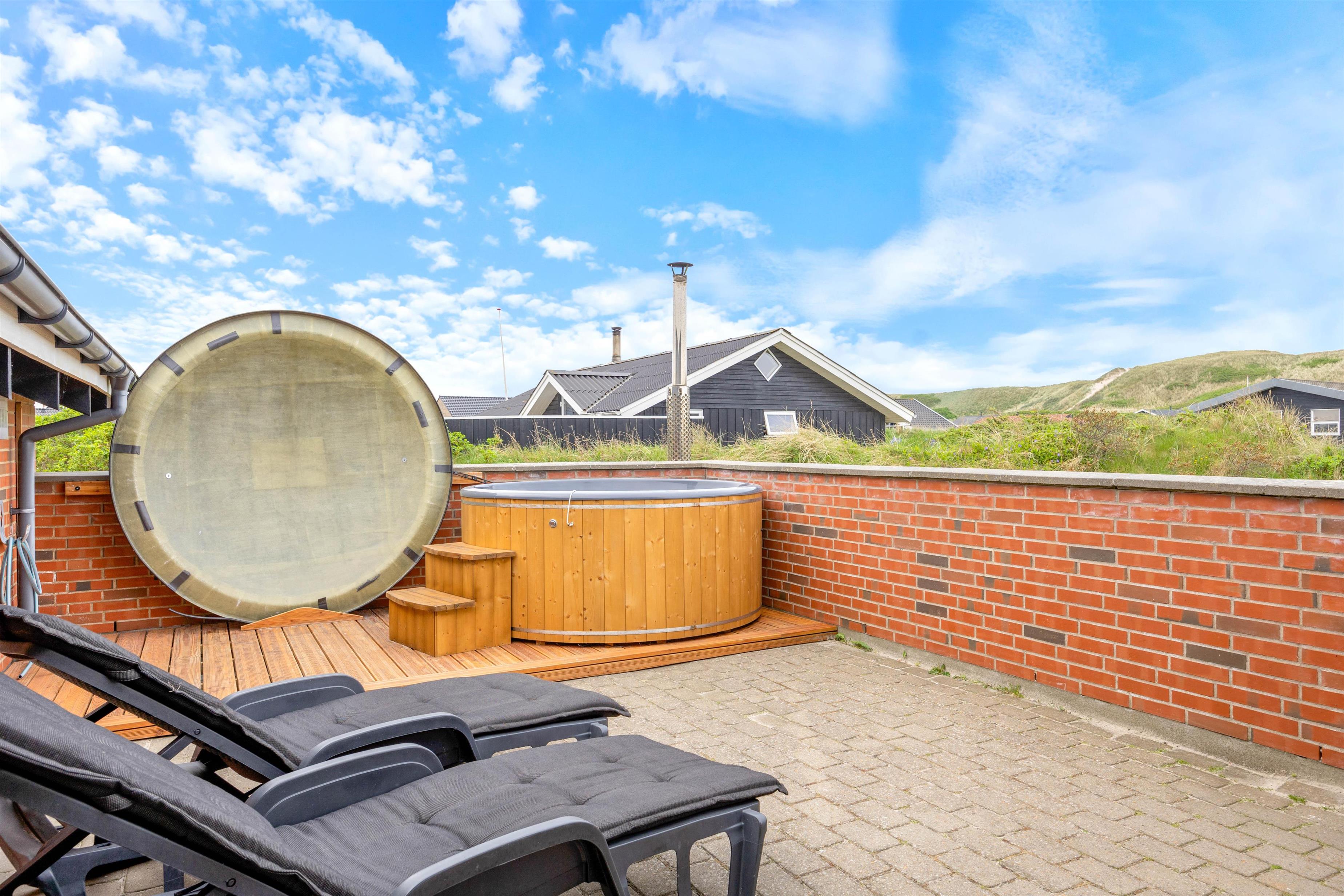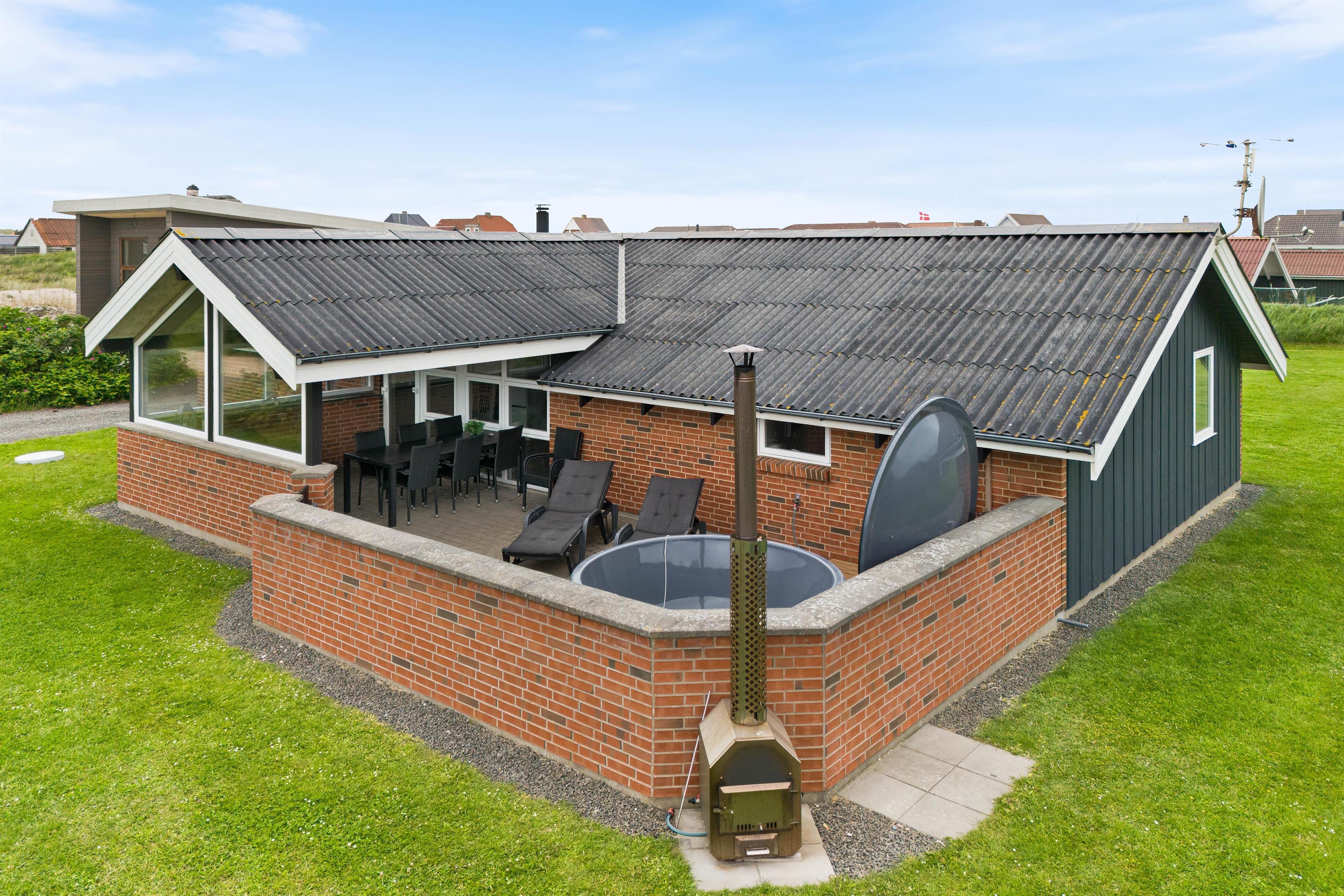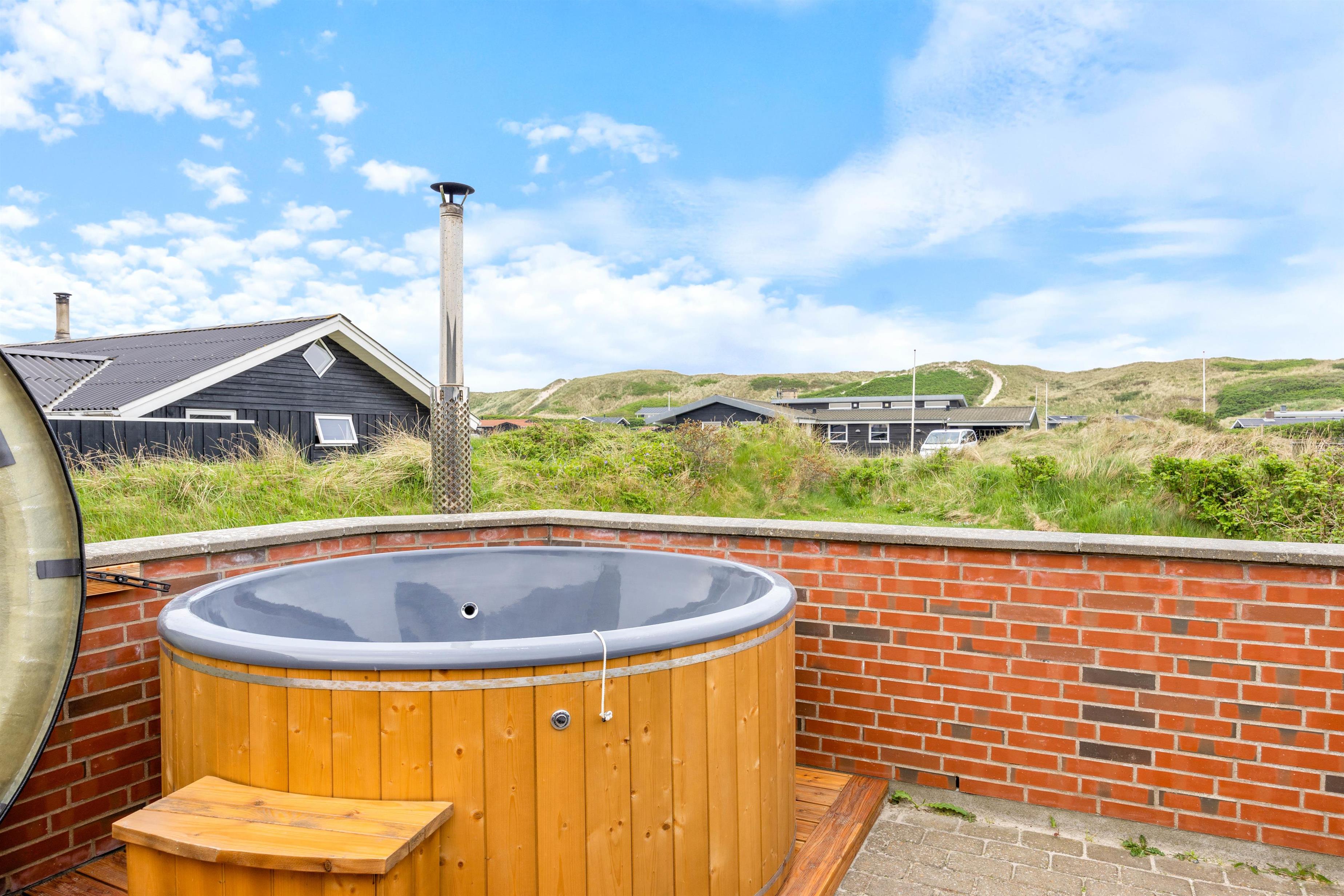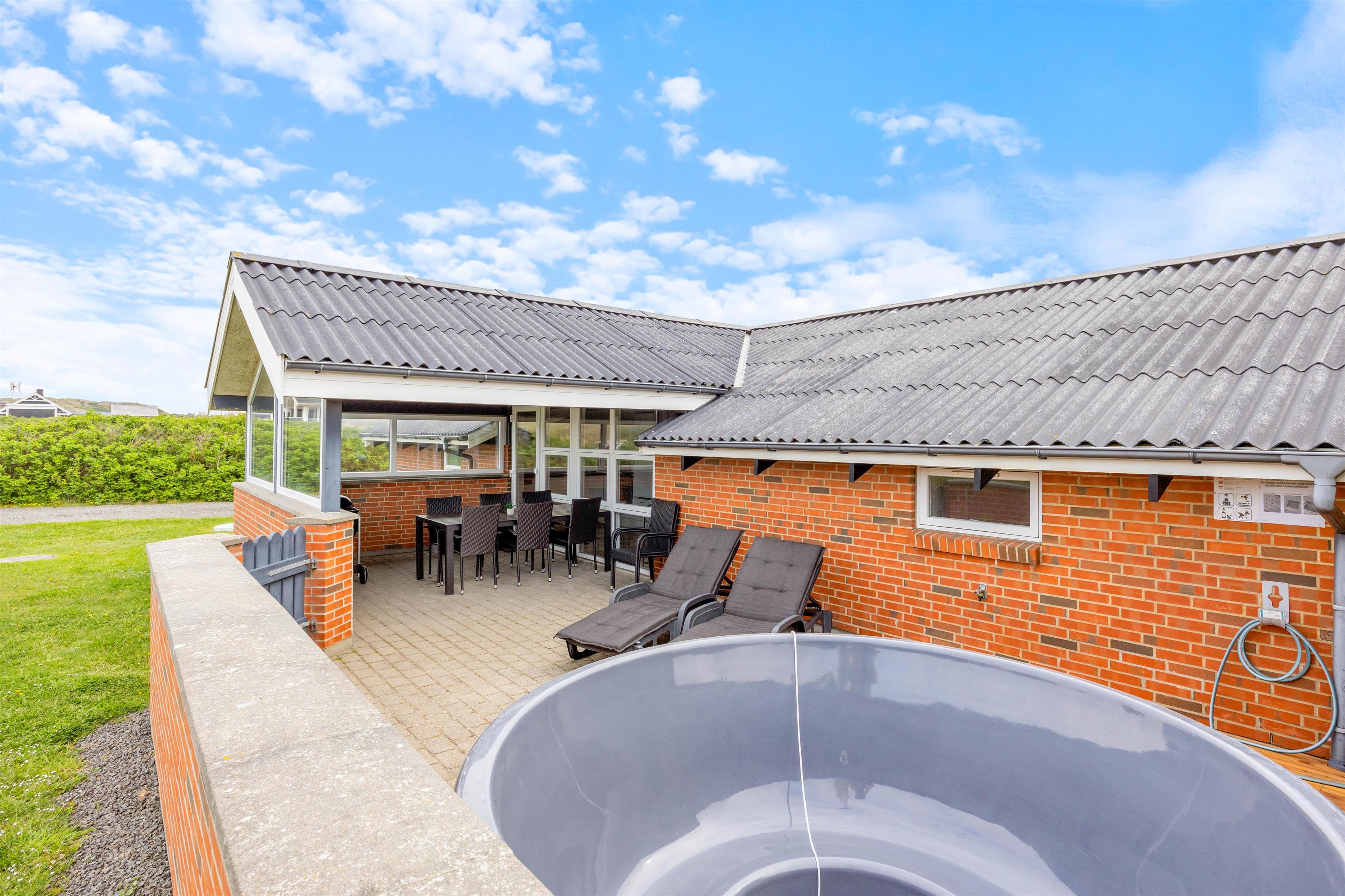 Feriehuset har en god lukket terrasse, hvor den ene del er overdækket. Derfor er terrassen anvendelig langt det meste af året, da der er god afskærmning og ly. Så tænd op i grillen og nyd udsigten til klitterne, mens børnene leger på den store plænegrund med gynger og sandkasse.