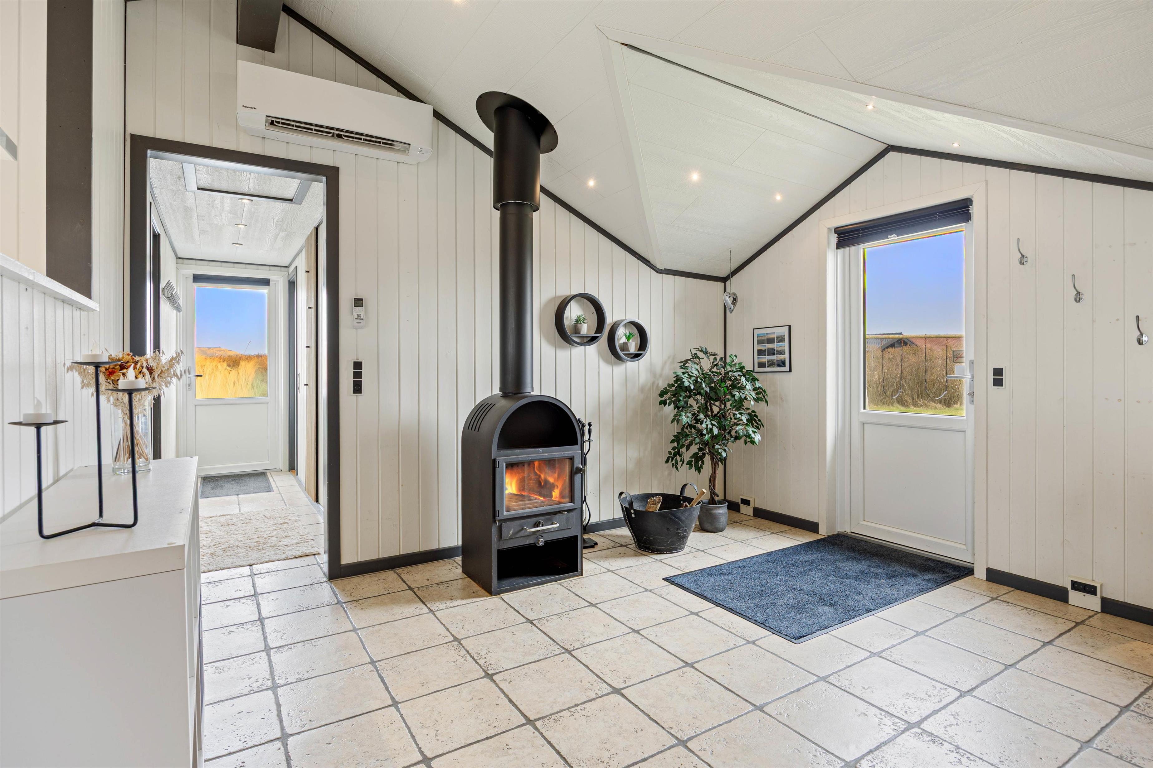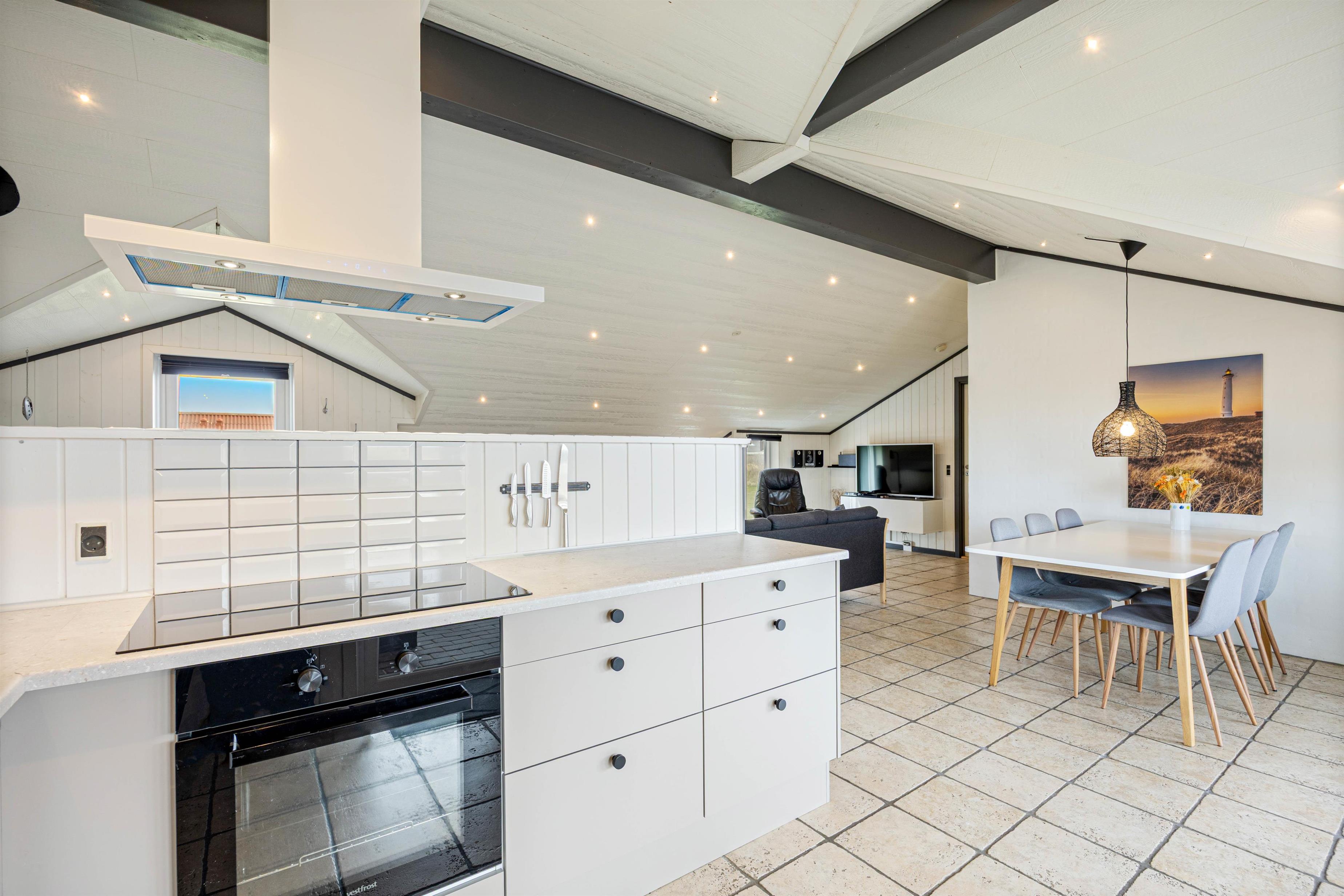 Her får I et flot og hyggeligt feriehus med den dejligste udsigt til klitterne, der danner fundamentet til en rigtig god familieferie. Det veludstyrede køkken, spiseafdelingen og den rummelige stue er indrettet, så I her kan tilbringe tid sammen omkring madlavning, spil, en god film eller bare hyggeligt samvær. Og stuen er især ideel til gode hyggestunder, da den er indrettet med både hjørnesofa og alkove. Og i baggrunden står brændeovnen og spreder hygge og varme.