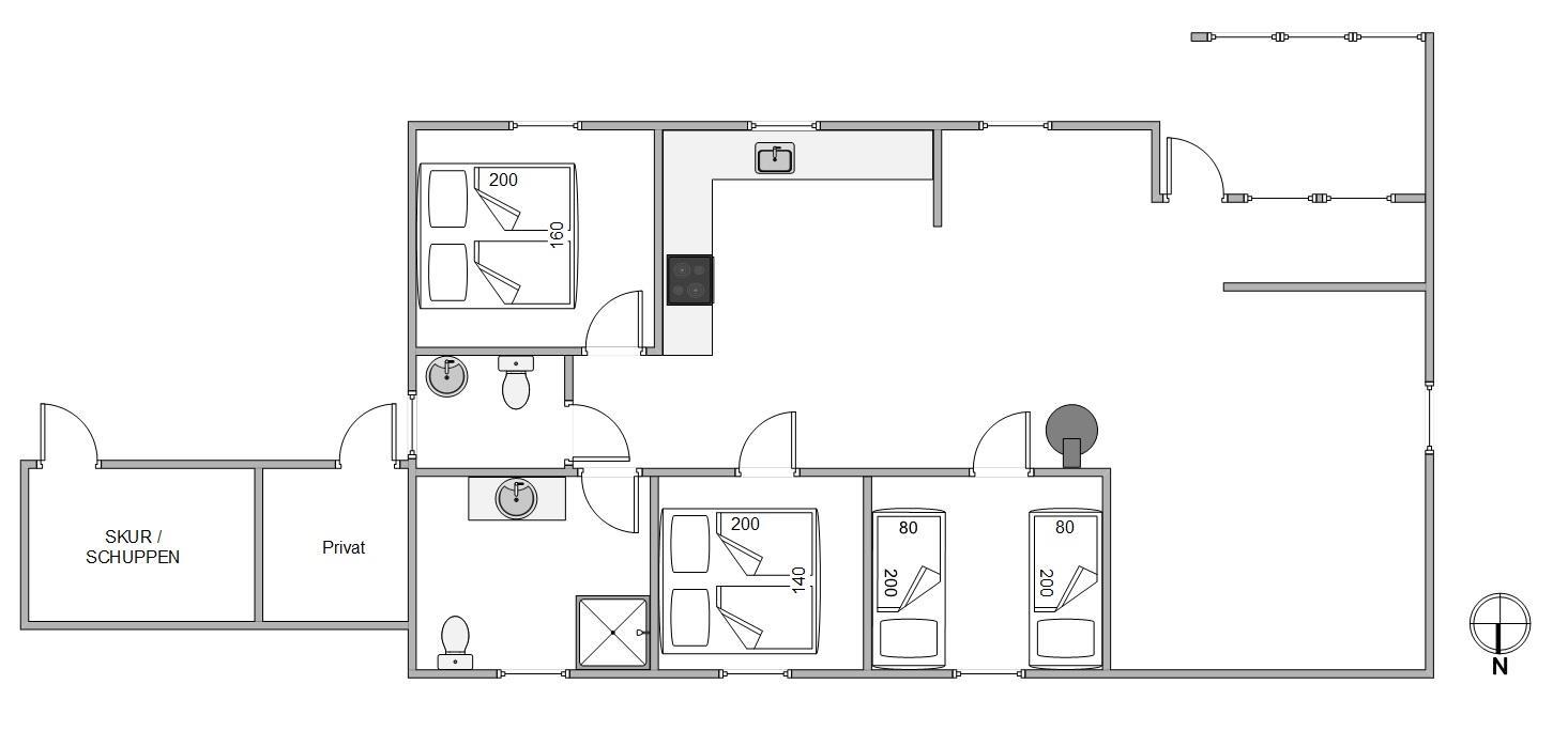 I køkkenet forefindes opvaskemaskine, mikroovn, køleskab samt separat fryser. Der er el komfur samt ovn, så lad maskinerne gøre arbejdet og nyd ferien, mens opvasken klares.