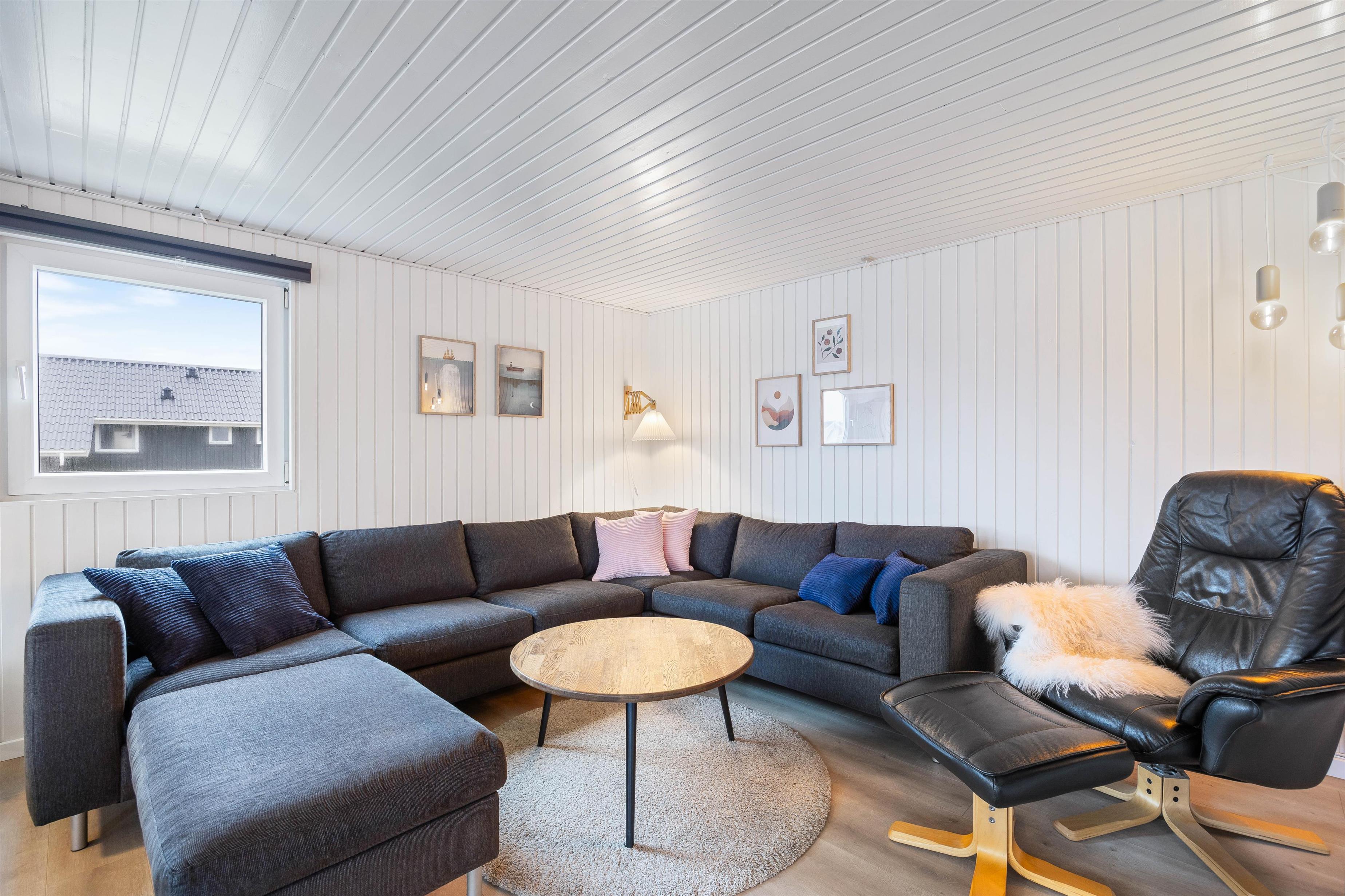 Sommerhuset er indrettet i lyse og venlige farver. I stuen er der en brændeovn, så tænd op i den en sensommer aften, og nyd en god bog eller tag et spil med familien, mens I lytter til lyden af ildens knitren.